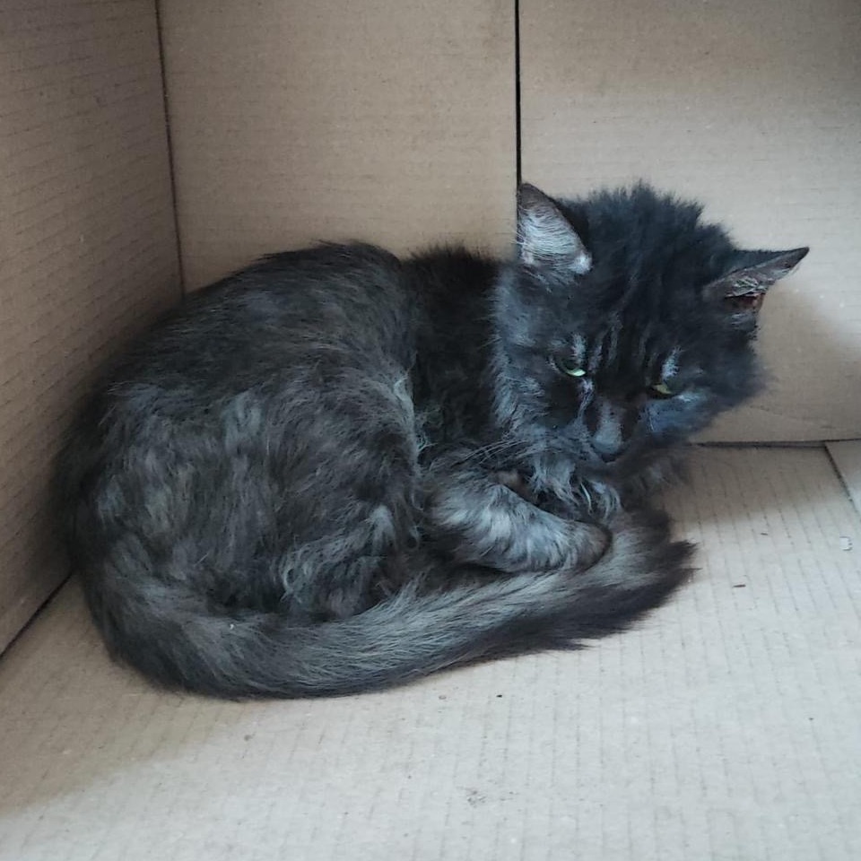 Turrón fue rescatado junto a 13 gatos más de una casa okupada. Estaban en pésimas condiciones.