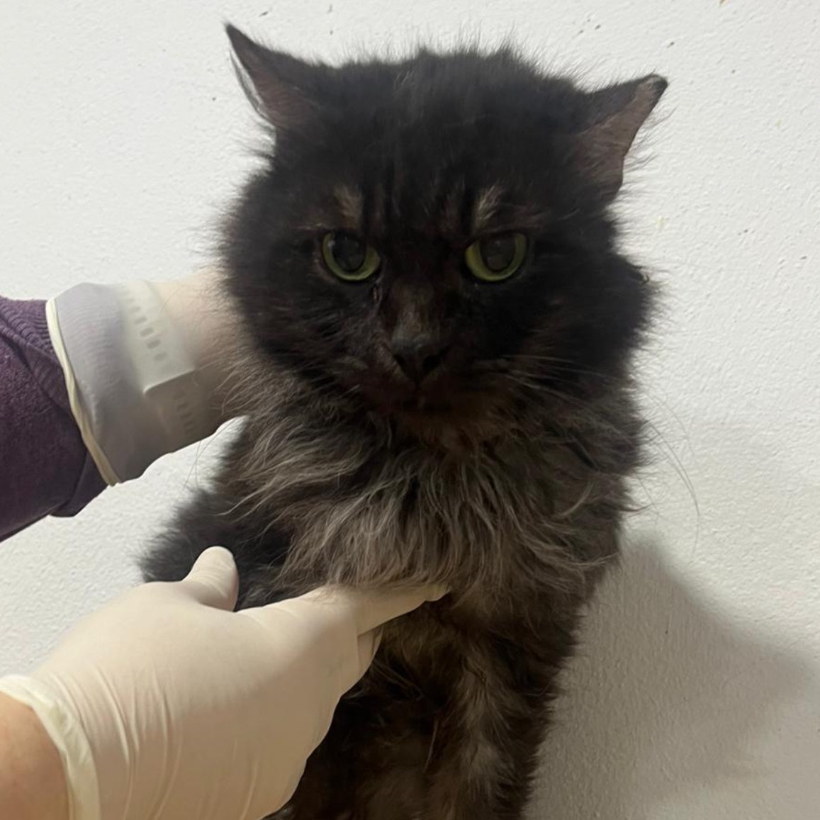 Turrón fue rescatado junto a 13 gatos más de una casa okupada. Estaban en pésimas condiciones.
