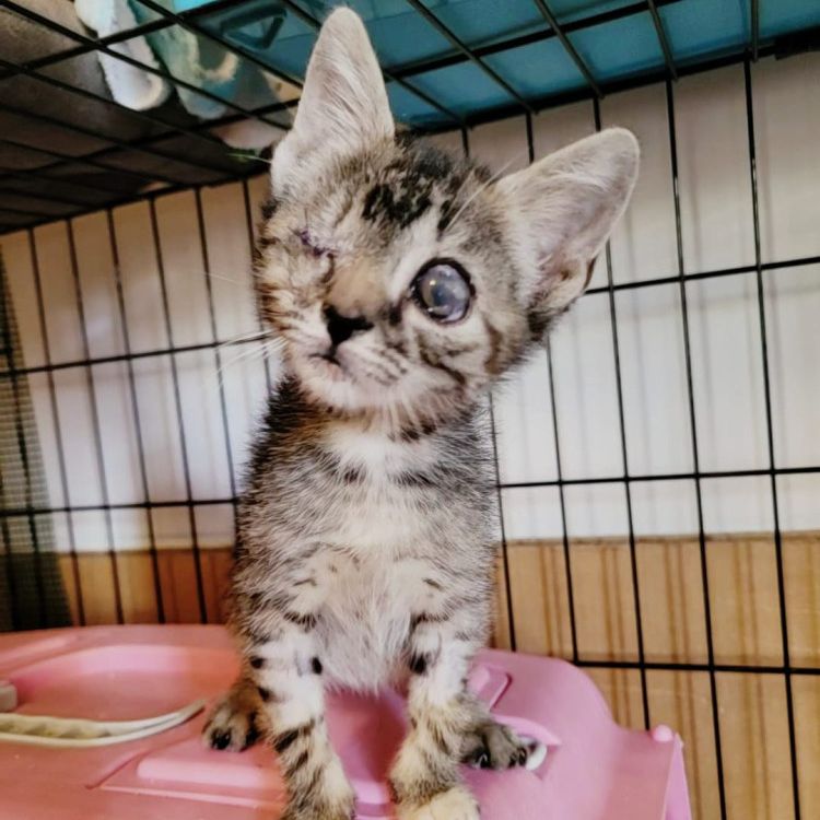 Arwen aún no está disponible para adopción porque tiene adherencias en un ojito y necesita ponerse fuerte para su operación. Aun así, sus ganas de vivir son inmensas: es la más bichita del refugio, siempre con energía, curiosidad y ganas de jugar. Todo para ella es un juego, y si algo no le gusta, te lo hace saber sin dudarlo. Es un torbellino de amor, cariñosa, divertida y con una vitalidad que enamora. Tiene apenas mes y medio, pequeñita, valiente y llena de vida.