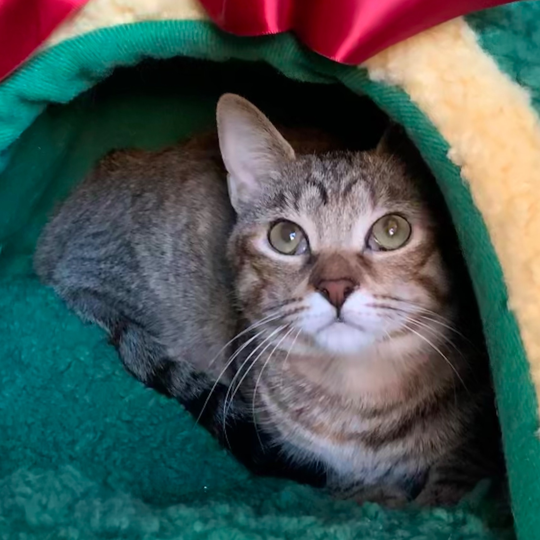 Es tímida y muy chiquitina de tamaño. La rescatamos con una enfermedad (PIF) que detuvo su crecimiento durante tiempo en 900 g, aunque a raíz de tratarla comenzó a desarrollarse, y actualmente pesa 1,9 kg. Cualquier gesto de atención lo agradece con un fuerte y continuo ronroneo. Es muy cariñosa y está muy necesitada de minutos.
