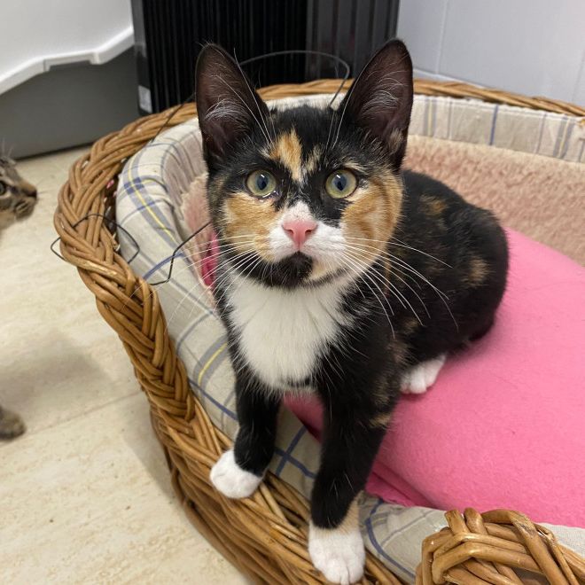 Meimei está cada día mas linda, con ese pelaje tricolor tan precioso. Al principio se mostró miedosa, pero poco a poco empezó a confiar en nosotras. Estar junto a sus hermanos la ayuda mucho a ver que somos buenas, y no las volveremos a abandonar. Como todos los bebes, Meimei es juguetona, mimosa y ronronea cuando la acaricias (a veces incluso antes!). Se entrega testada de leucemia, inmunodeficiencia y filaria, siendo negativa para los tres. Con sus vacunas al día, chip, y desparasitaciones internas y externas. Listo para un nuevo hogar y una vida de amor y felicidad!