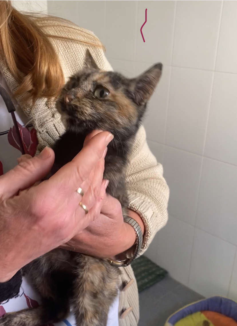 🐾 Así es Moka 🐾 Moka es una gatita carey de apenas cuatro meses, pequeñita, con una carita que derrite y unos ojitos llenos de ternura. Su pelaje es una mezcla preciosa de tonos negros, naranjas y miel, tan especial como su carácter. ✨ Es muy dulce, cariñosa y tranquila. Le encantan los mimos, los brazos y dormir acurrucada, sintiendo que por fin está a salvo. Cuando te mira, parece agradecer cada caricia con un ronroneo suave. 💕 A pesar de todo lo que ha pasado, Moka confía, ama y se entrega con todo su corazoncito. Es una pequeña guerrera con alma de ángel, ideal para alguien que quiera una compañera buena, noble y muy amorosa. 🌸