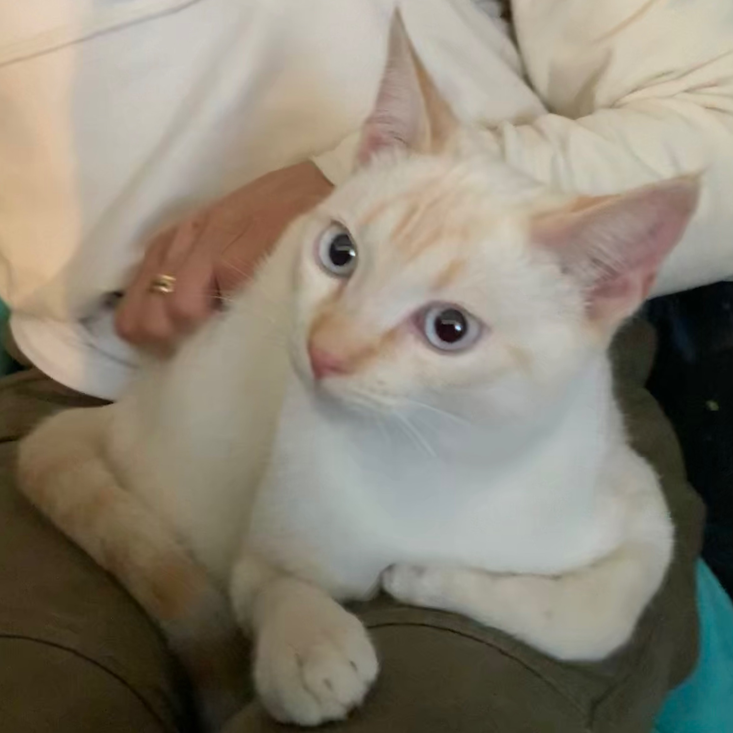 No conocemos su procedencia. Apareció en una calle con mucho tráfico y pensamos que sería de algún vecino, pero se preguntó, se publicó en redes y grupos locales y nadie lo reconoció. Le llamamos Ányelo porque significa mensajero, transmite pureza y bondad.