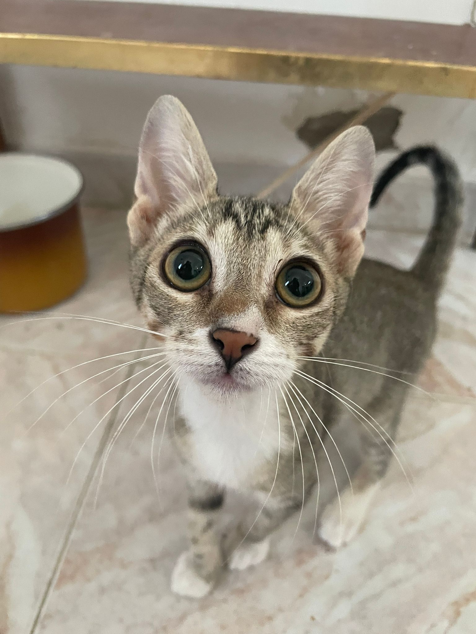 Ada fue encontrada junto a su madre y sus 6 hermanos en una playa con días de vida. Llegó al refugio y fue criada a biberon para ayudar a la mamá y por ello son una camada muy muy cariñosa, sociable, juguetona y simpática. Se entrega desparasitada, testada (FIV y FeLV negativo), vacunada, con chip y pasaporte. Puede viajar sin problema.