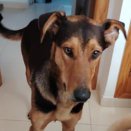 La persona que lo tiene acogido, lo encontró en una carretera. Lo acarició y se fue detrás de él y entró en su casa sin problema.