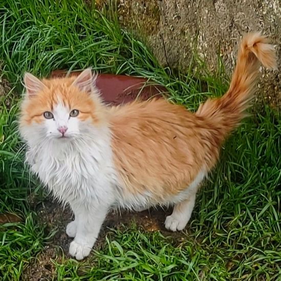 Actualmente vive en la calle en una colonia felina parece ser hembra aunque no estamos seguras porque aun no se acerca lo suficiente por ahora es desconfiada pero al ser muy joven podría adaptarse fácilmente a un hogar