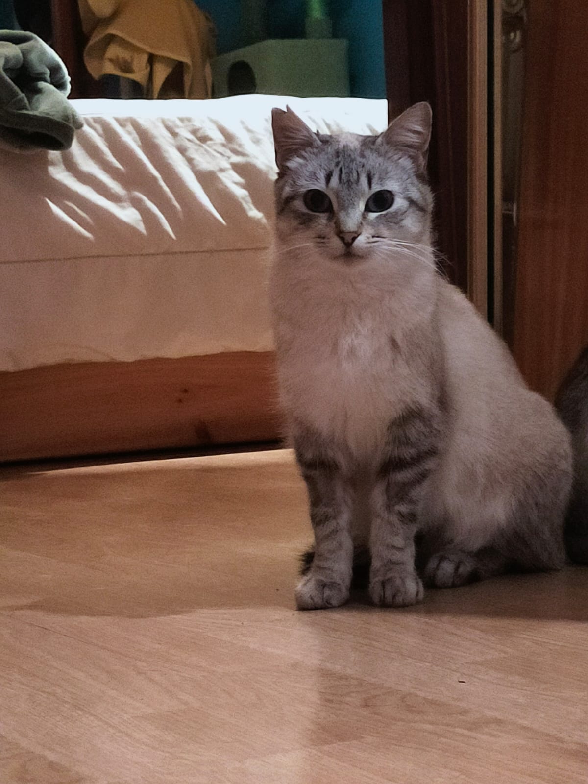 Nori apareció pidiendo comida a nuestra ventana y con el tiempo empezó a pedir mimos también. La llevamos a esterilizar y al tenerla en casa unos días nos dimos cuenta de lo cariñosa y buena que era, totalmente adoptable. Después de un tiempo en nuestra casa de acogida socializando encontramos una familia adoptante y se fue a Renteria. Ahora la familia nos dice que su hijo tiene alergia a los gatos y que no la pueden tener. Por ello buscamos con urgencia una familia que no tenga alergia y que la quiera y la cuide como se merece. Nori es una gata preciosa muy muy cariñosa y buena, adaptada al juego y a los niños. Buscamos a una familia responsable que le de un hogar definitivo y que tenga paciencia en su nueva adaptación, para ella no ha sido fácil y se merece mucho amor y comprensión.