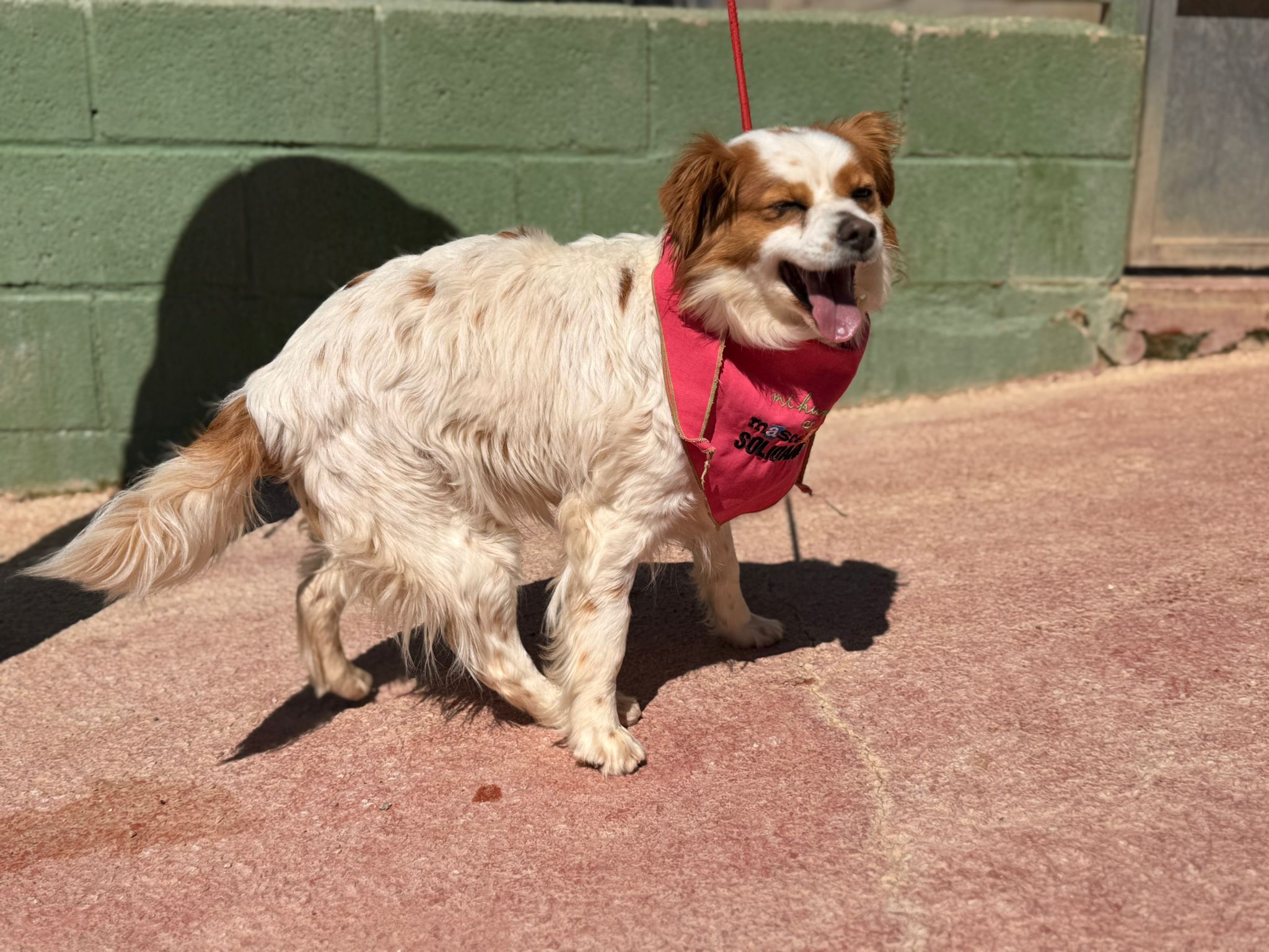 Anwi fue recogida abandonada en mitad del campo sin microchip, atada a un árbol. Llegó muy gordita y es que estaba a punto de dar a luz pero sus bebés estaban muertos. Ahora ya está totalmente recuperada, se lleva bien con todo tipo de perros, gatos y niños