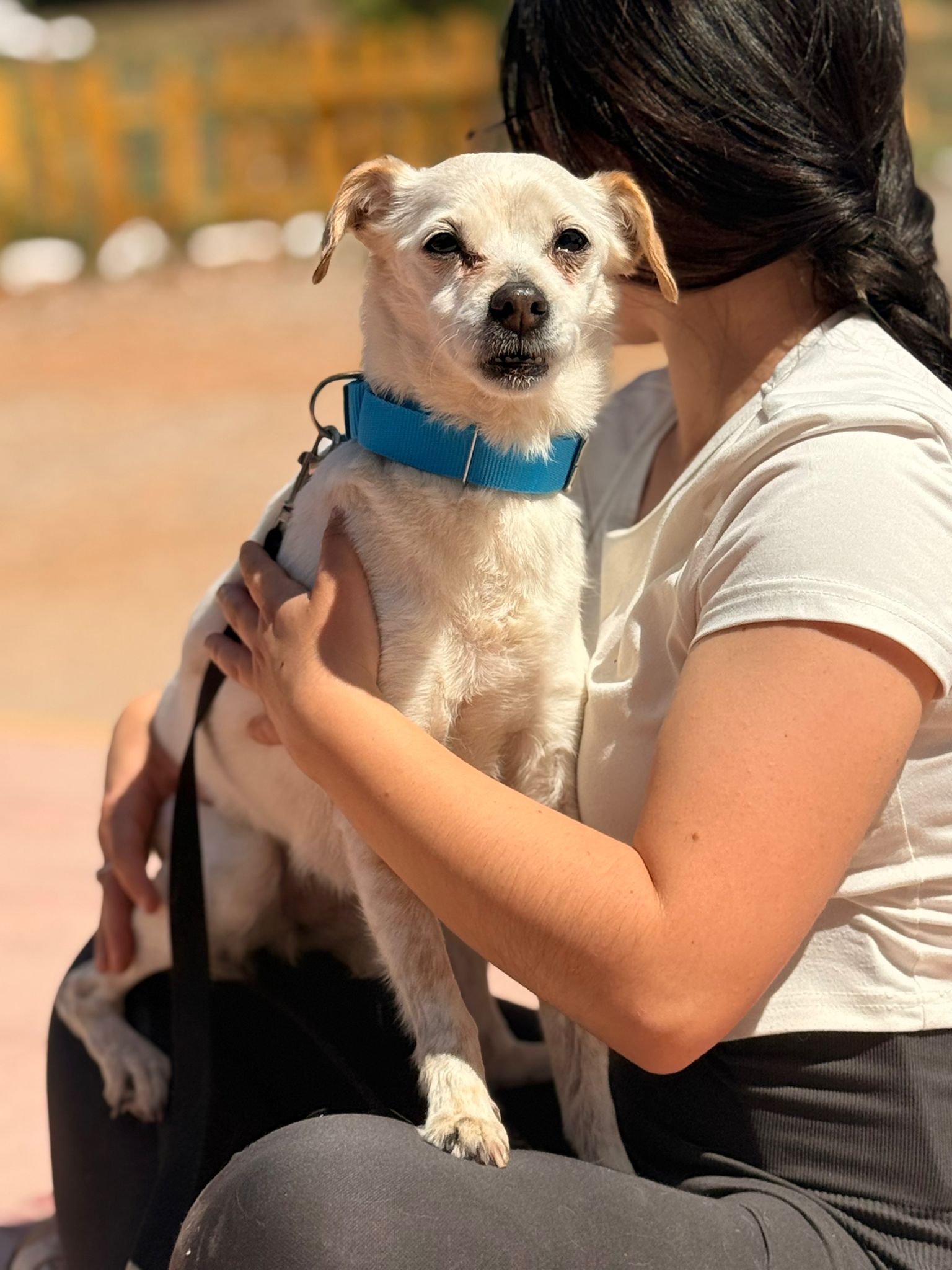 Aurora es una perrita de 8 años que apareció abandonada el domingo en Linares. La pareja que la recogió la llevó a la policía local para ver si tenía microchip y como no tenía le dijeron que volviese a dejarla en la calle. Como era normal no querían dejarla en la calle y contactaron con nosotras para que nos quedásemos con ella y buscarle una casa. Nadie la ha reclamado y hemos empezado a buscarle un hogar. Al principio es tímida pero creemos que lo que necesita es un hogar donde volver a sentirse segura