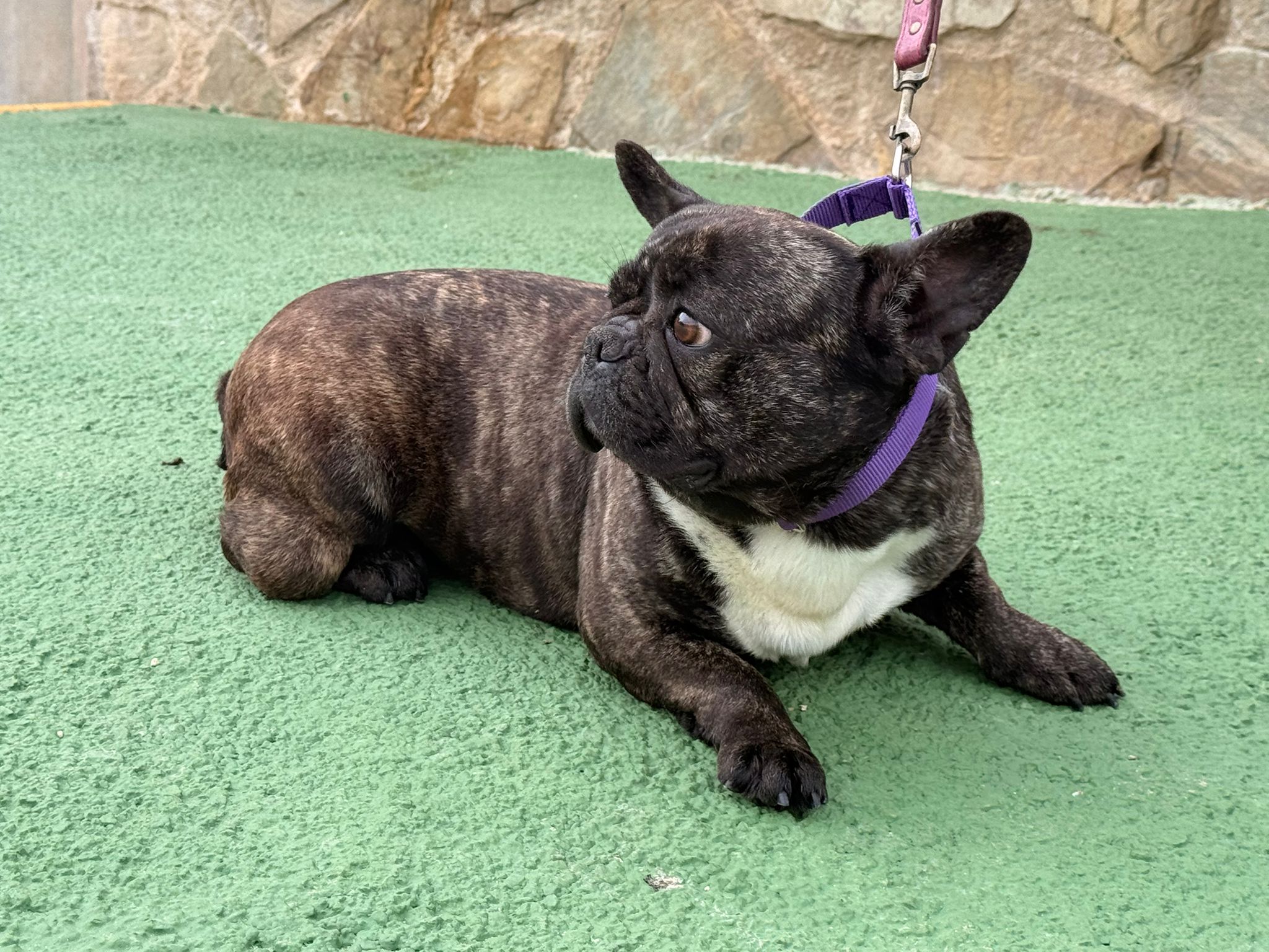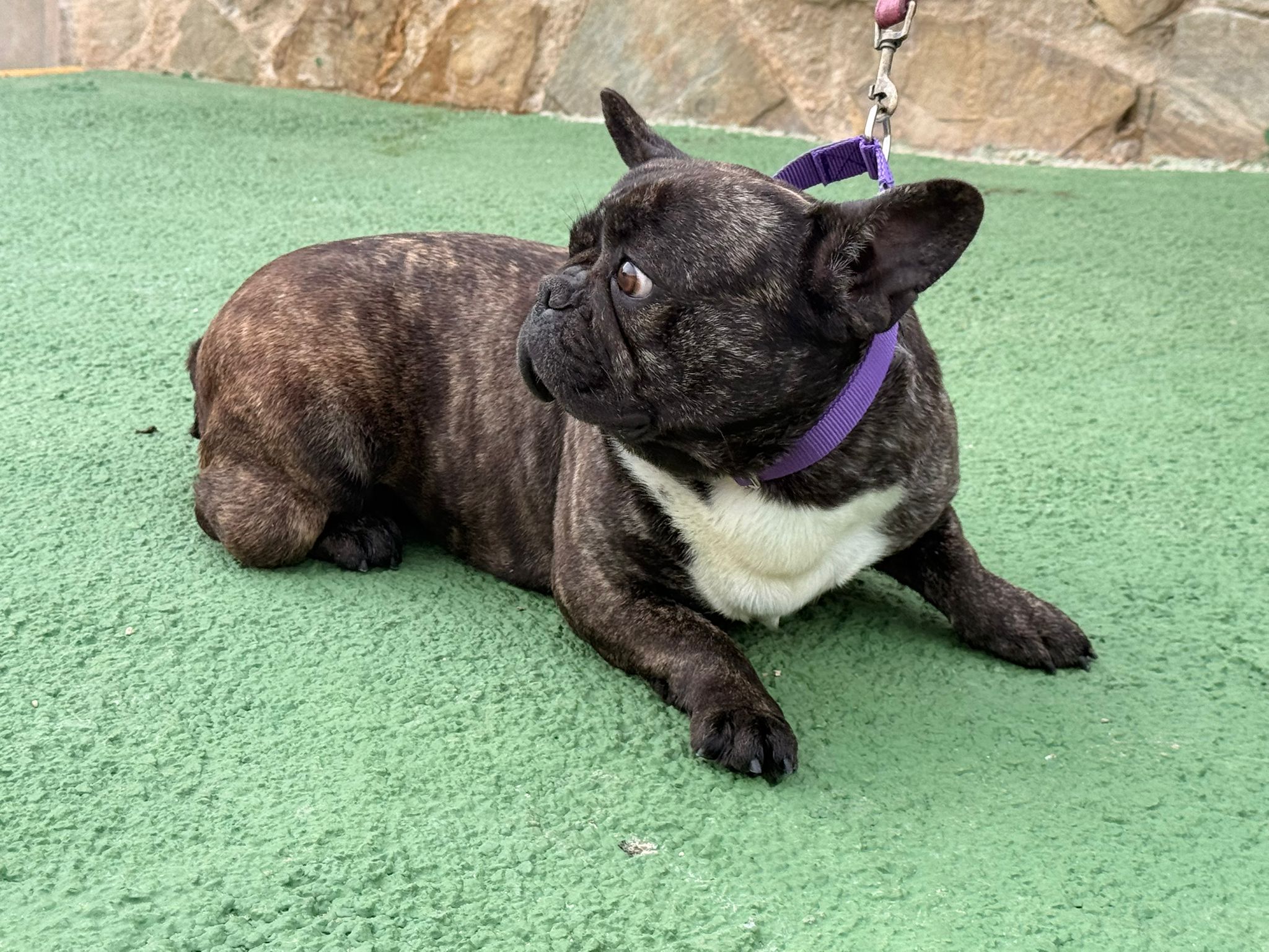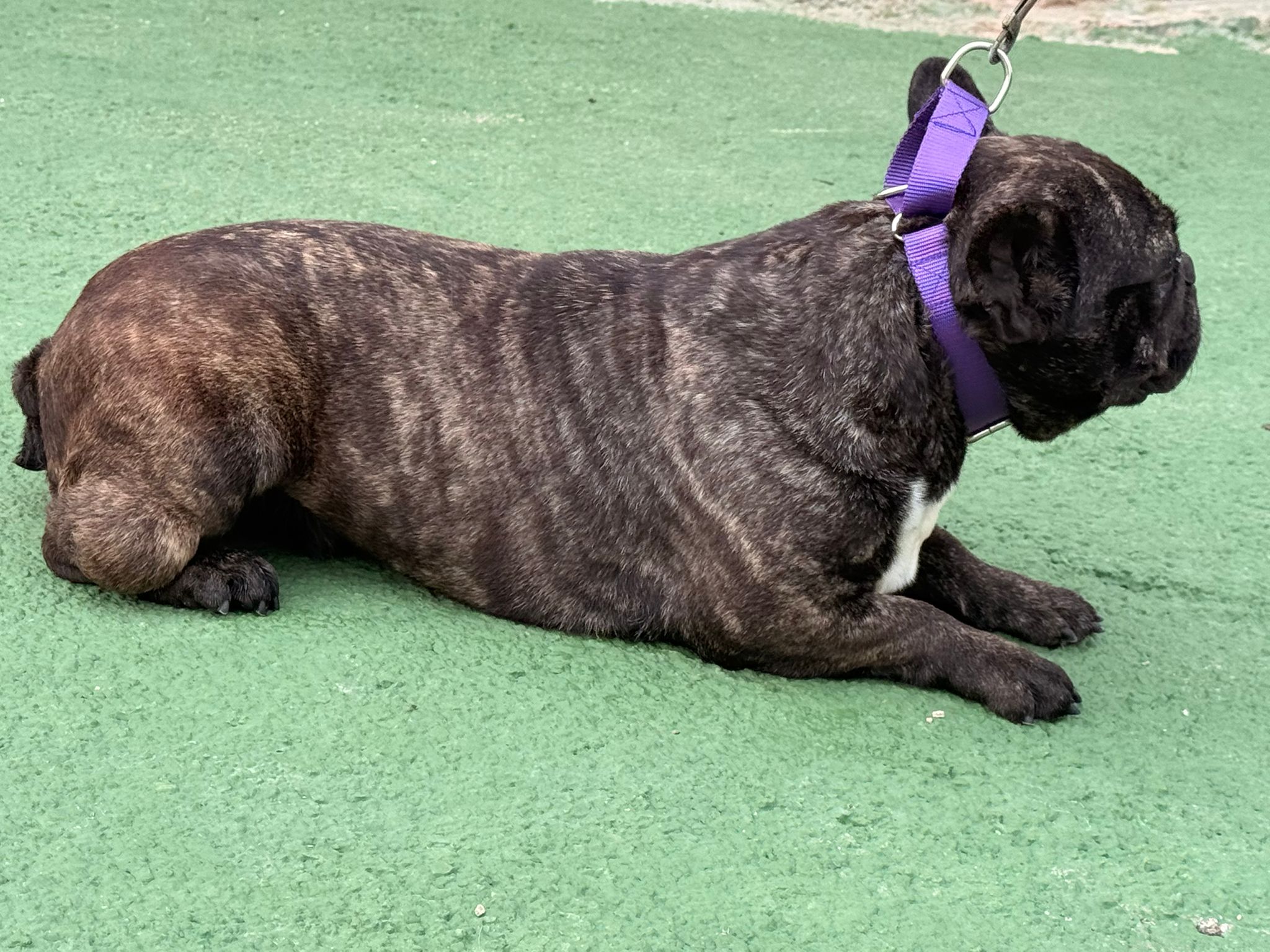 Avellana and Castaña are two French Bulldogs who have come from a breeder because they are no longer suitable for breeding. Avellana is quite skittish, but she is much more approachable than Castaña; however, she doesn’t know how to walk on a lead. She needs surgery on her third eyelid as it has prolapsed, and she also needs to be assessed by an orthopaedic specialist because she has a fluid-filled lump on her leg.