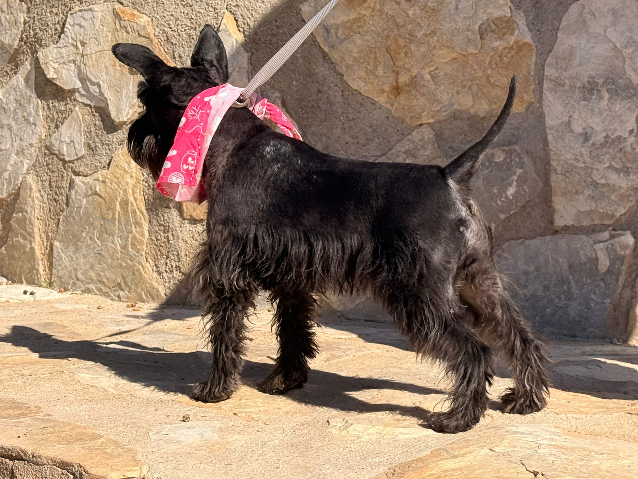 Brandy era la perrita de un señor, el hombre al parecer la dejó en casa de sus vecinos con tres meses porque le pidió que cudiaran de ella mientras entraba en la cárcel pero después de dos años nuna mas volvió a por ella. Ahora la familia debe marcharse fuera y no pueden llevársela, la tenían viviendo en un patio sin apenas cuidados y aunque el primer día que vino estaba muy asustada ahora es una perra super cariñosa con las personas, apta con todo tipo de perros y con gatos