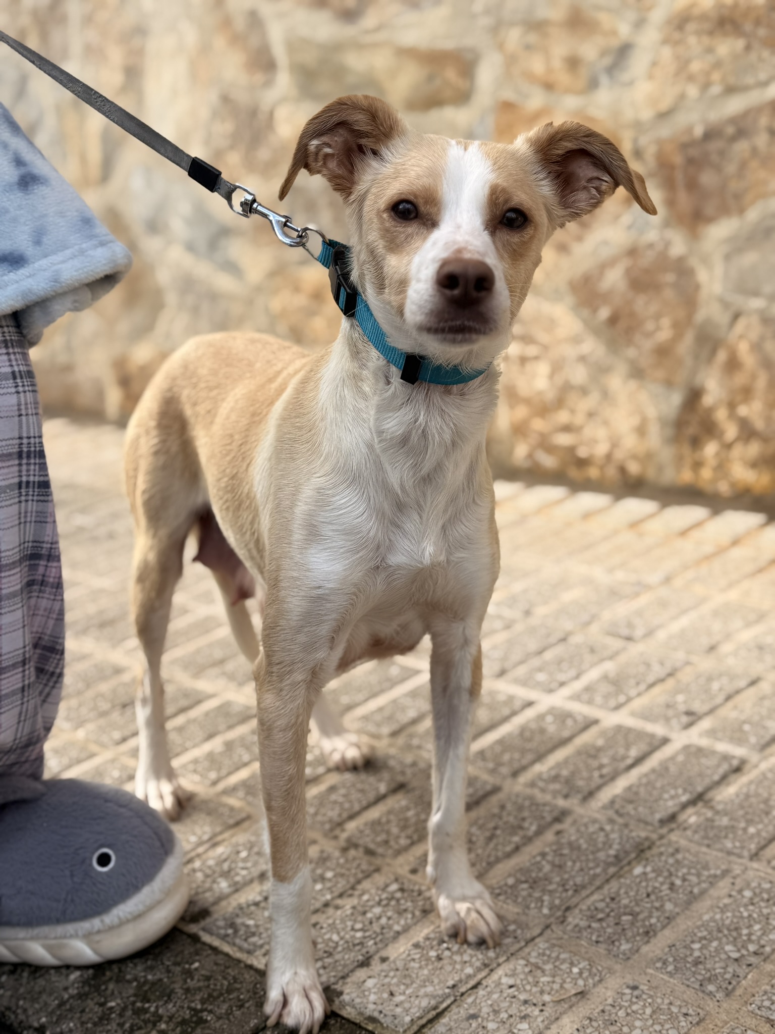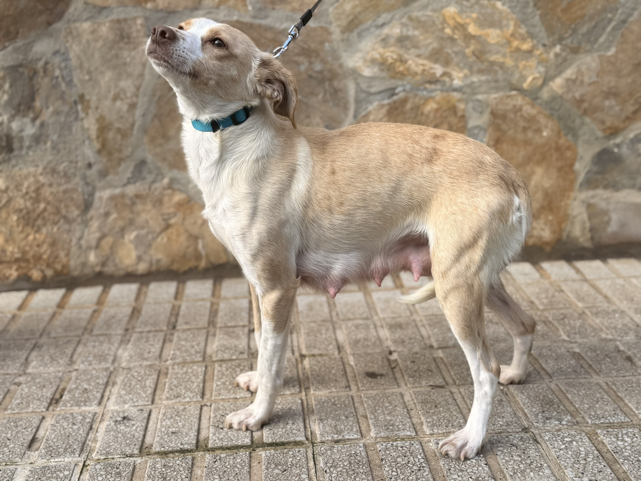 Jara fue recogida el 29 de diciembre a punto de dar a luz. Estaba abandonada en una cuadra y cuando se dieron cuenta de que estaba embarazada empezaron a intentar buscarle un hogar. Llegó siendo una perra super desconfiada pero a día de hoy es una perra super cariosa, se porta genial en casa y además es compatible con perros, gatos y niños. Sus bebés están empezando a marcharse adoptados por lo que nos gustaría que ella encontrara un hogar también