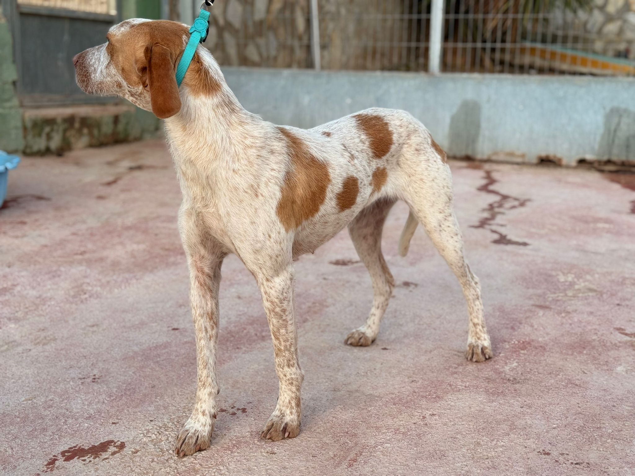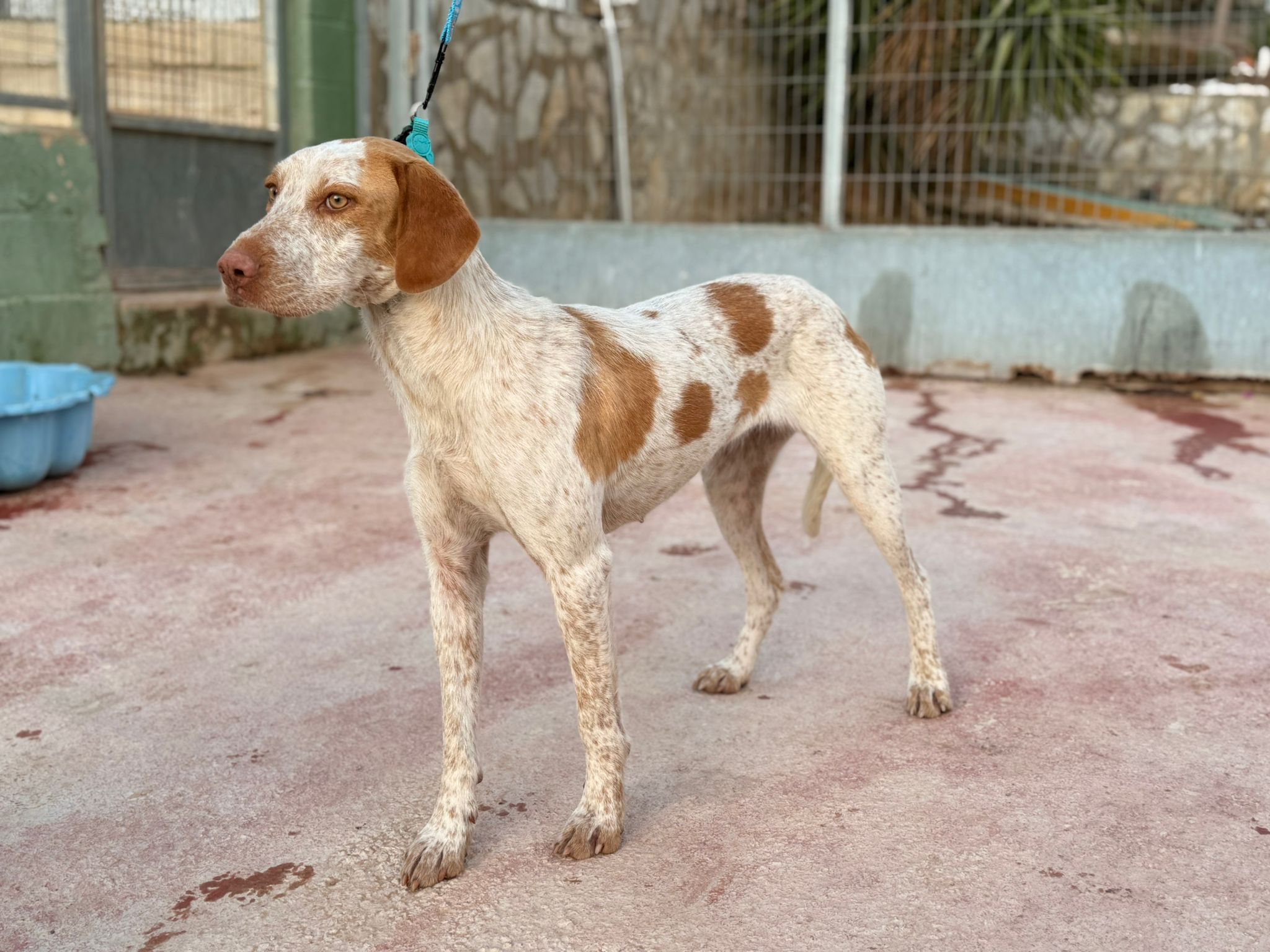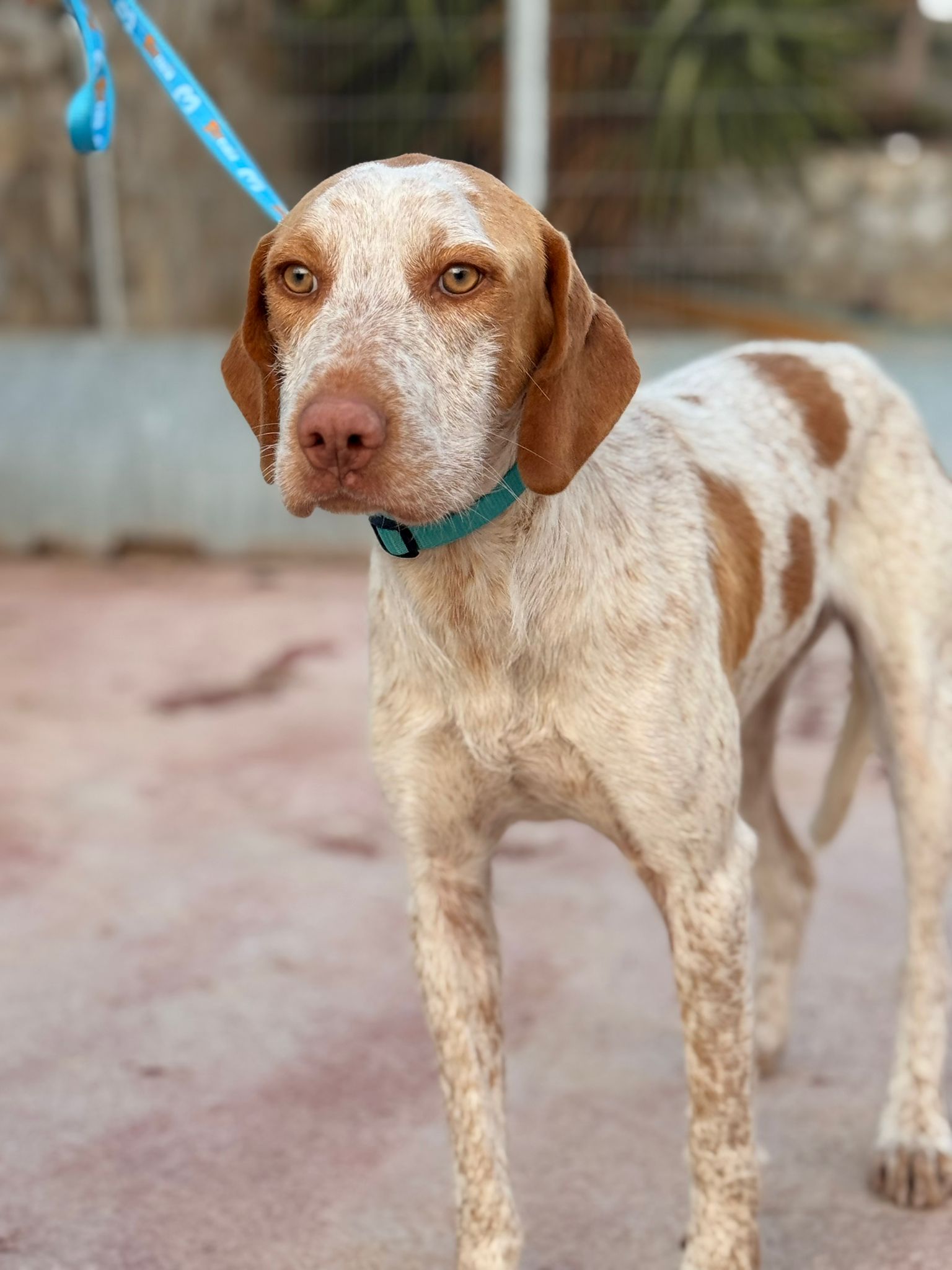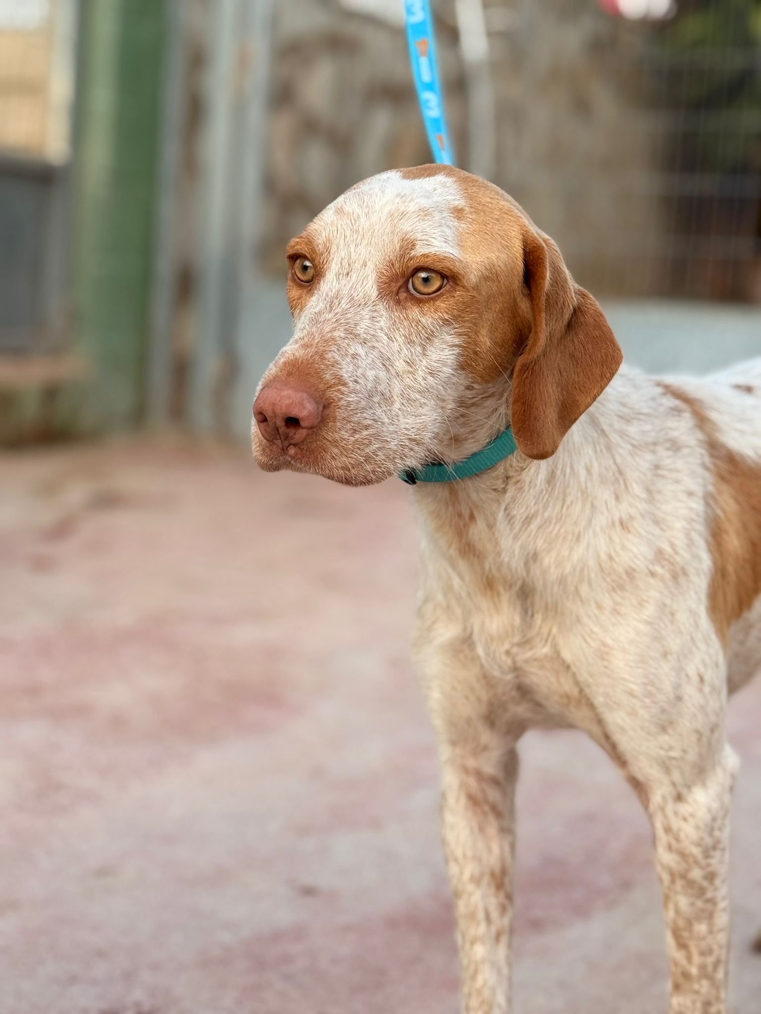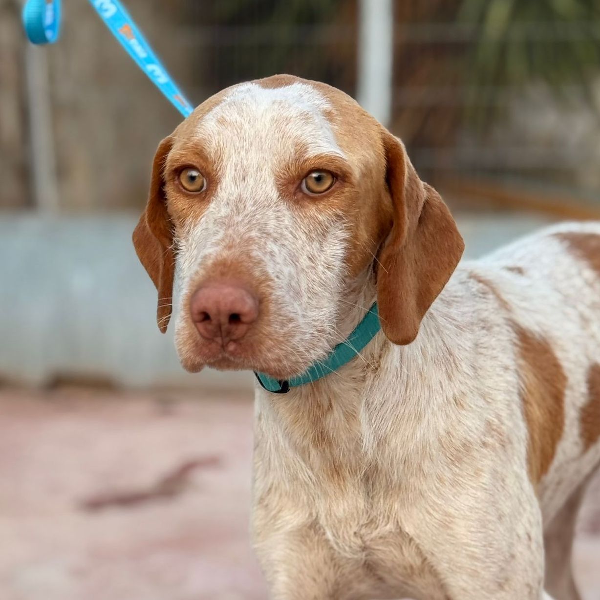 Mel fue recogida hace dos semanas tras llevar varios días abandonada junto a otro perro el cual no pudimos rescatar porque no se dejaba coger. Al principio es un poco tímida pero en cuanto coge confianza es super cariñosa, noble y tiene un carácter increíble. Además es totalmente compatible con niños y con perros