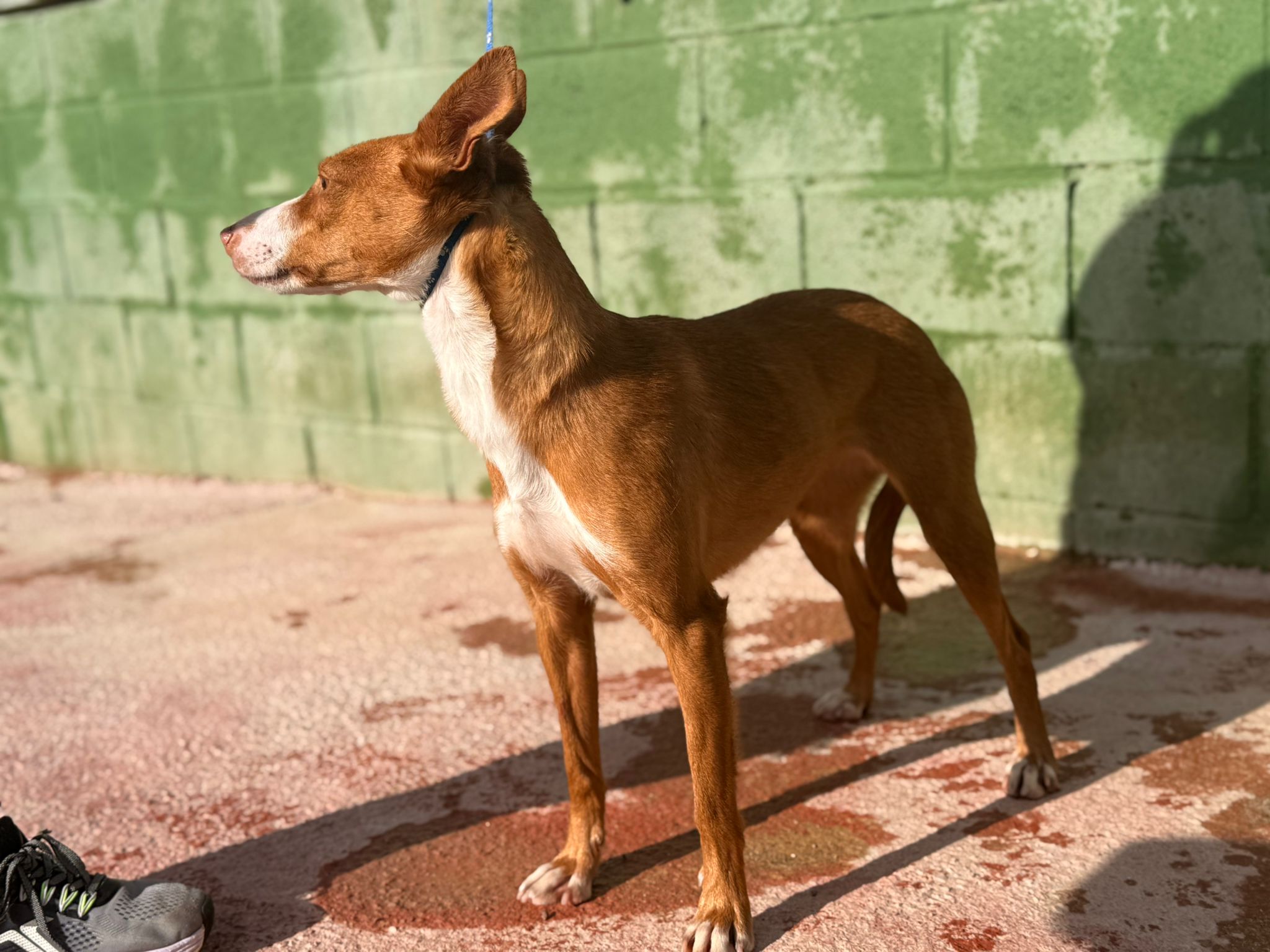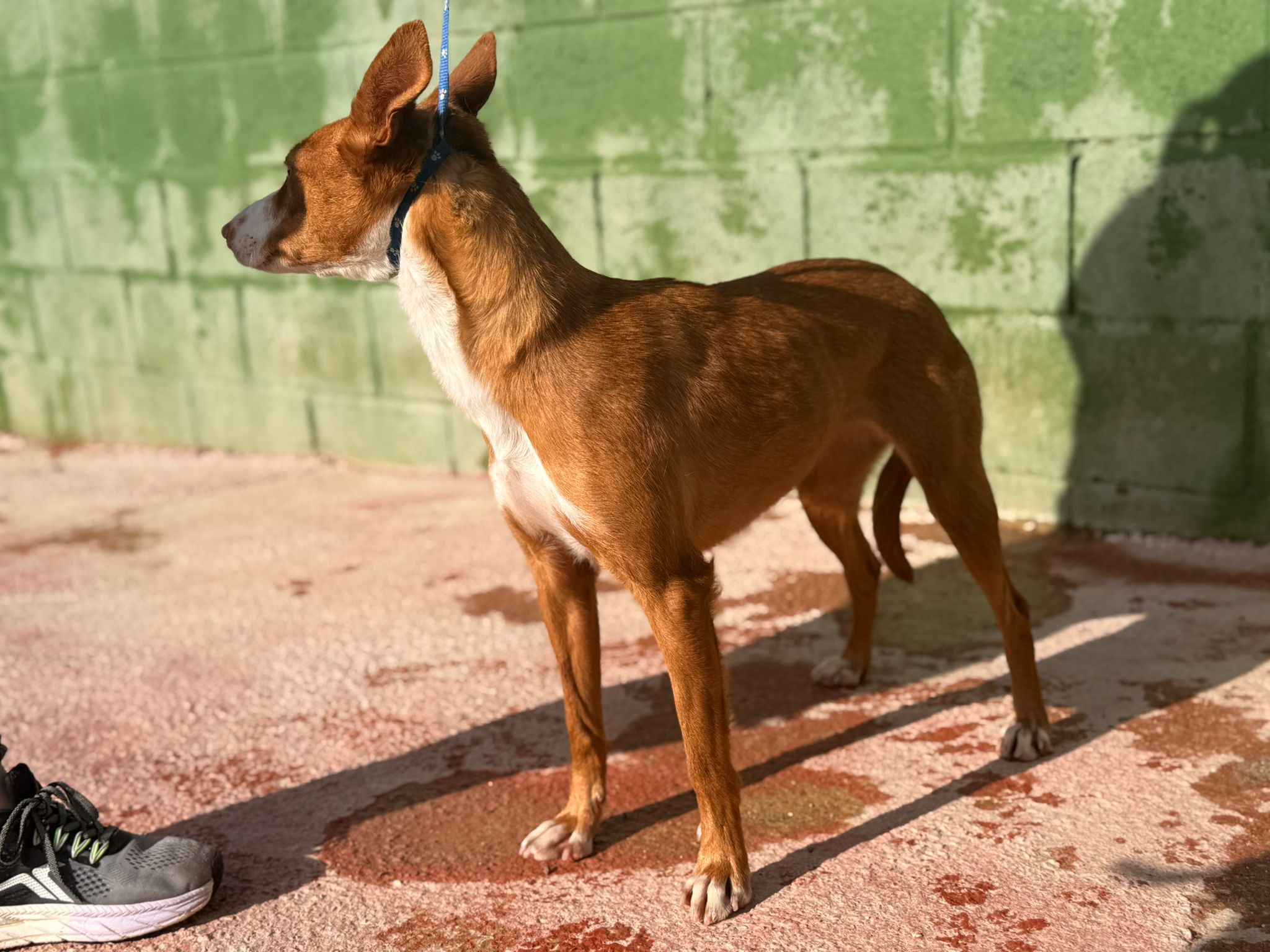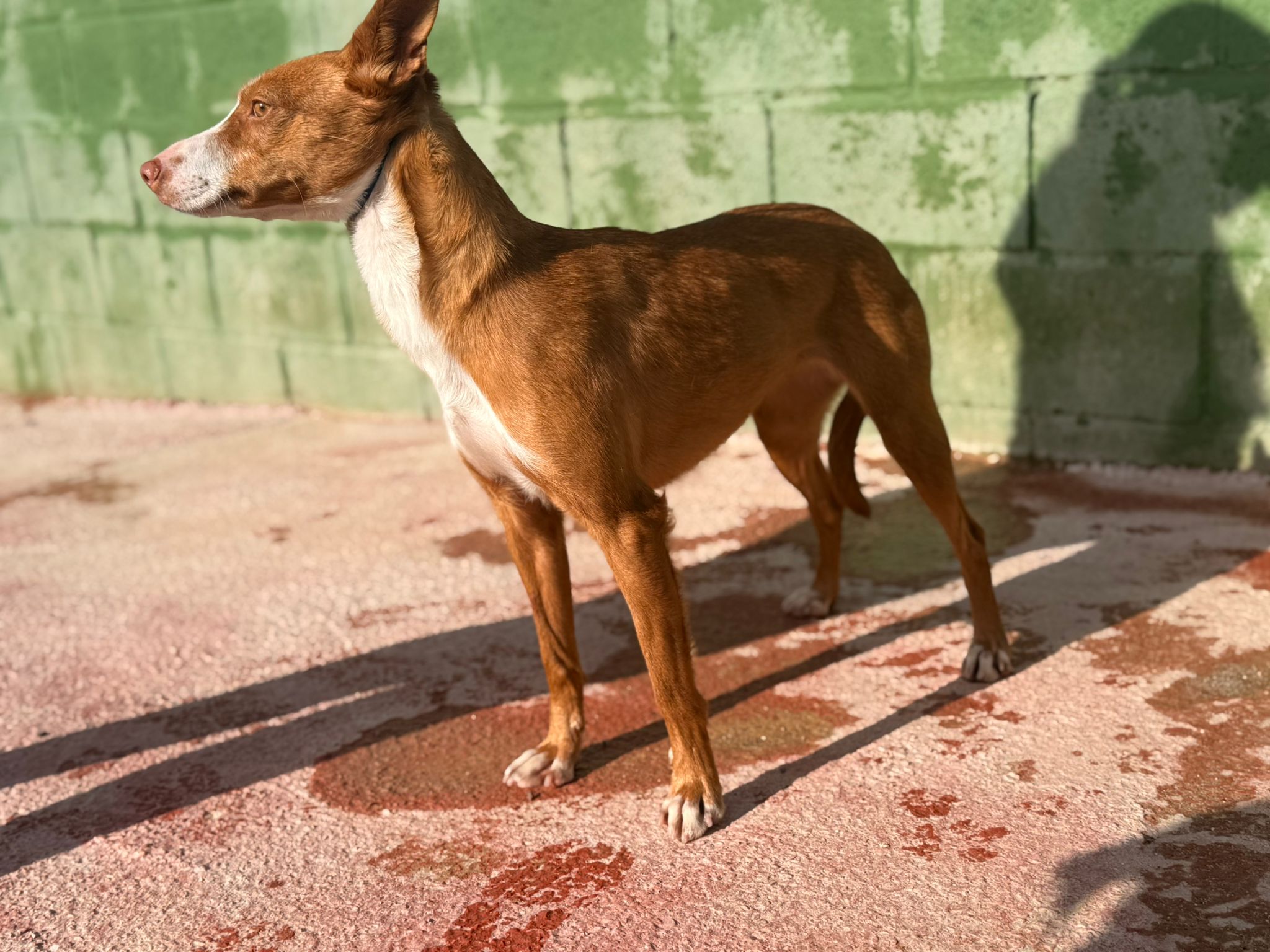 Pascua apareció abandonada en el mes de Diciembre en un pueblo de Albacete. Las autoridades avisaron a la perrera y ellos la recogieron. Era una perra muy muy miedosa, totalmente delgada y que apenas se relacionaba pero gracias al trabajo de los trabajadores consiguieron ganarse su confianza y ahora es una perra totalmente distinta. Es cariñosa, compatible con todo tipo de perros, apta para vivir con niños y no es muy activa por lo que puede adaptarse muy bien a cualquier tipo de familia