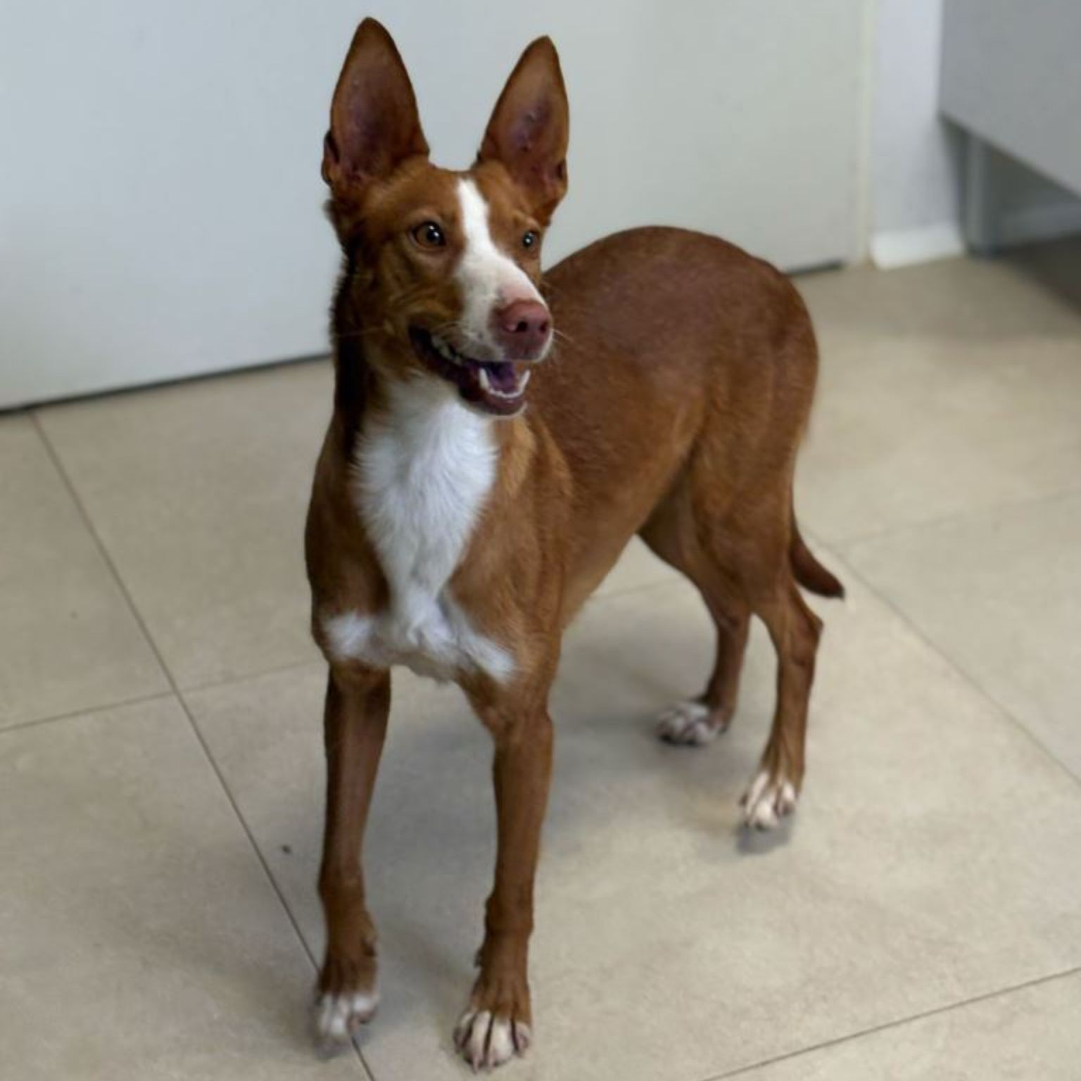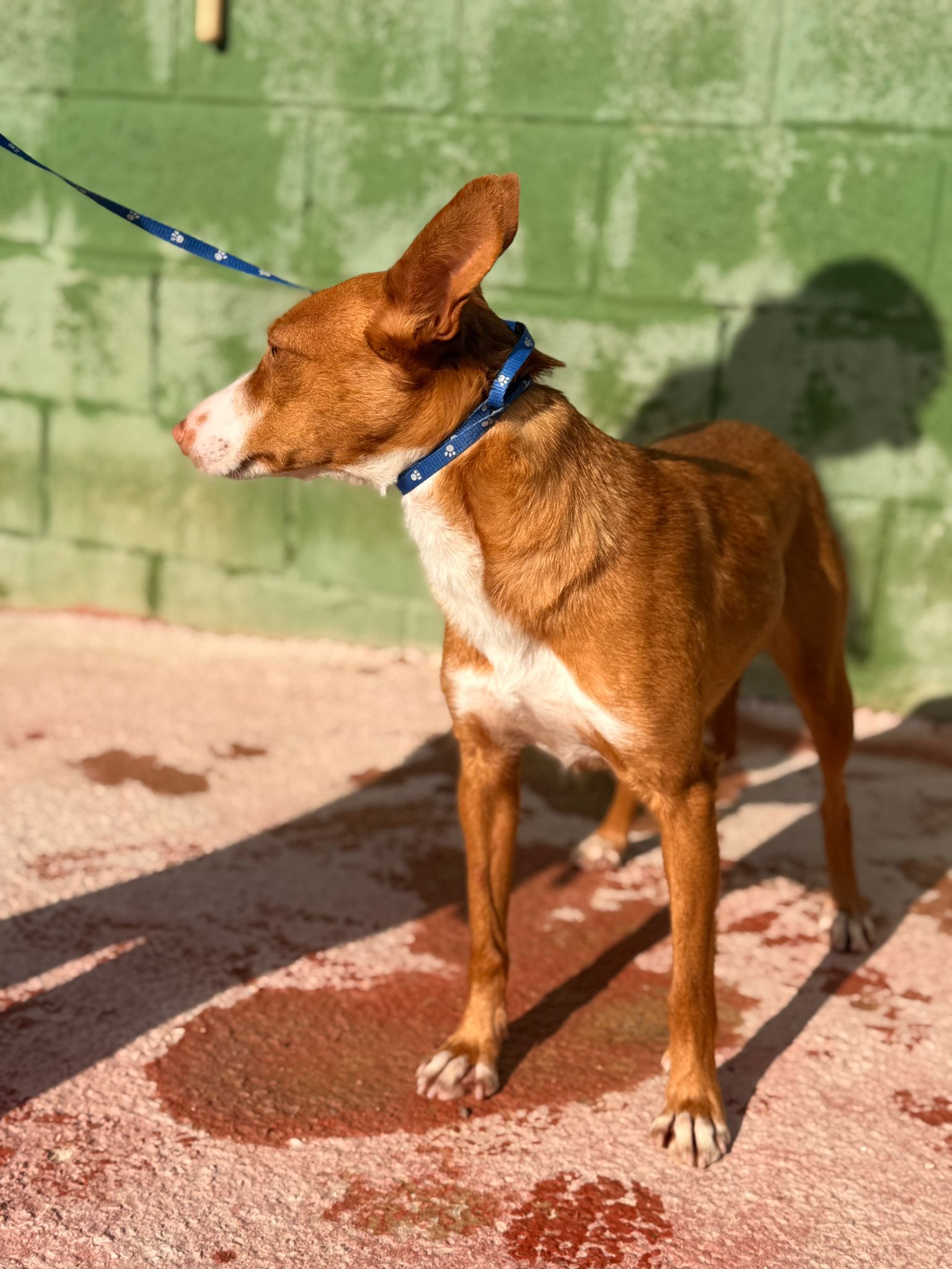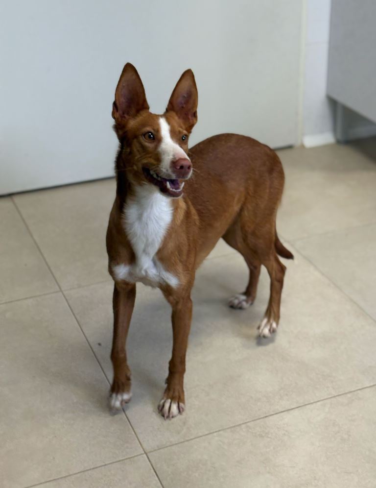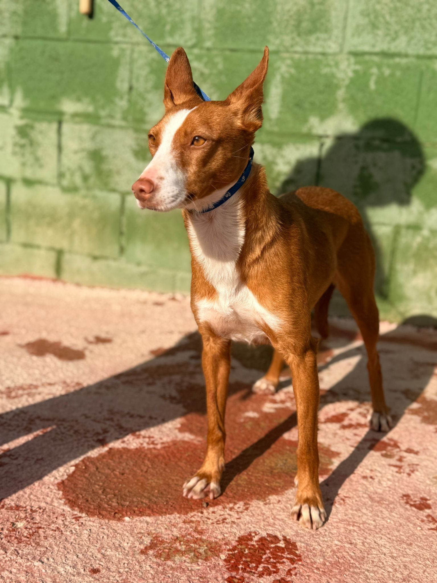 Pascua apareció abandonada en el mes de Diciembre en un pueblo de Albacete. Las autoridades avisaron a la perrera y ellos la recogieron. Era una perra muy muy miedosa, totalmente delgada y que apenas se relacionaba pero gracias al trabajo de los trabajadores consiguieron ganarse su confianza y ahora es una perra totalmente distinta. Es cariñosa, compatible con todo tipo de perros, apta para vivir con niños y no es muy activa por lo que puede adaptarse muy bien a cualquier tipo de familia