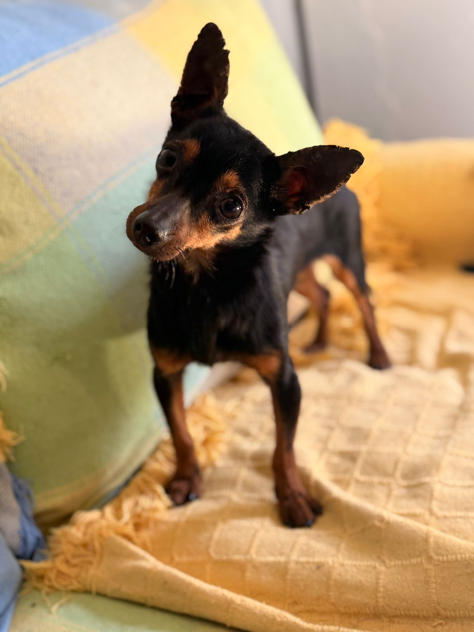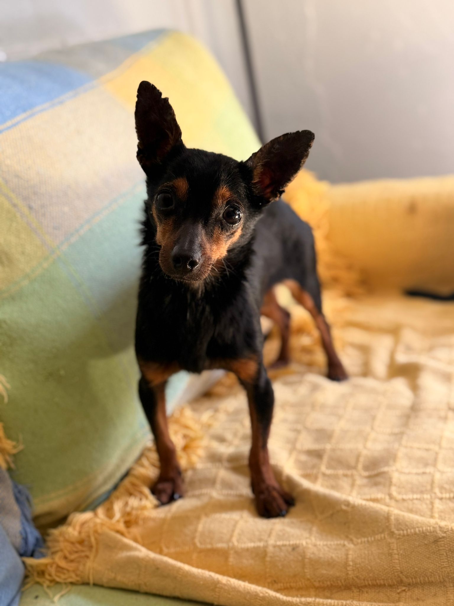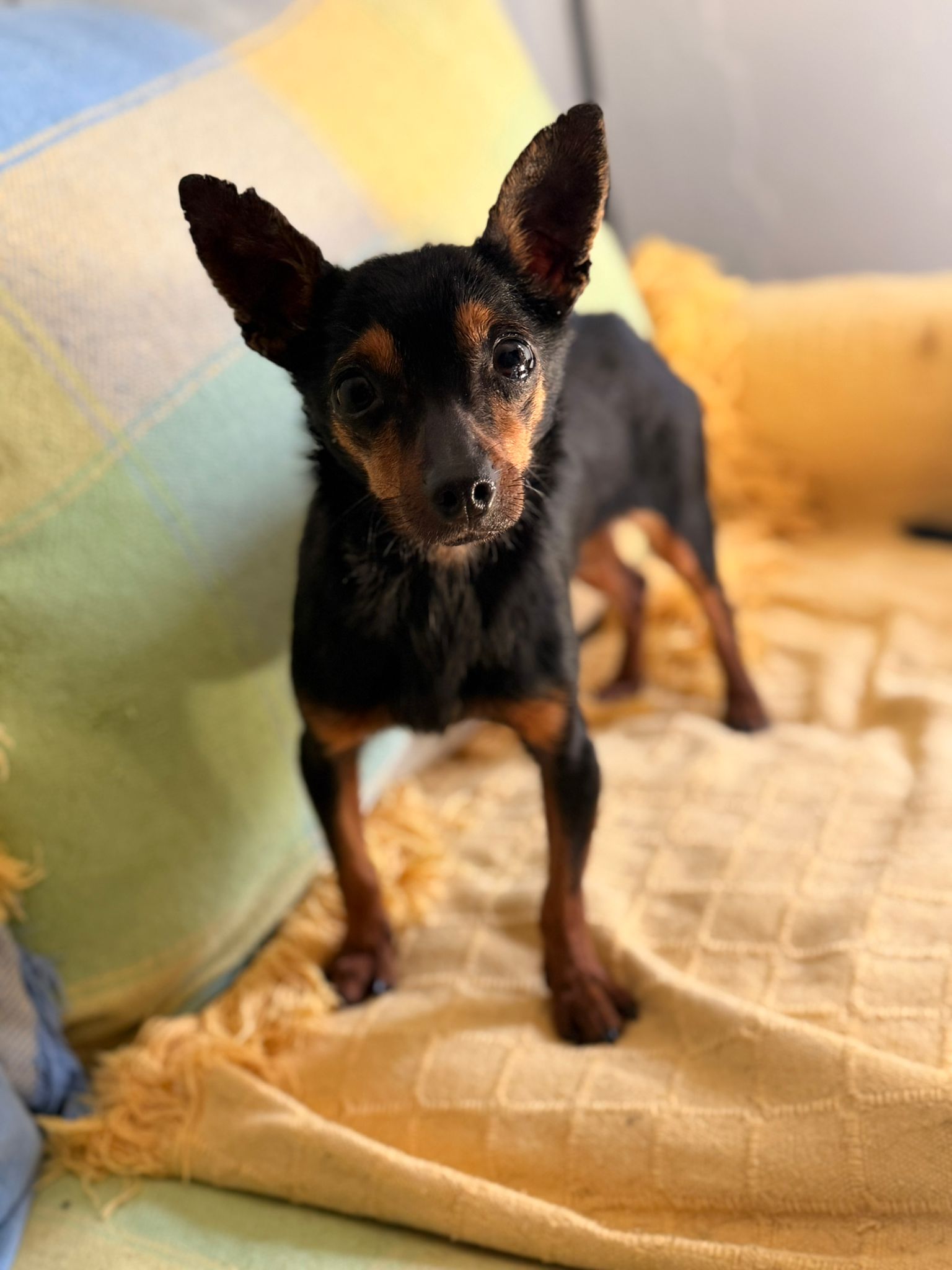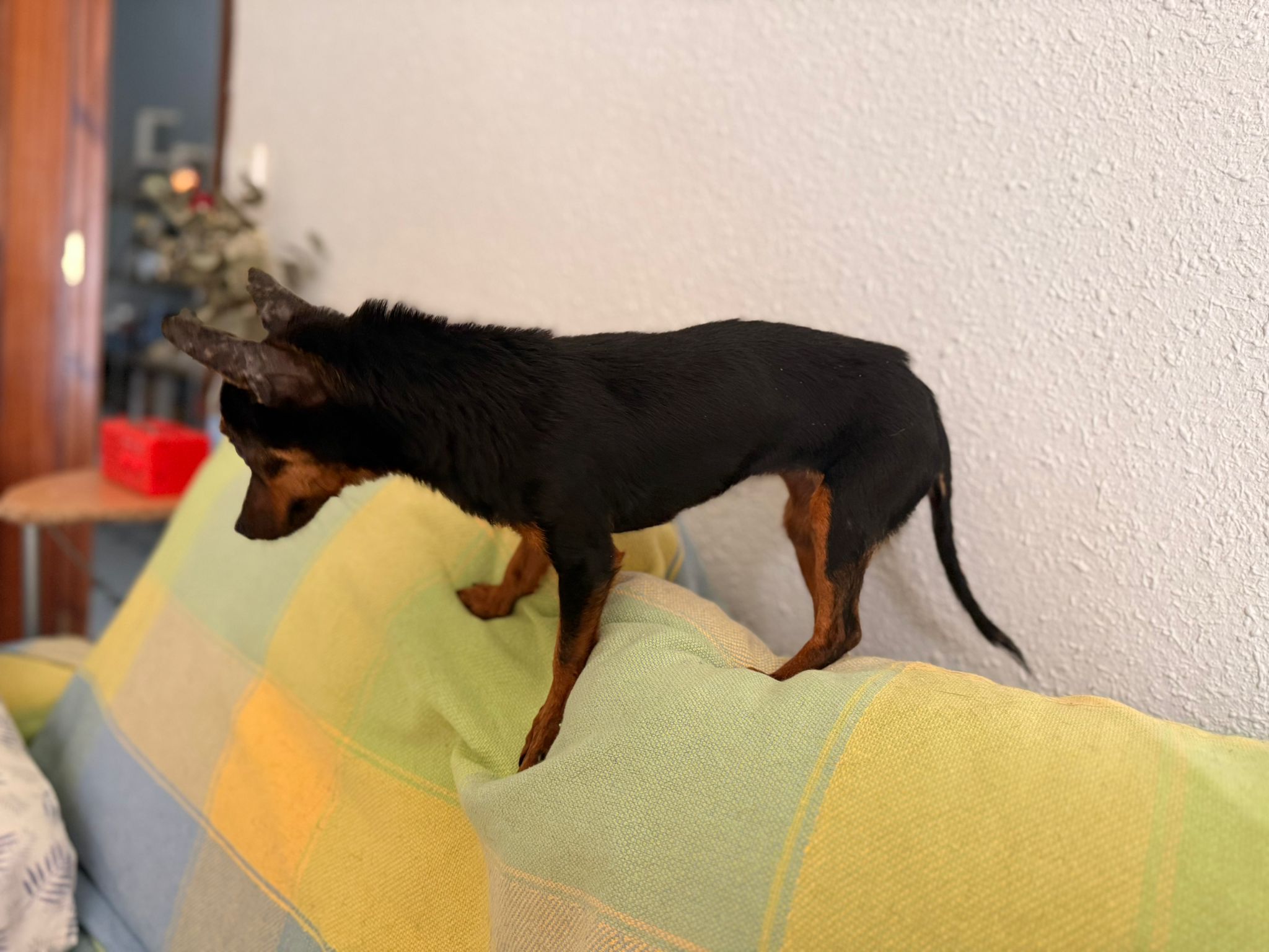 Pitu fue encontrada hace unas dos semanas, abandonada en un pueblo cercano a Linares. Estaba tumbada en los escalones de una casa, buscando refugio, y la descubrieron al abrir la puerta. Estaba completamente cubierta de pulgas y garrapatas y estaba extremadamente delgada, pero se está recuperando poco a poco. Aunque no tiene pelo en las orejas y estas están cubiertas de llagas, goza de buena salud, por lo que su estado se debe a la mala alimentación y a la falta de higiene. Ahora se encuentra en una casa de acogida, donde se lleva bien con otros perros; también se lleva bien con gatos y niños. Traducción realizada con la versión gratuita del traductor DeepL.com