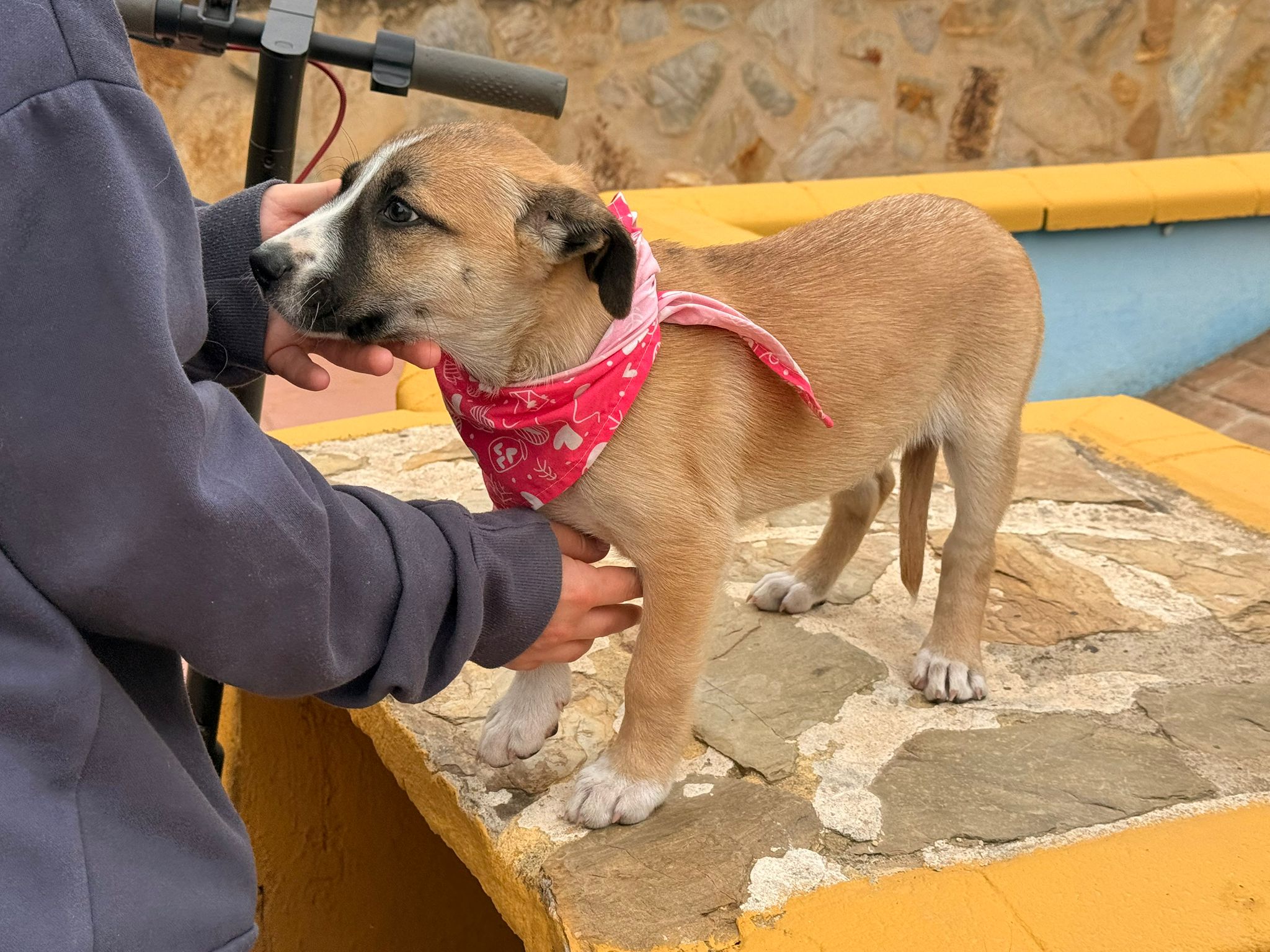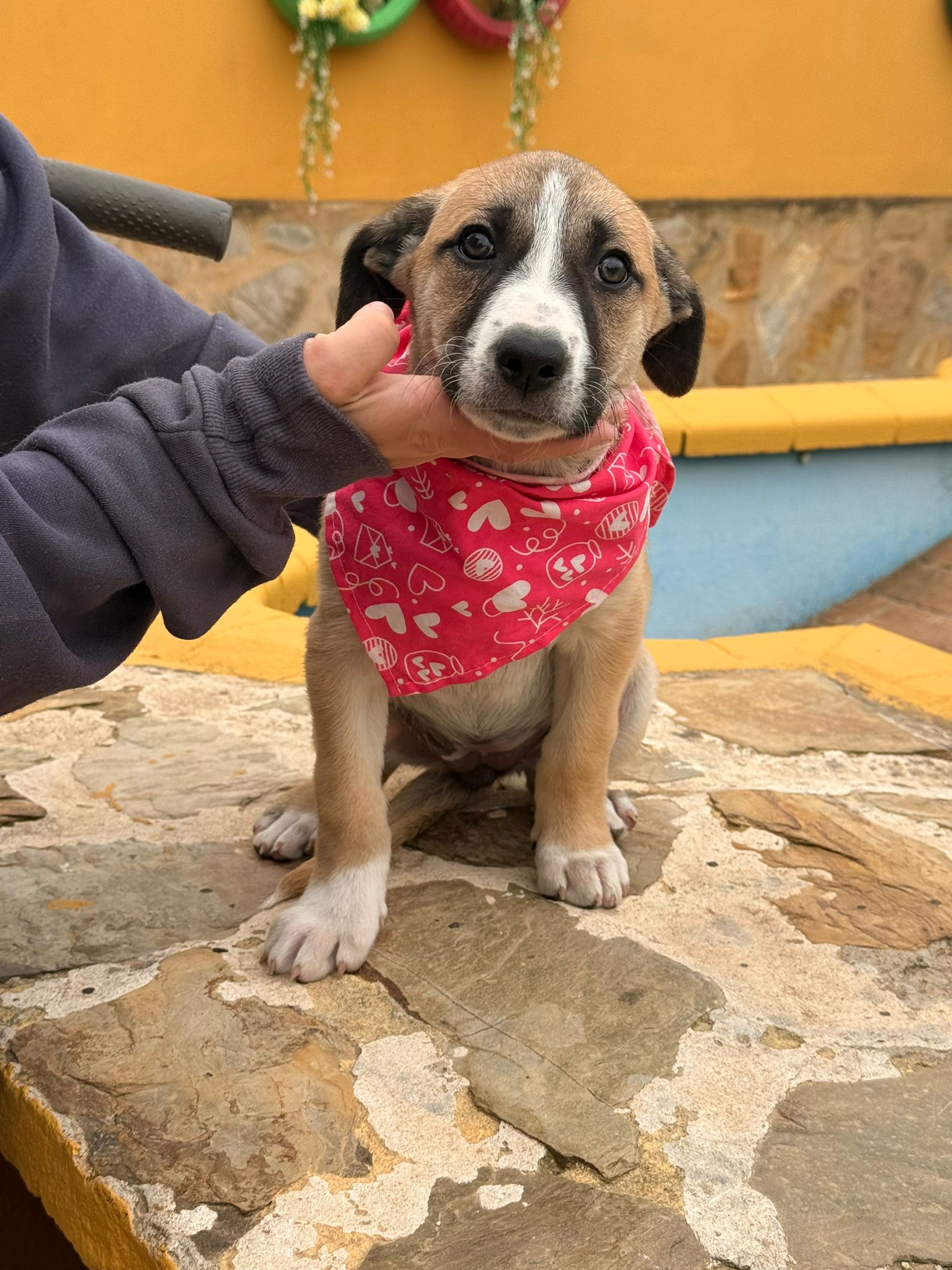 Susi y sus hermanos nacieron el pasado 15 de febrero. La mamá se escapó y volvió a casa embarazada nada mas y nada menos que de 7 cachorros. Ahora que ya tienen edad de encontrar una nueva familia buscamos para ellos un hogar definitivo. De adultos serán de tamaño mediano ya que al parecer tienen cruce de podenco con mastín y border collie