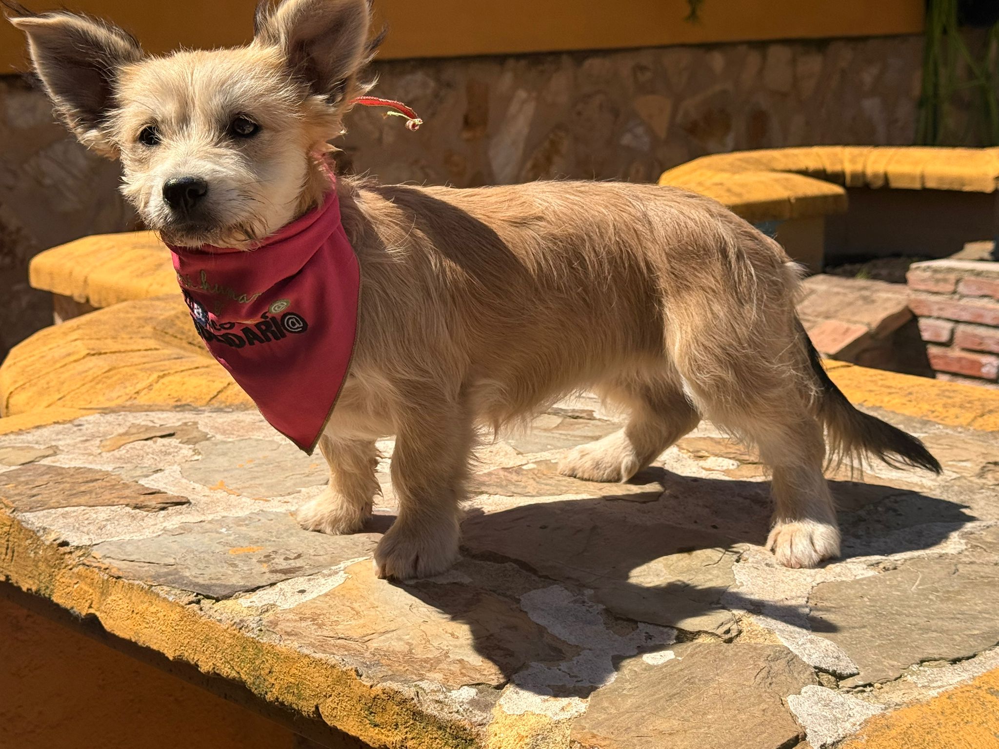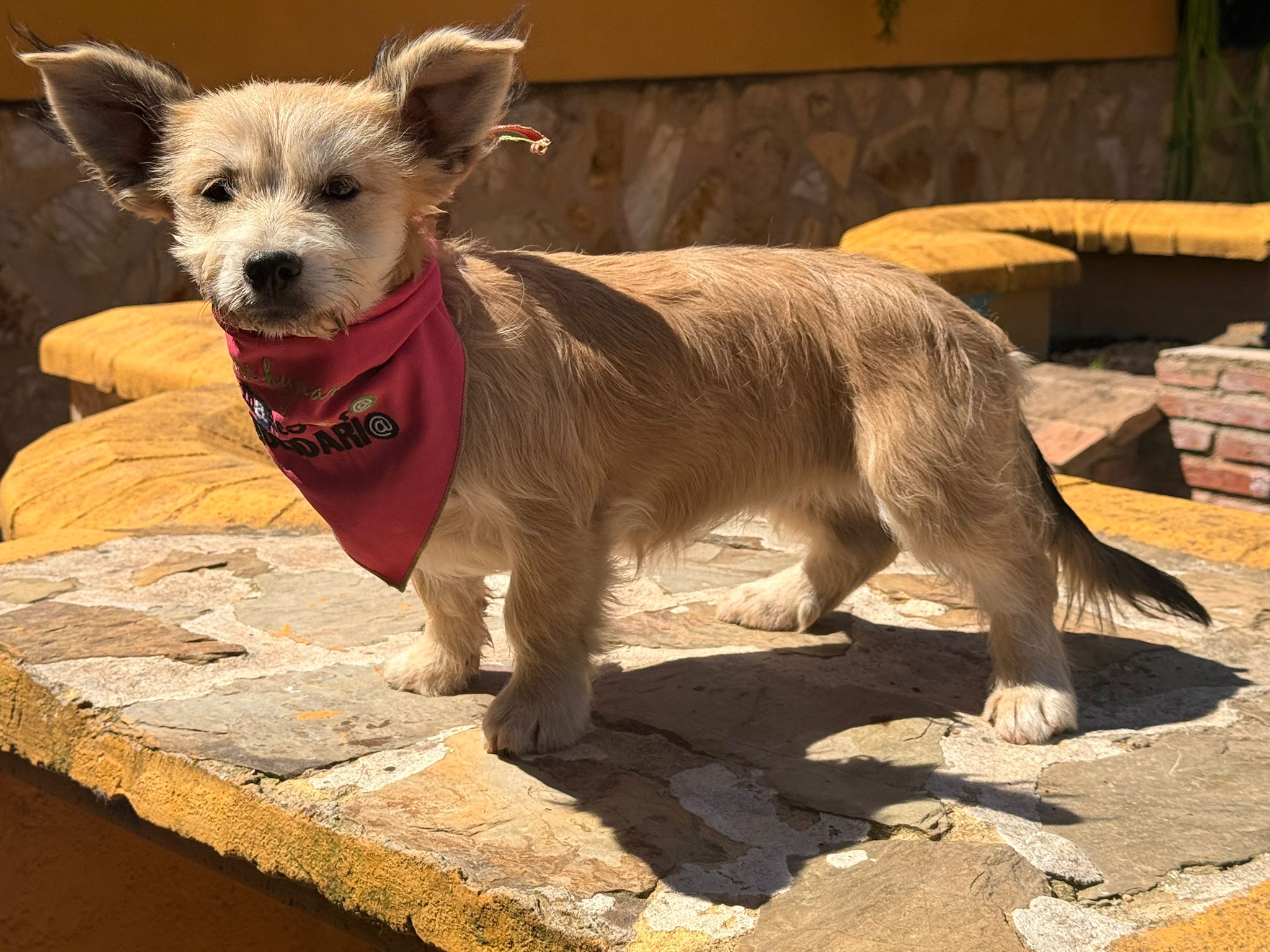 Tini y su hermano Sol fueron recogidos junto a su madre Brisa abandonados en un pueblo cercano a Linares. Debido a la dura vida que han tenido que pasar al principio son tímidos por lo que necesitan un poco de tiempo para coger confianza aunque se dejan tocar sin problemas y pueden convivir con perros, gatos y niños