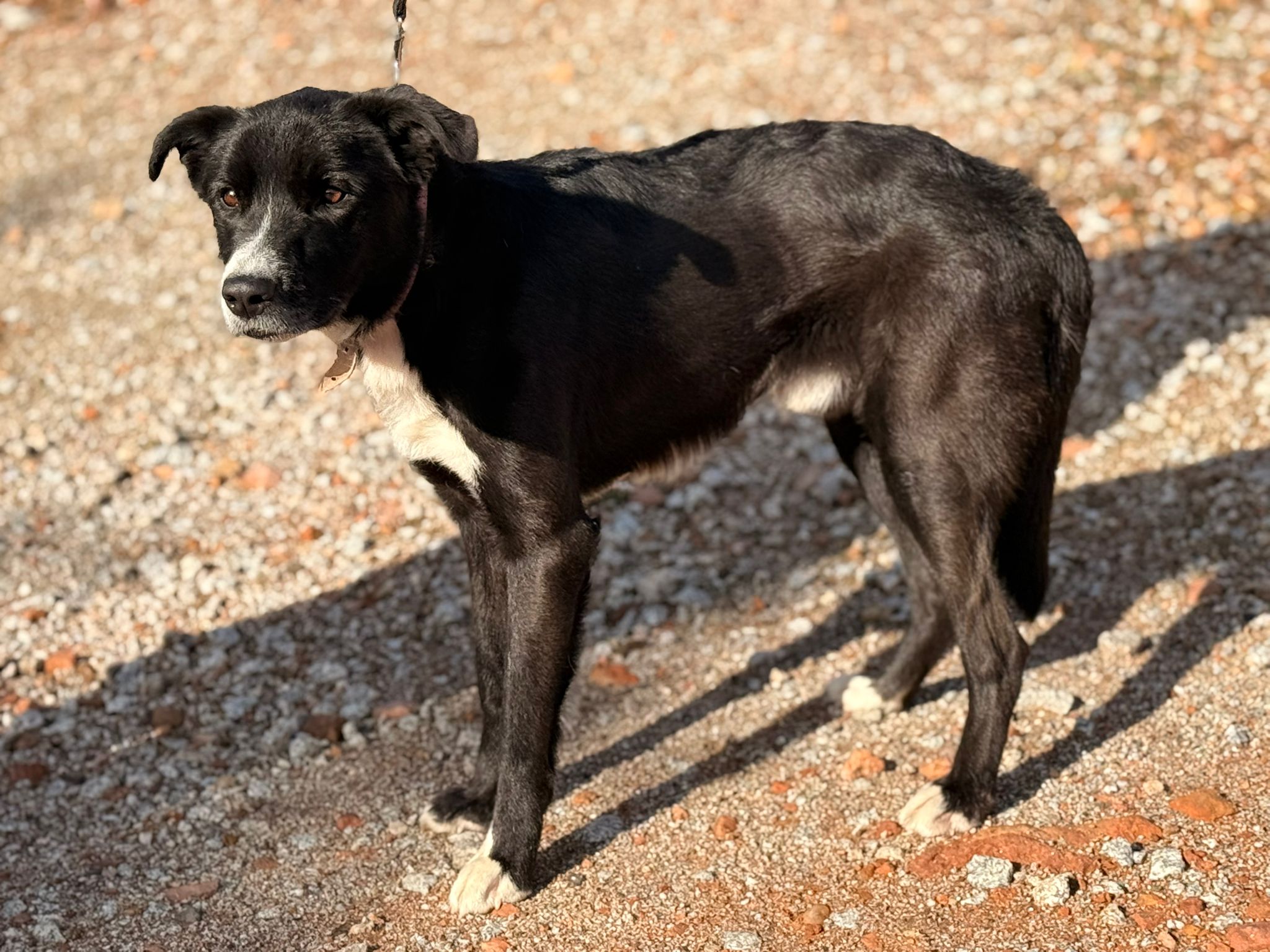 Claus fue recogido abandonado el día 24 de Diciembre en una zona de parcelas a las afueras de Linares. Llegó en un estado lamentable, muy delgado y con algunas heridas, al no reclamarlo nadie pasó a buscar una familia pero desde entonces nadie ha preguntado por él. Es un perro juguetón, cariñoso, sociable con perros, gatos y niños que se puede adaptar a cualquier familia sin problema alguno