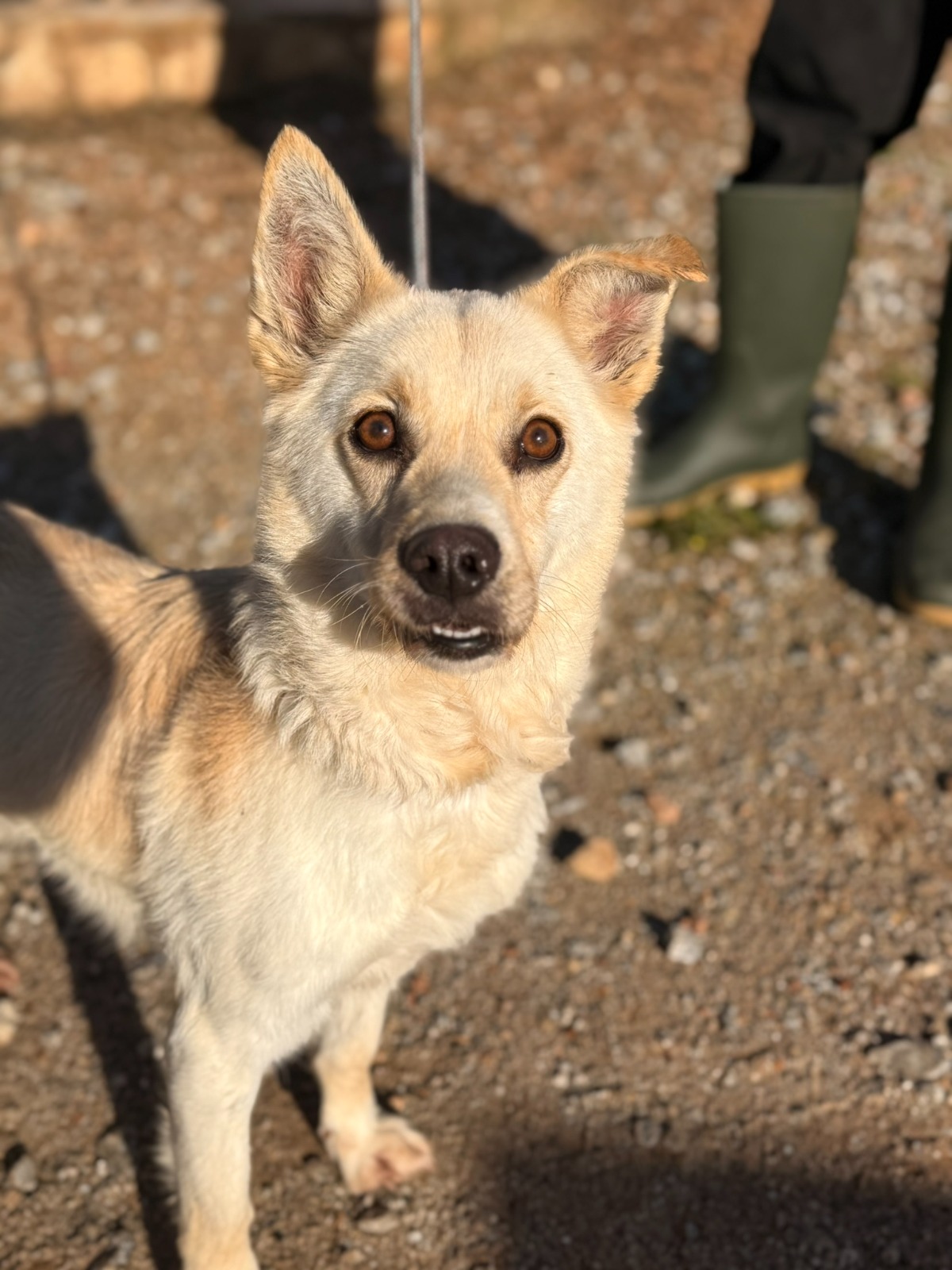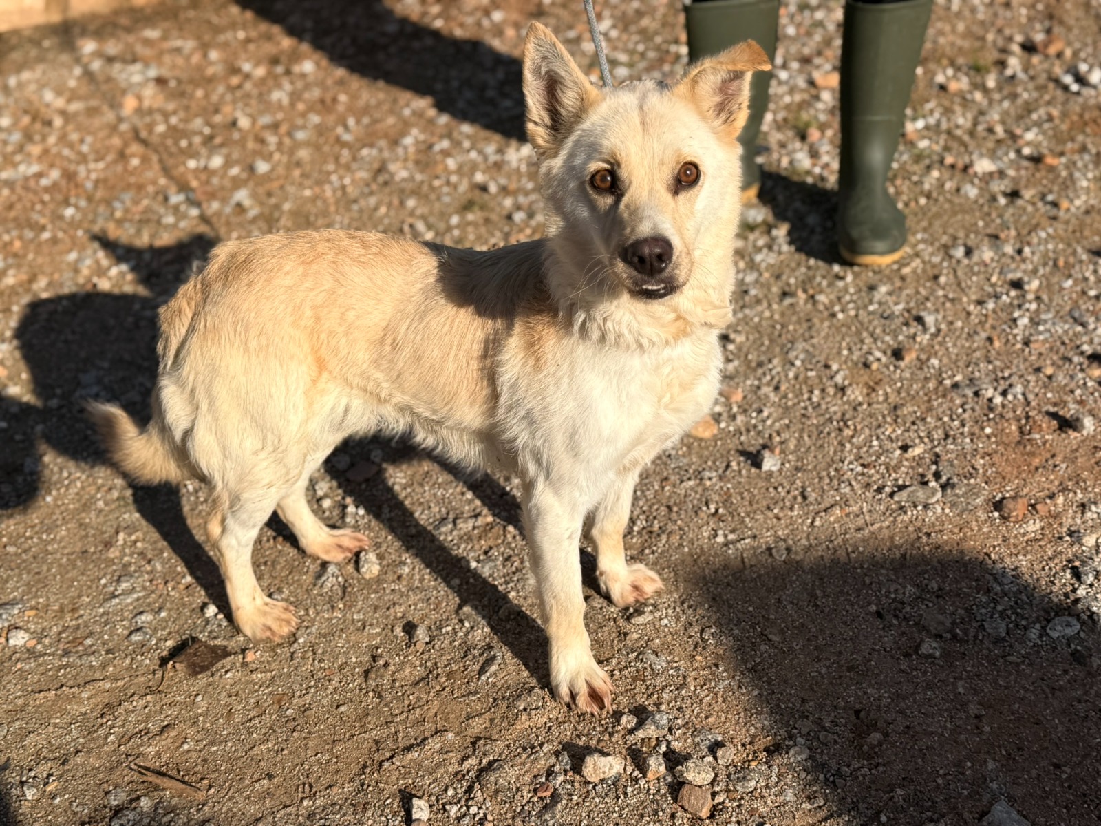 Coco es un perro de seis años que ha sido entregado por su propietaria. Lo criaron desde pequeño pero ahora al mudarse a otra casa no han podido llevarlo con ellas y entonces ha acabado aquí. Al principio nos mordía pero todo era del miedo que tenía, ahora es un perro totalmente cariñoso, se pone muy contento cuando nos ve y además le encanta jugar con las pelotas