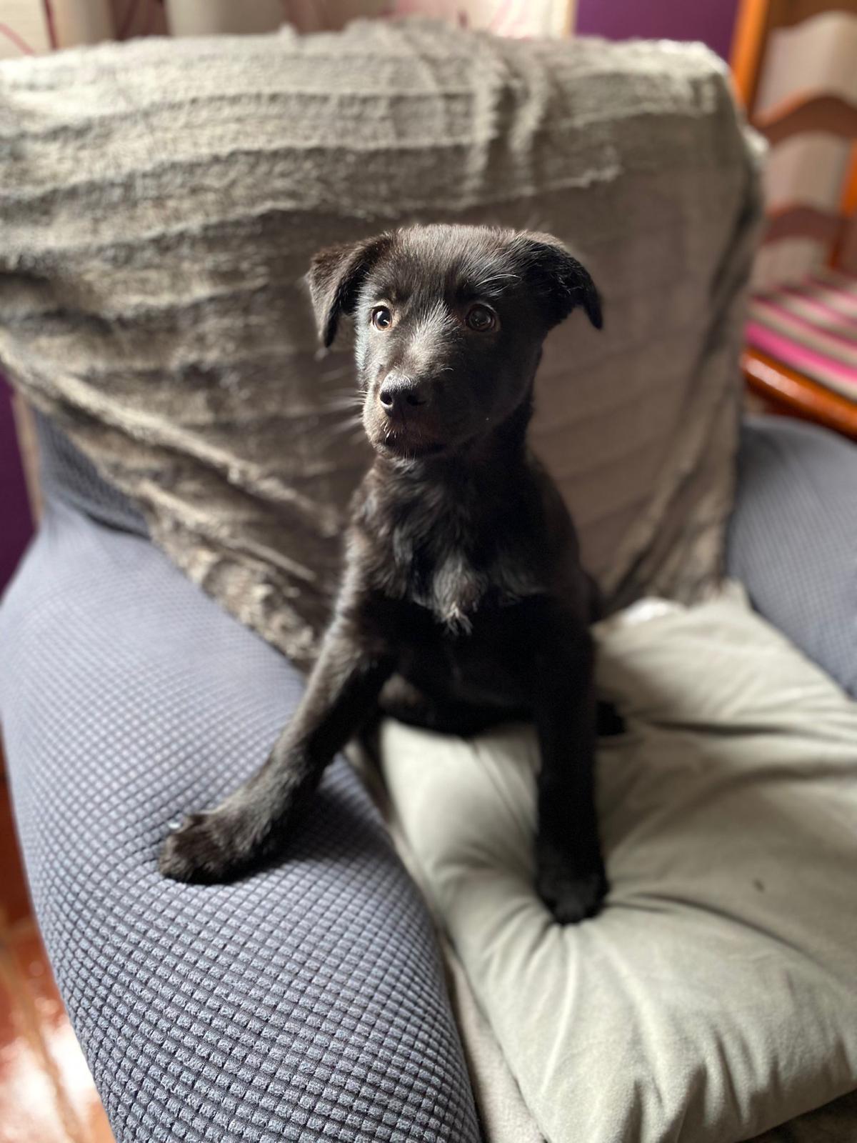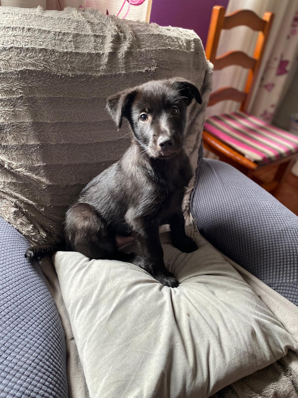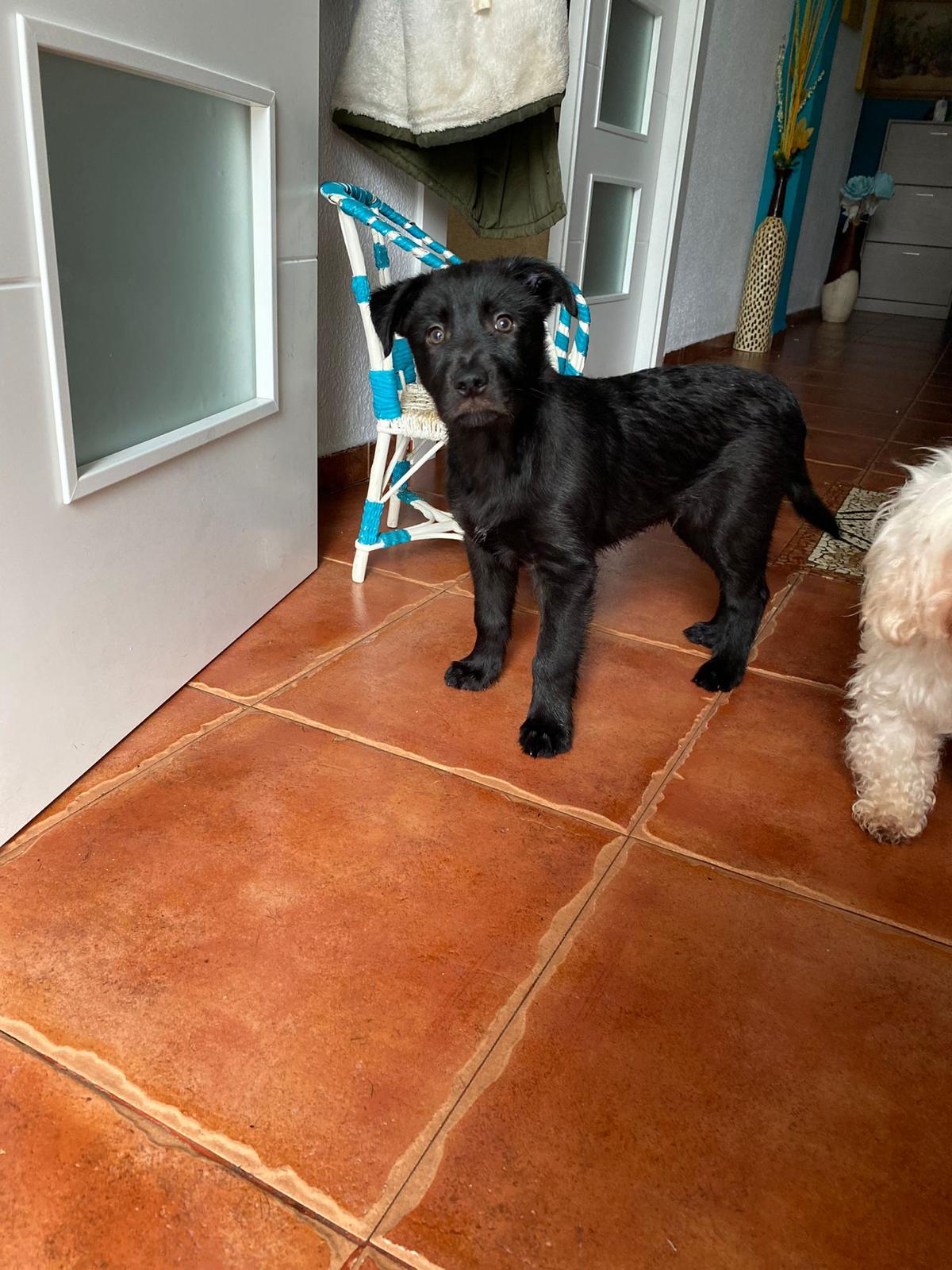 Gordo es un cachorro que recogimos el pasado mes de Diciembre abandonado en un contenedor. Fue criado a biberón y debido a ello ha estado con problemas digestivos algunas semanas pero ahora ya está totalmente recuperado para irse a un hogar. No sabemos su cruce exacto pero estimamos que sea de tamaño mediano. Es totalmente compatible con perros, gatos y niños