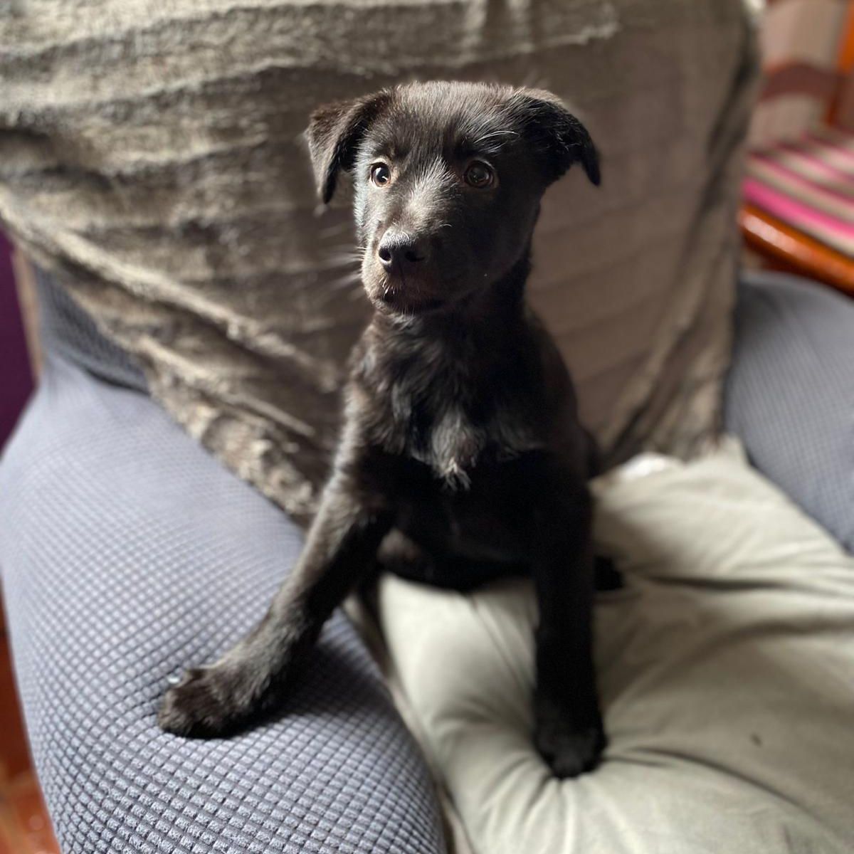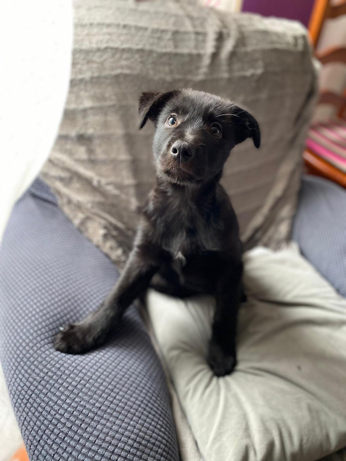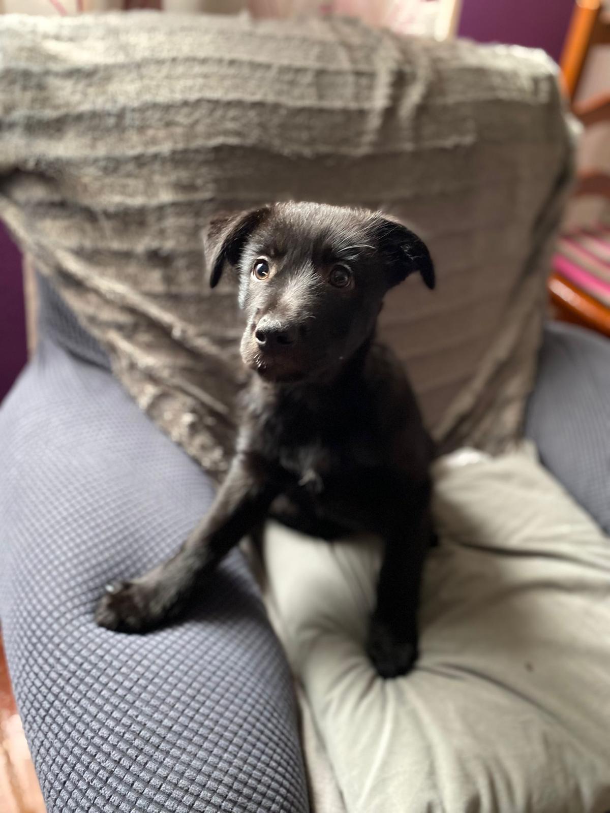 Gordo es un cachorro que recogimos el pasado mes de Diciembre abandonado en un contenedor. Fue criado a biberón y debido a ello ha estado con problemas digestivos algunas semanas pero ahora ya está totalmente recuperado para irse a un hogar. No sabemos su cruce exacto pero estimamos que sea de tamaño mediano. Es totalmente compatible con perros, gatos y niños