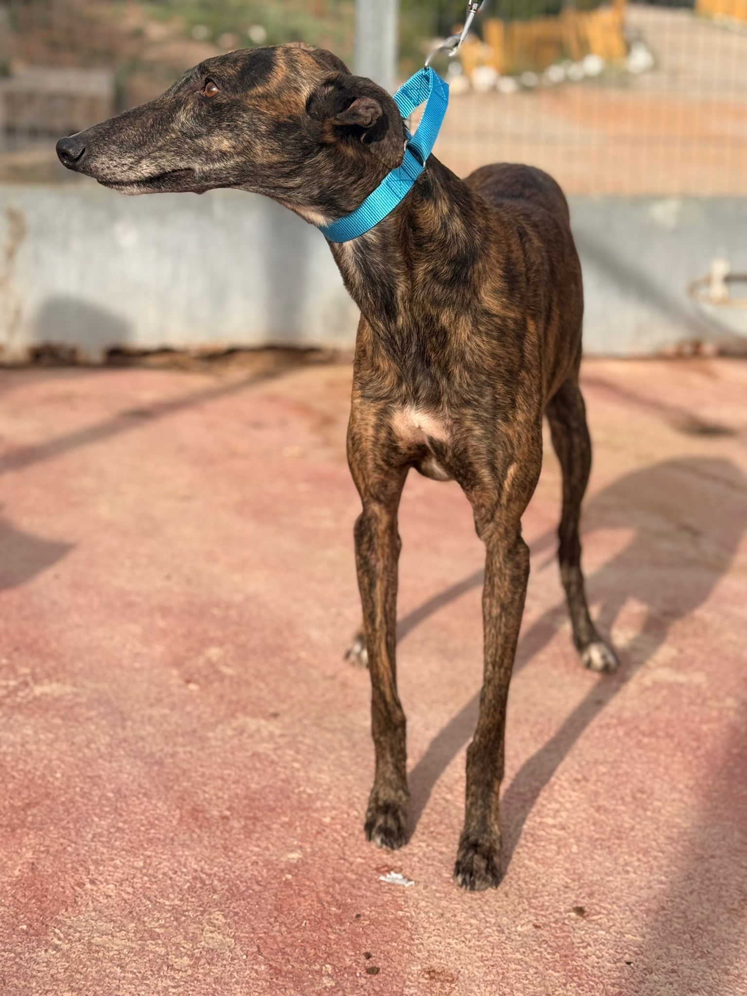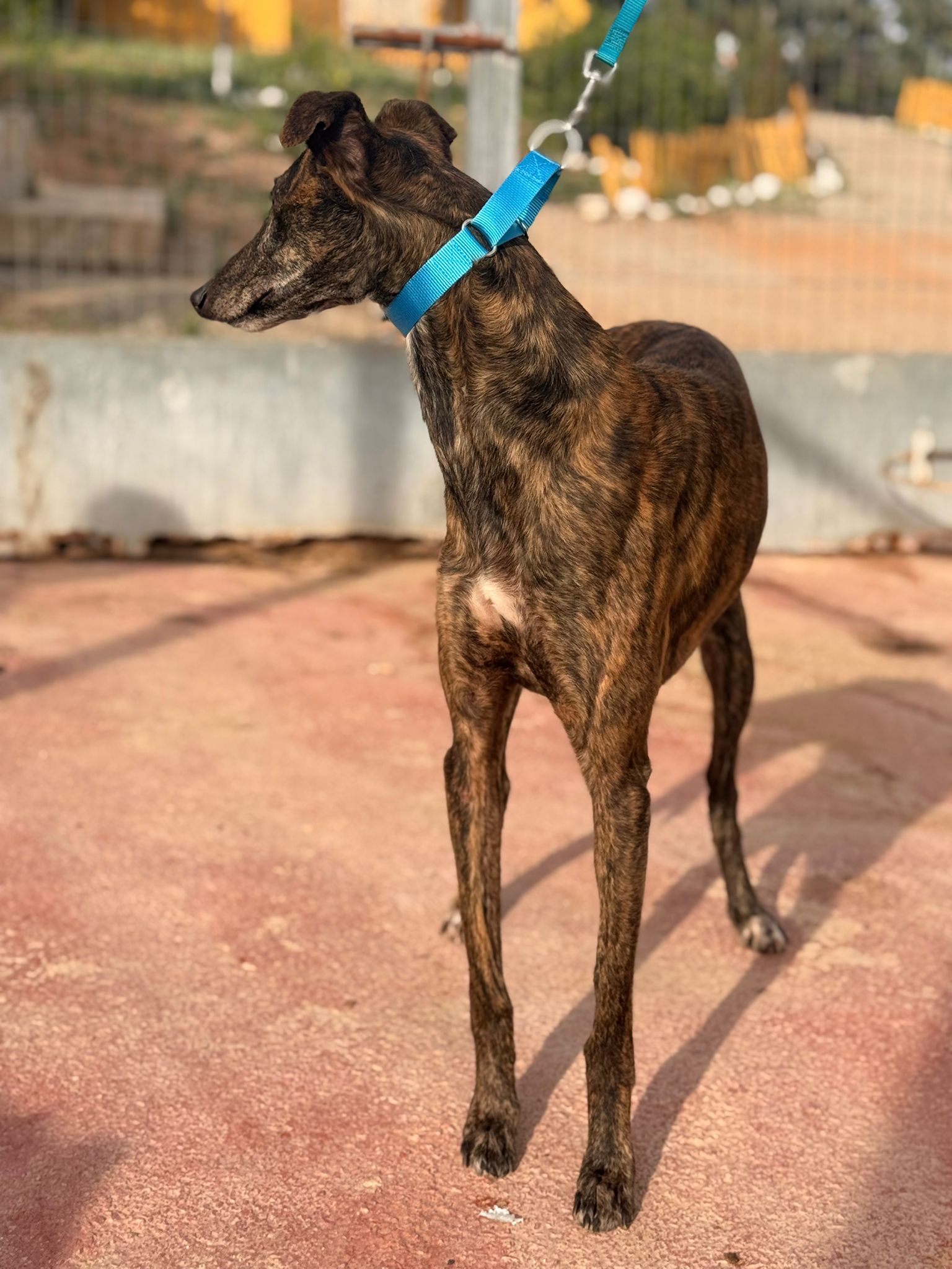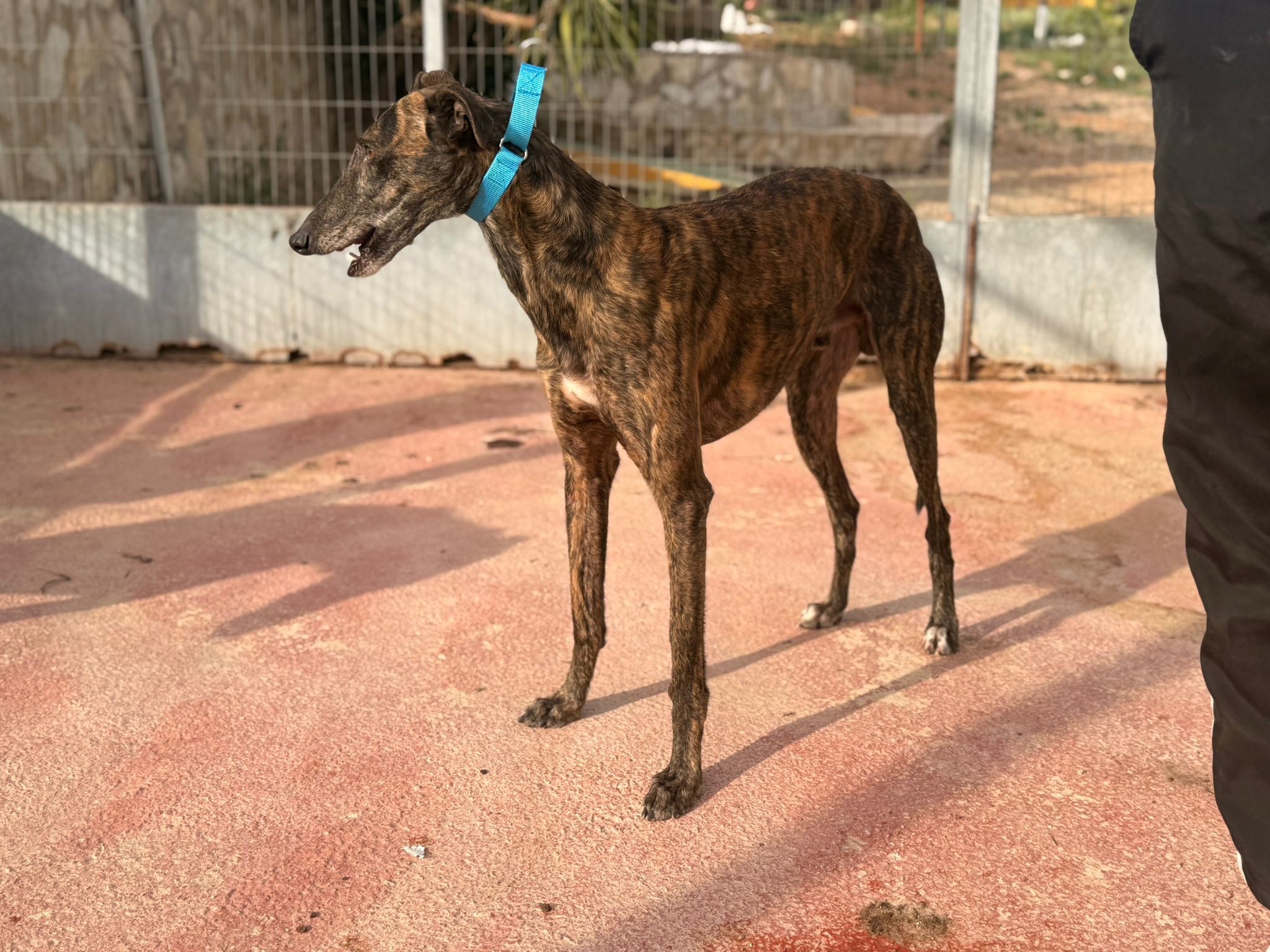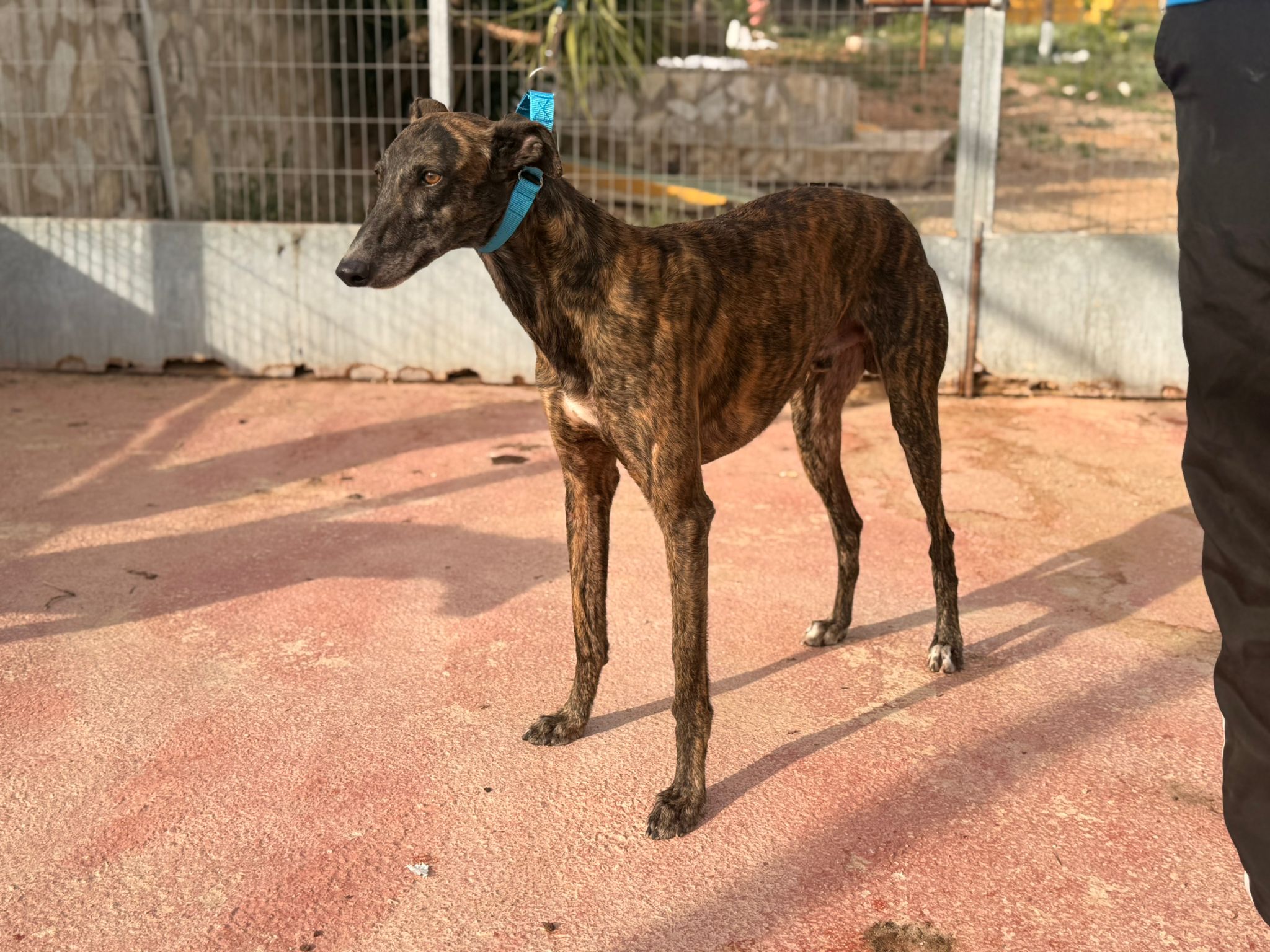 Lyra, Dante y Haku son tres galgos que fueron abandonados por un cazador y han llegado a nuestra asociación en busca de un nuevo comienzo. Haku es tímido, pero se va acostumbrando a la gente. Al principio no tarda tanto en soltarse como Lyra; al principio se pone un poco nervioso cuando va atado, pero puede pasear así, aunque hay que tener cuidado. Se lleva bien con otros perros y con los niños, pero aún no se ha comprobado cómo se comporta con los gatos.