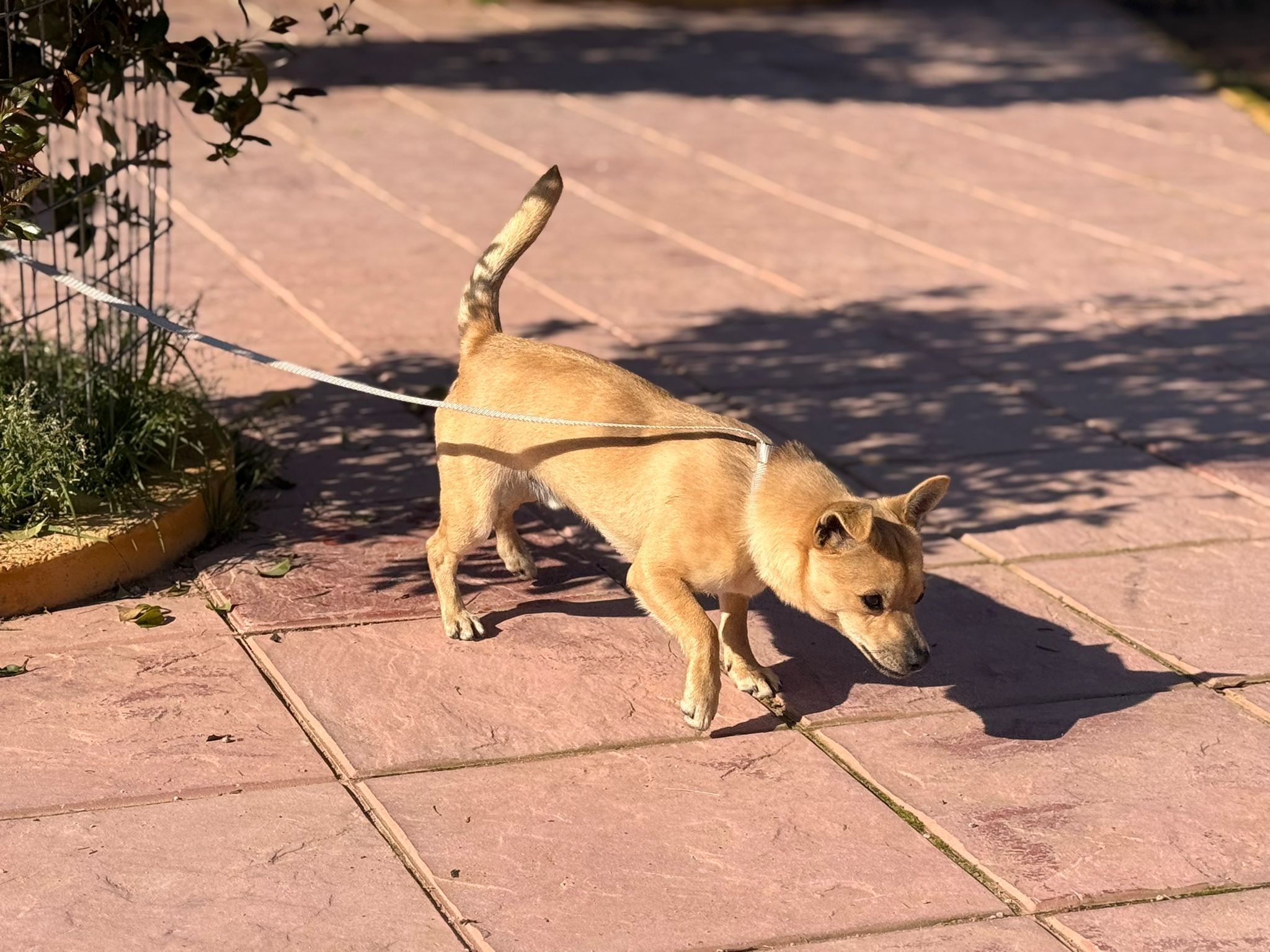 Mickey apareció hace unos días abandonado en Linares, se refugió en el interior de una peluquería y aunque inicialmente pensában que iba con el dueño/a, tras preguntar y corroborar que nadie era el dueño, nos llamaron a nosotras. Es un cachorro muy bueno con todo tipo de perros, gatos y niños. Está acostumbrado a vivir en una casa y también a pasear con correa