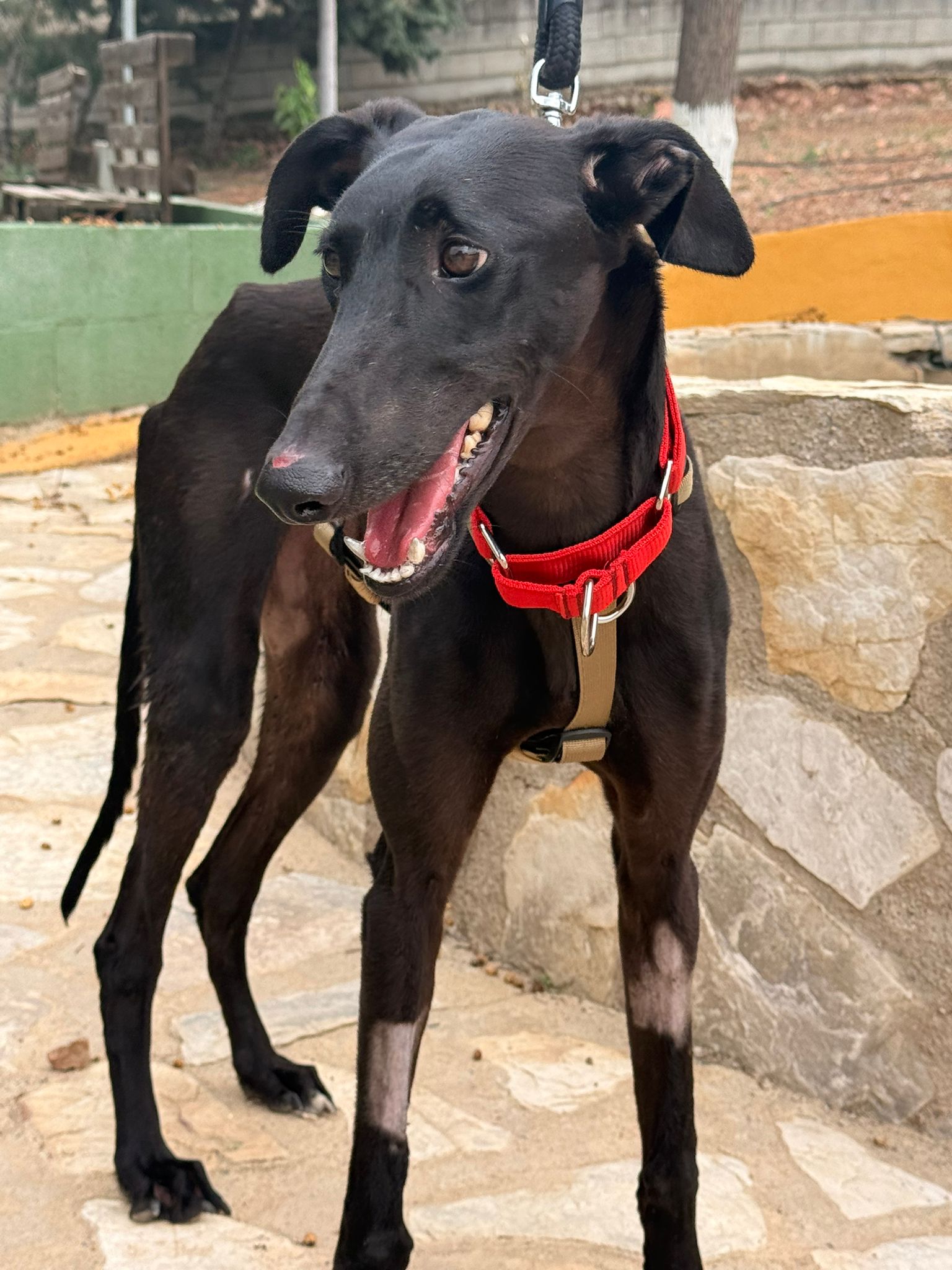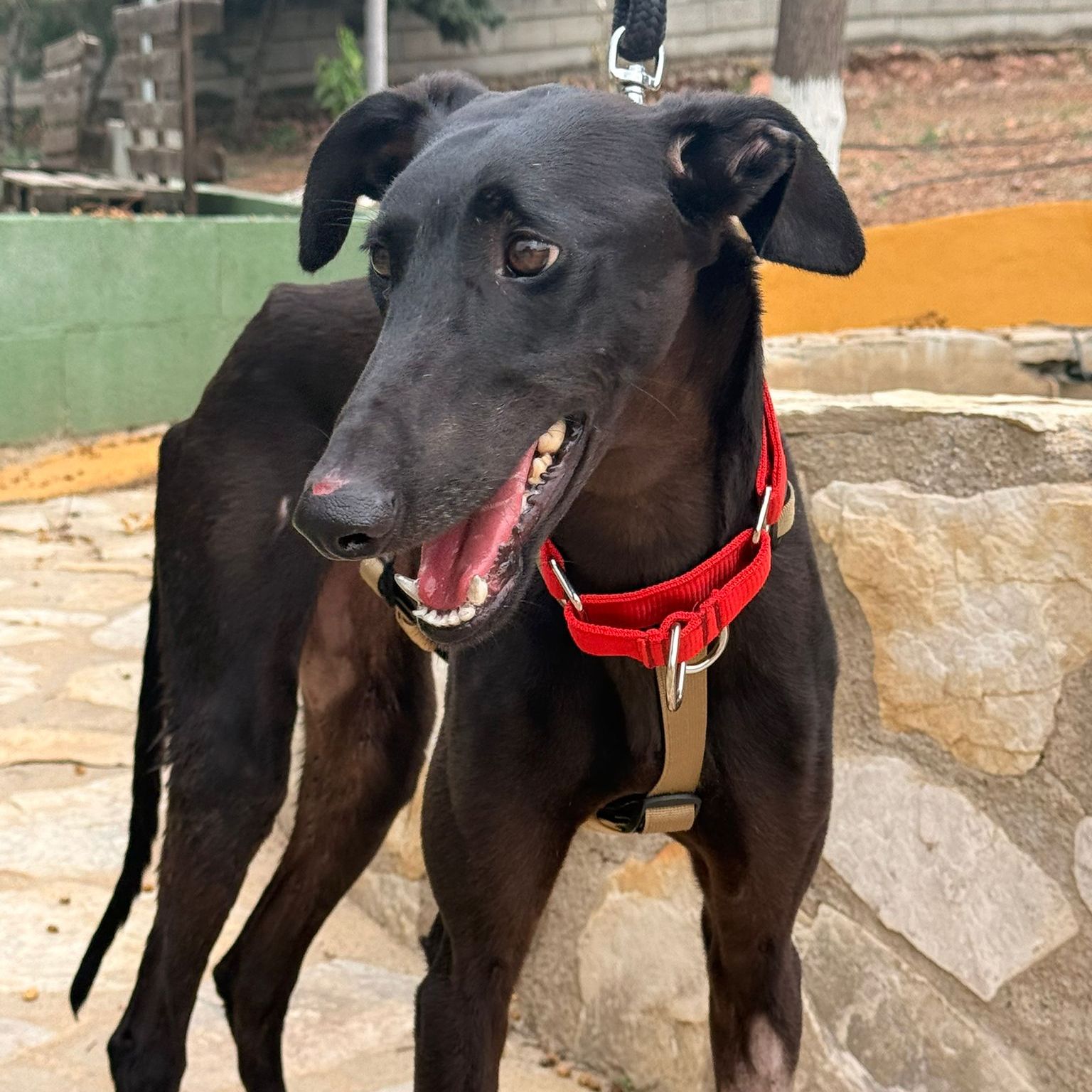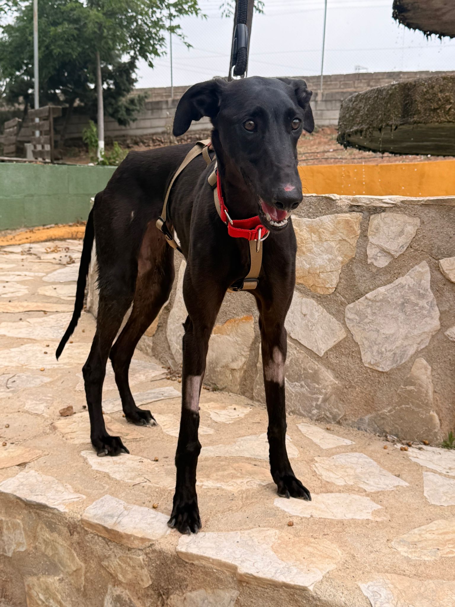 Orión es un galgo de un año que fue entregado por el propietario en una clínica veterinaria en un estado lamentable. Tenía el pene totalmente necrosado y podrido que le impedía hacer pipí por lo cual tuvo que ser operado de urgencia. Se le ha amputado el pene y se le ha practicado una urestroctomía mediante la cual se le ha hecho un agujero en la piel que conecta con el sistema urinario y le permite hacer pipí sin ningún tipo de problema. Tiene un carácter super noble, pasea super bien con correa y se lleva genial con todo tipo de perros, gatos y niños