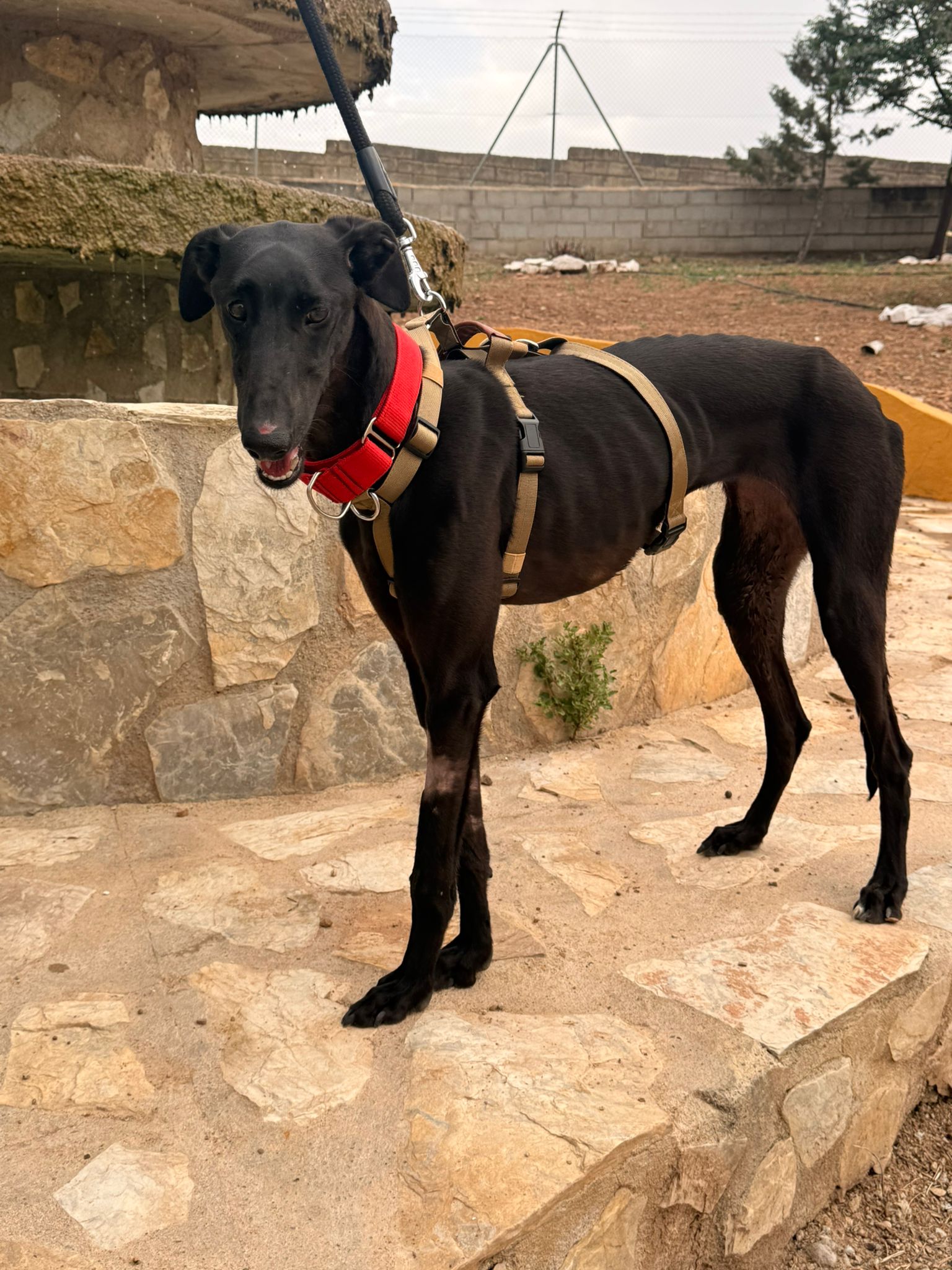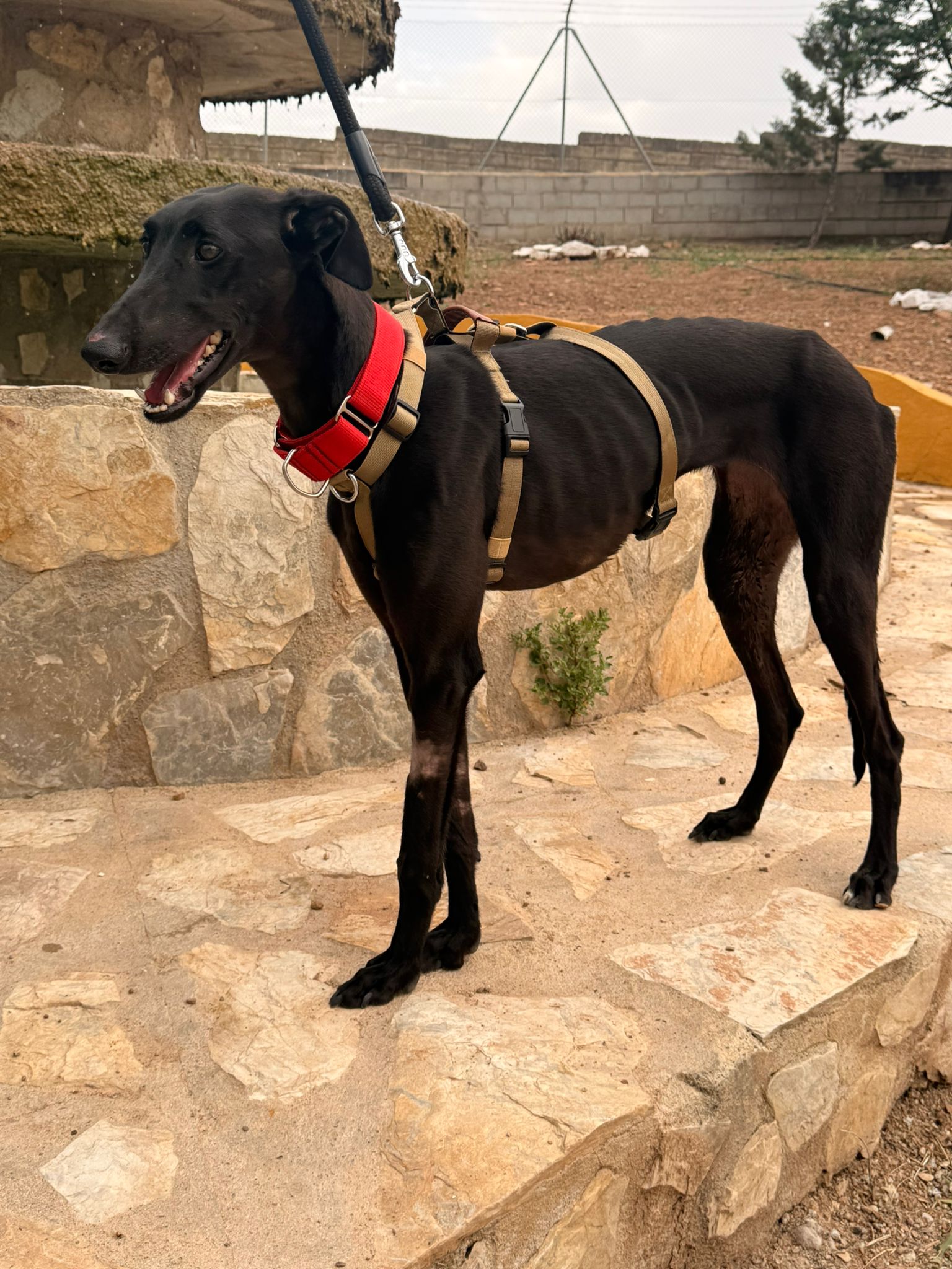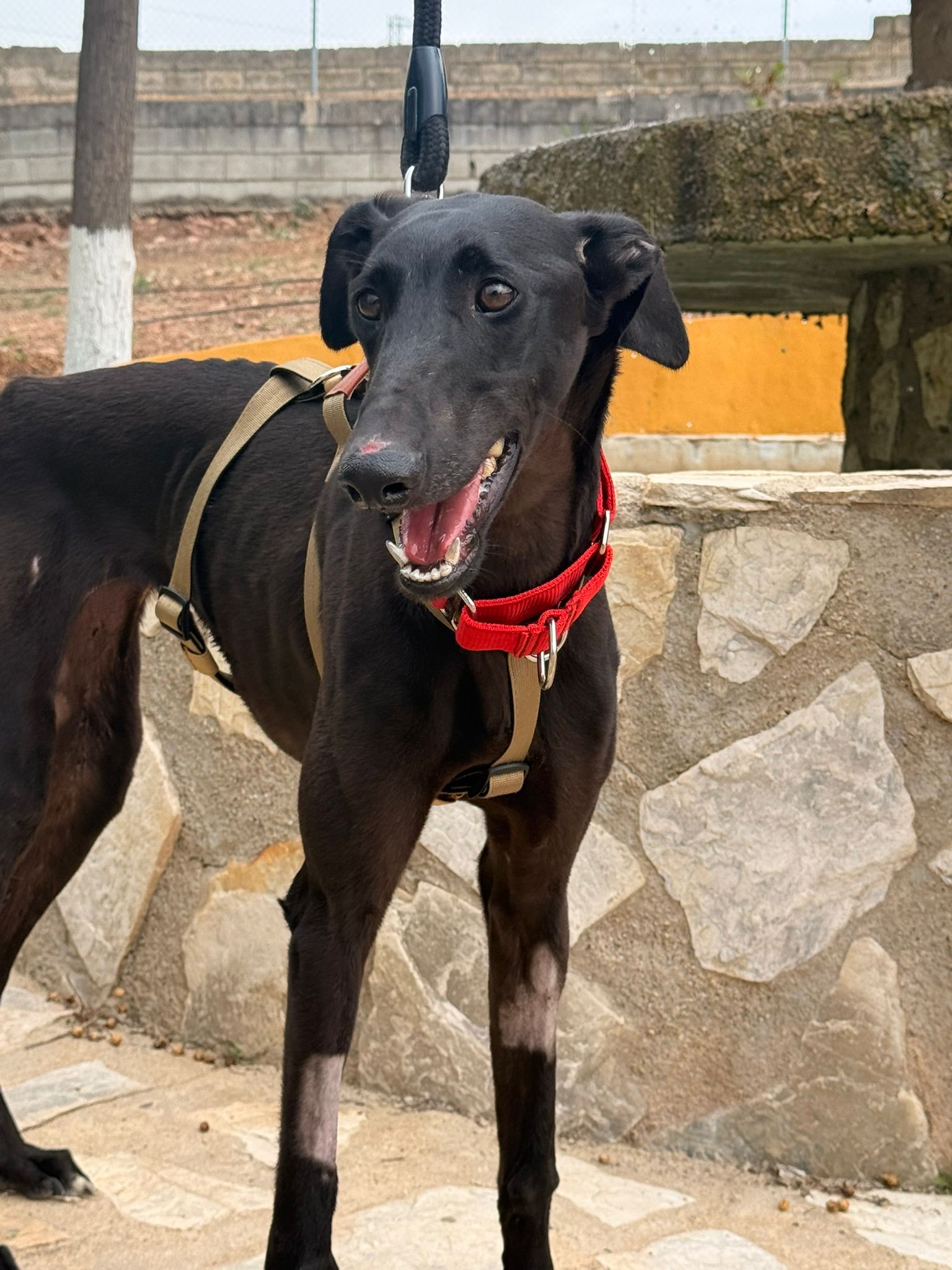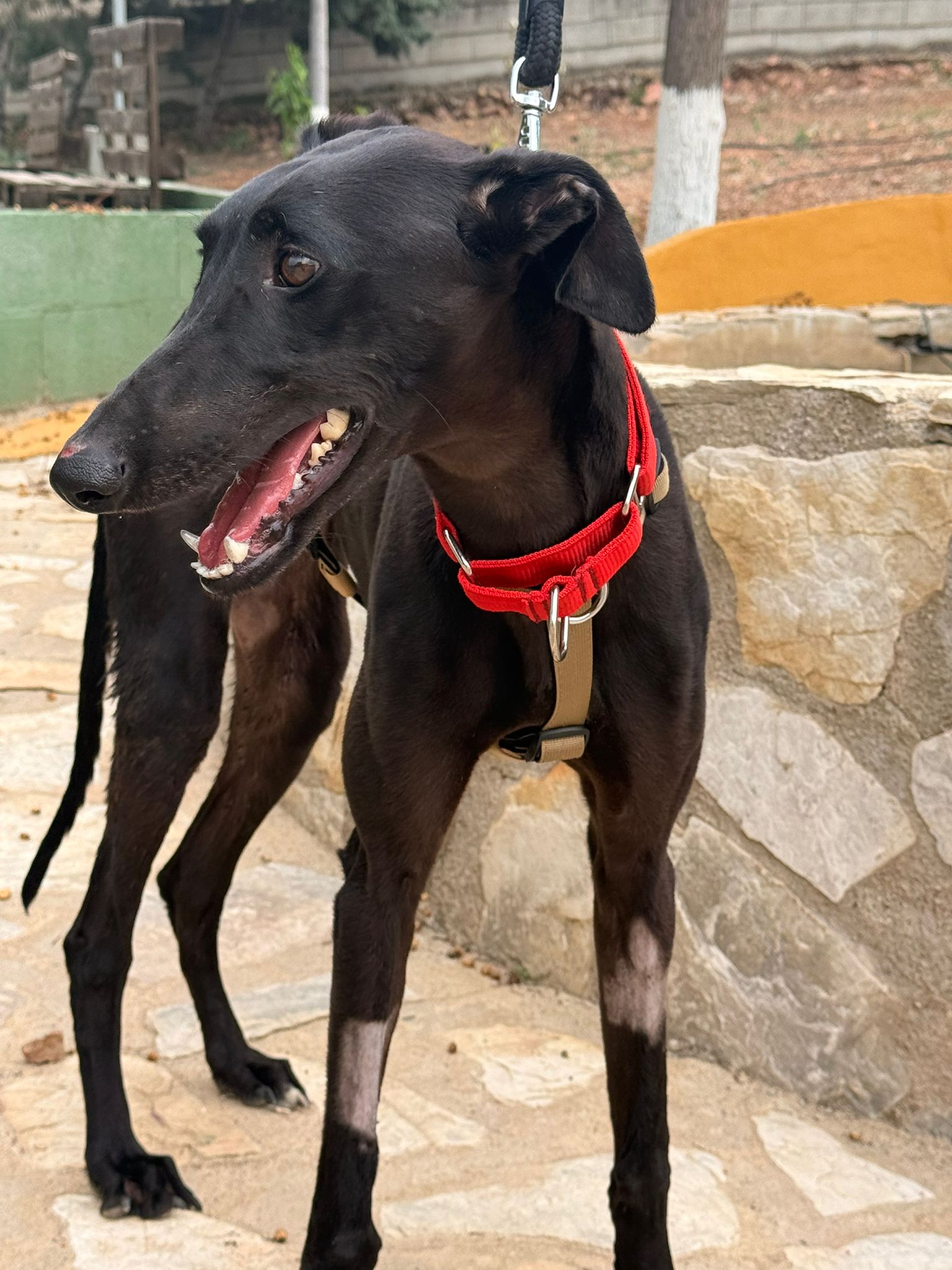 Orión es un galgo de un año que fue entregado por el propietario en una clínica veterinaria en un estado lamentable. Tenía el pene totalmente necrosado y podrido que le impedía hacer pipí por lo cual tuvo que ser operado de urgencia. Se le ha amputado el pene y se le ha practicado una urestroctomía mediante la cual se le ha hecho un agujero en la piel que conecta con el sistema urinario y le permite hacer pipí sin ningún tipo de problema. Tiene un carácter super noble, pasea super bien con correa y se lleva genial con todo tipo de perros, gatos y niños