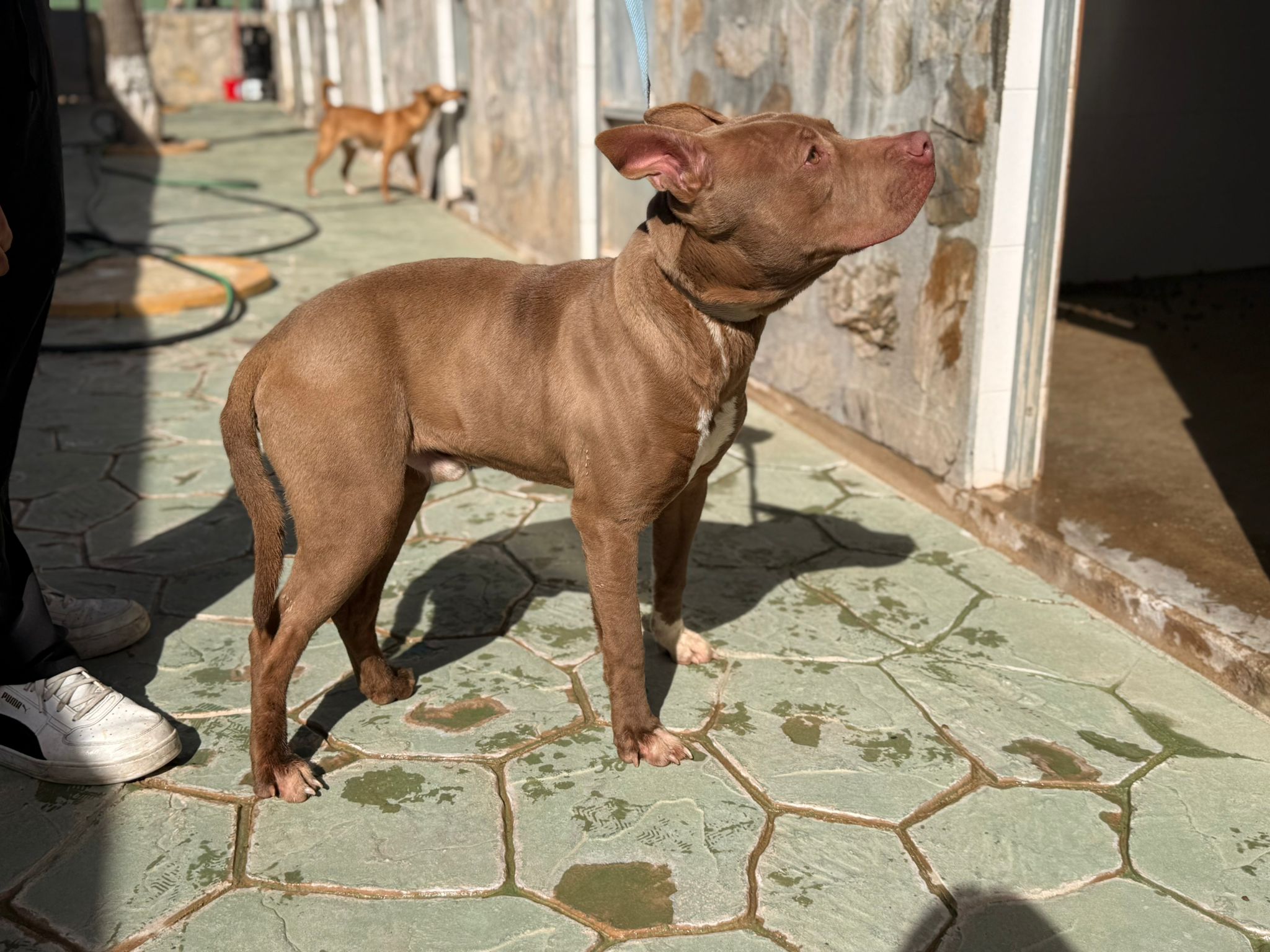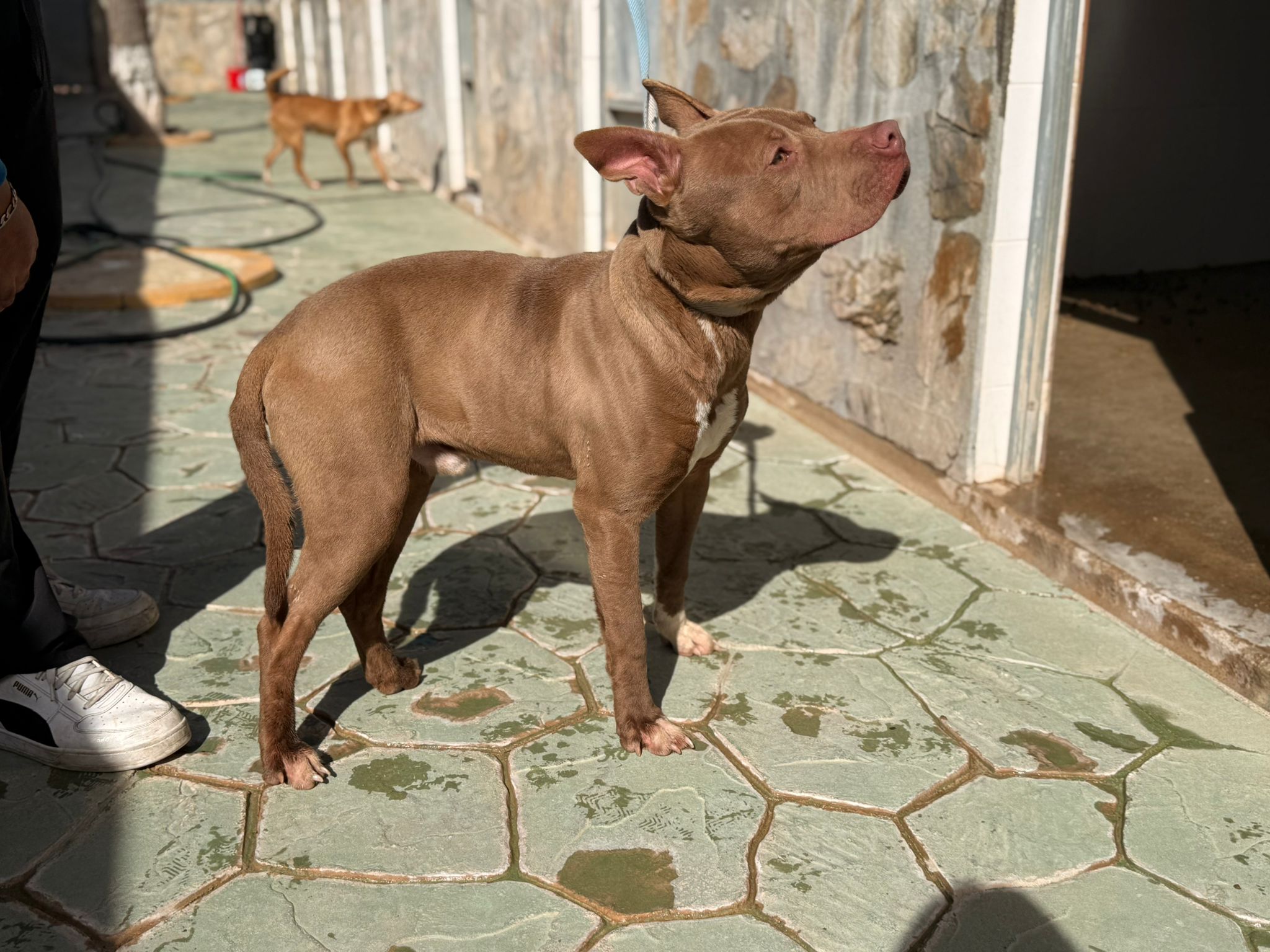 Otto fue abandonado en un polígono en Mengíbar, lo abandonaron junto a otro podenco del cual se ha hecho cargo otra asociación. Tenía la cabeza ladeada y en un principio pensábamos que podía ser algún problema neurológico pero en la visita veterinaria descubrimos que tenía una otitis muy grave. Se le ha puesto tratamiento y en unas semanas hay que evaluar si esa otitis no tratada ha podido afectar al oído interno y por lo tanto al equilibrio de Otto. A pesar de ello, en caso de que tenga un problema de equilibrio Otto hace vida totalmente normal solo que a veces ladea la cabeza, además es totalmente compatible con todo tipo de perros y con niños