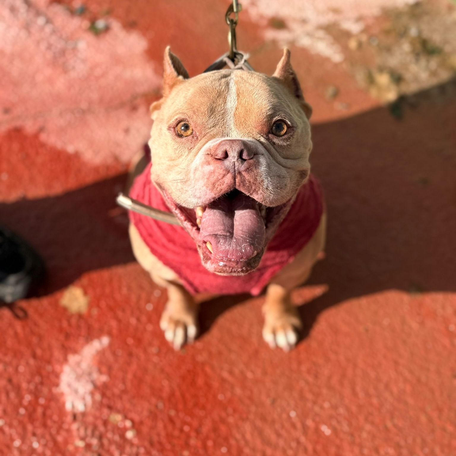 Hace una semana Pepón volvió a nuestra asociación después de dos años adoptado. Ha pasado de vivir en una casa a volver a vivir en una jaula y os podéis imaginar como está... Pepón es un American Bully de seis años al que sacamos de la perrera de Córdoba, fue adoptado rápidamente ya que es un perro increíblemente bueno con otros animales pero la mala suerte ha vuelto a su vida. Es de tamaño mediano, puede convivir con perros y niños pero no con gatos ya que es totalmente incompatible