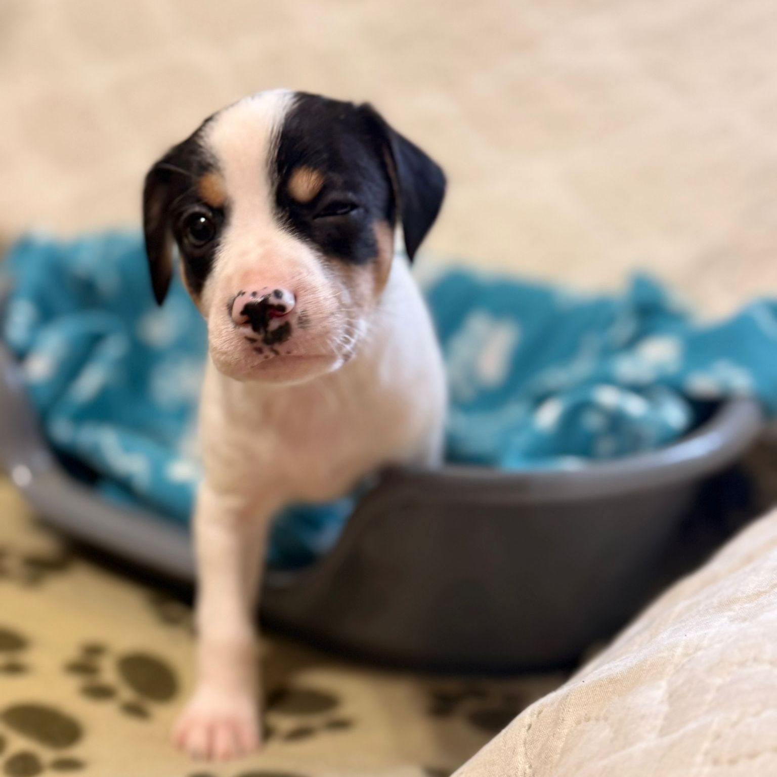 Trébol y sus hermanos nacieron el pasado 31 de diciembre. Su madre es una cruce de podenco que llegó tan solo dos días antes de dar a luz a nuestra asociación, le hicimos una cesárea y nacieron 6 preciosos bebés que ahora están listos para irse adoptados.