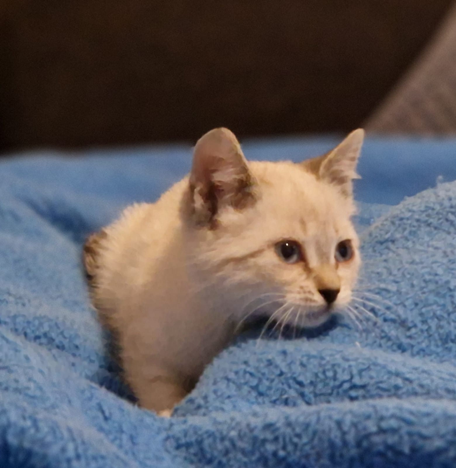 Bebé, siamesa con aproximadamente 6 semanas. Una pulguita que solo quiere mimos y dar besitos. Está en Ronda (Málaga) Si quieres adoptarla contacta con nosotras 625467079