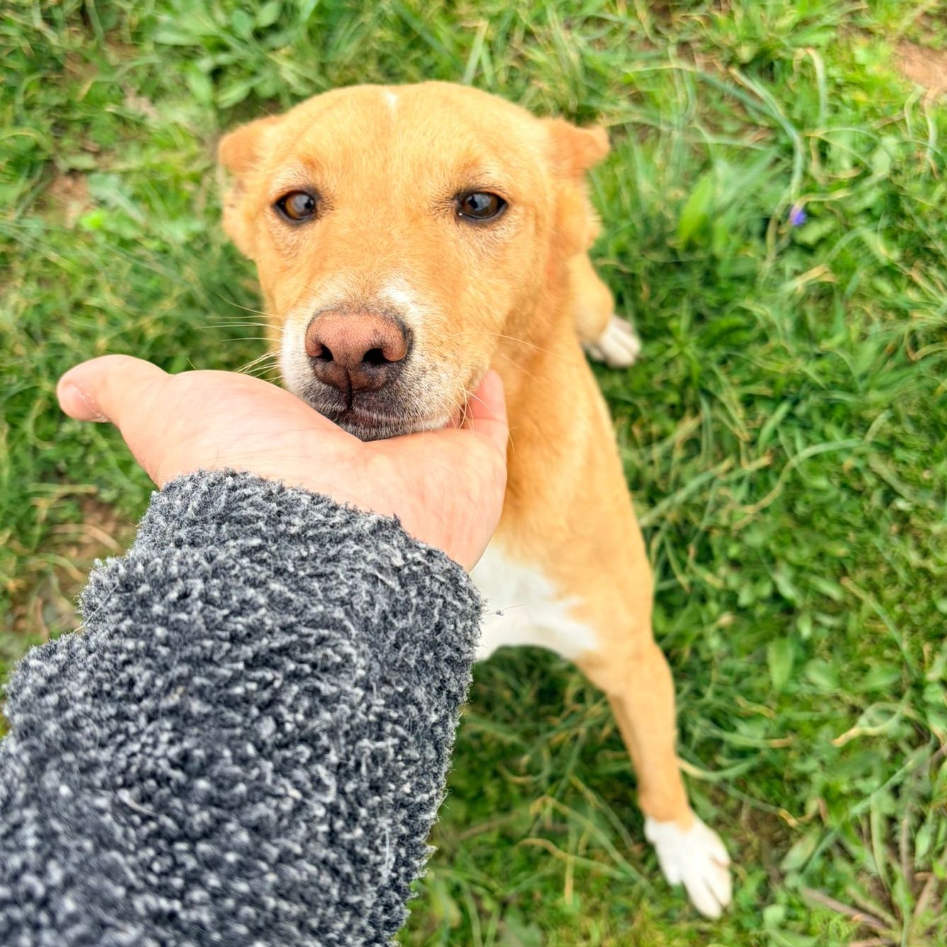 Podenco adulto, macho, desconfiado pero cariñoso, tranquilo, necesita volver a confiar en las personas.