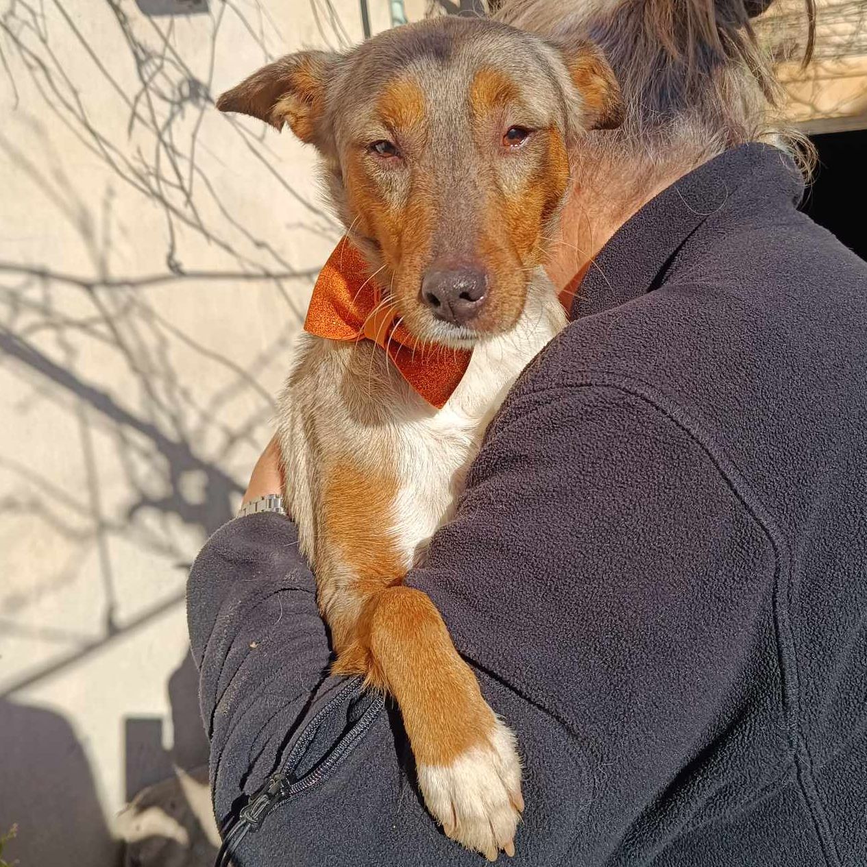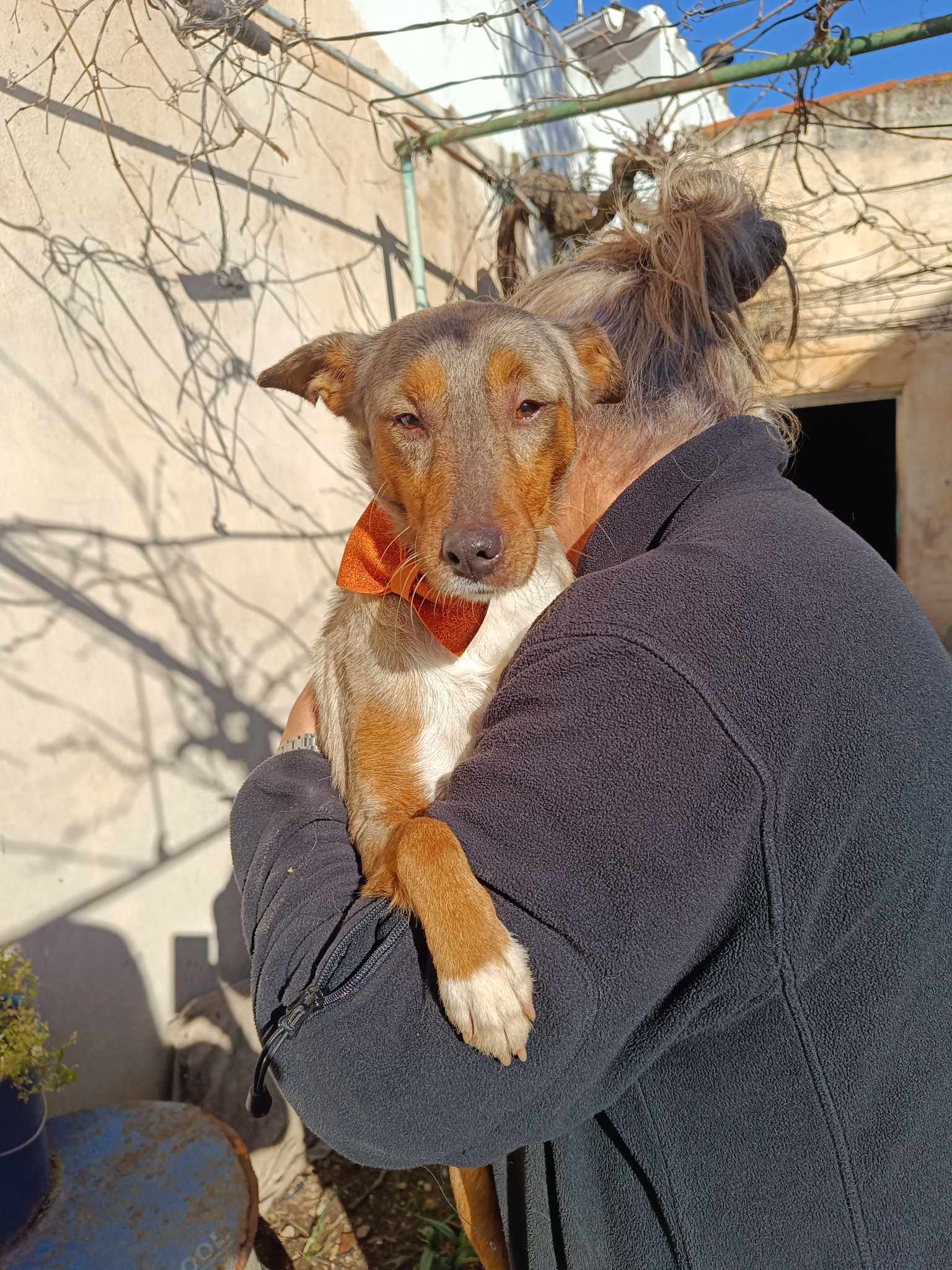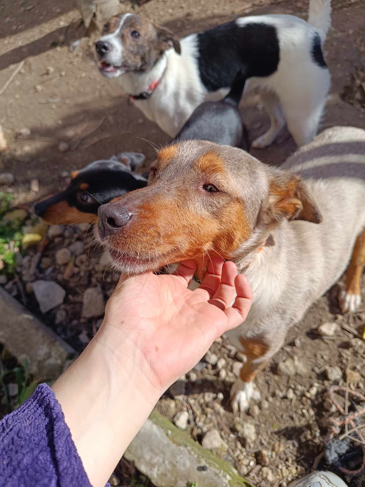 Se llama Rooibos ☕, como el té. Su pelaje gris con tonos rojizos, fuego y sable lo hace único, cálido y muy especial. Pesa 11 kg y es un perro joven. Es sensible y al principio necesita tiempo para confiar, pero cuando lo hace muestra un carácter dulce y muy cariñoso. Con otros perros es sociable y se siente seguro, por lo que sería ideal un hogar donde ya haya otro perro o perrita que le ayude a adaptarse. Rooibos es de esos perros que necesitan “reposar” para mostrar todo lo que son: cuando lo hacen, llenan de ternura cualquier hogar.