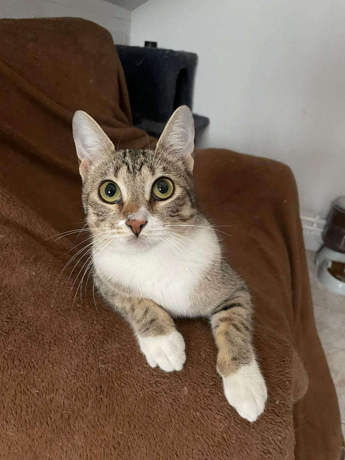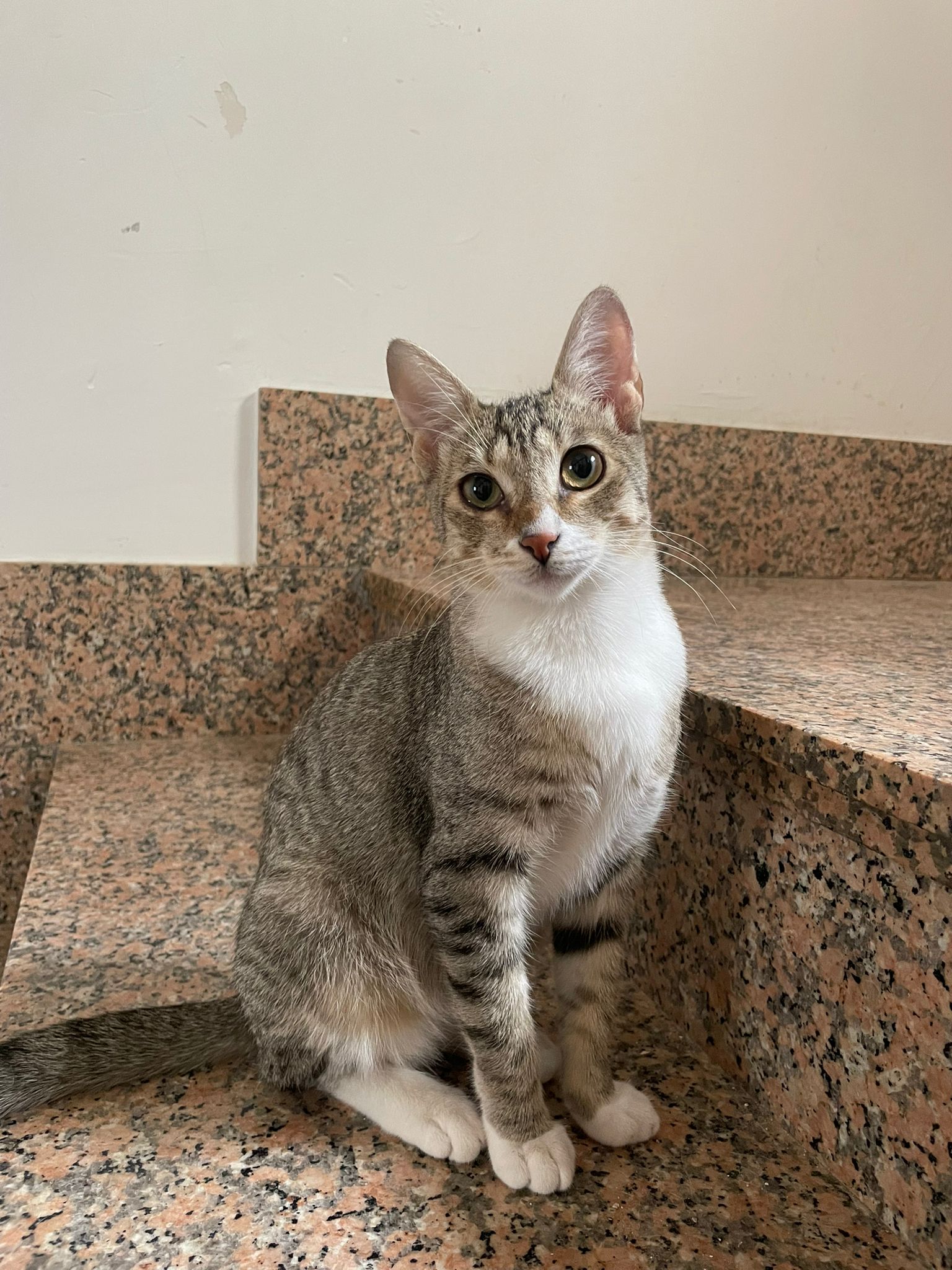 Ada fue encontrada junto a su madre y sus 6 hermanos en una playa con días de vida. Llegó al refugio y fue criada a biberon para ayudar a la mamá y por ello son una camada muy muy cariñosa, sociable, juguetona y simpática. Se entrega desparasitada, testada (FIV y FeLV negativo), vacunada, con chip y pasaporte. Puede viajar sin problema.