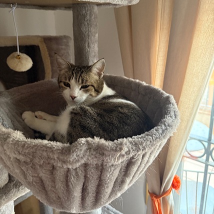 Aurora es una gatita de añito y medio que rescatamos de la calle de una avenida muy peligrosa cuando estaba a punto de parir sus 6 cachorritos. Parió en una casa de acogida y tras la adopción de sus hijos ahora le toca a ella la oportunidad de encontrar una familia que la quiera y le de todo el cariño que ella está dispuesta a dar. Muchas gracias
