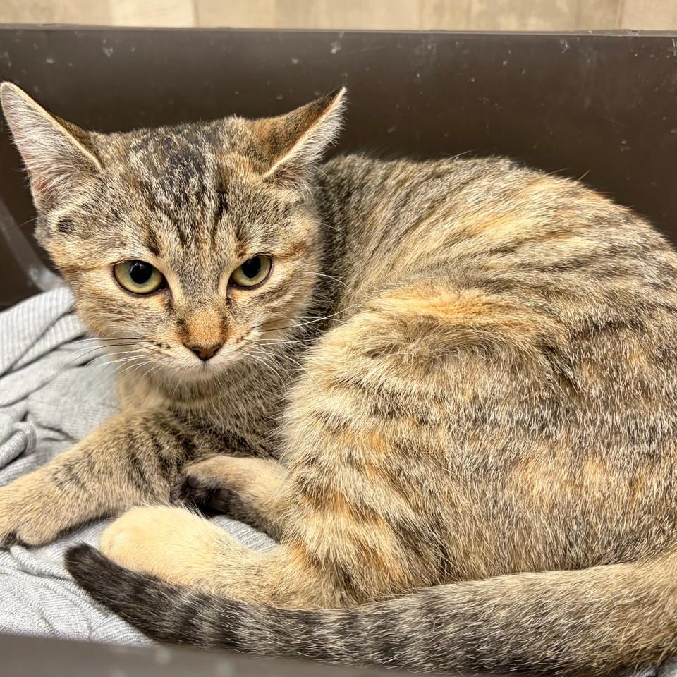 Bonnie es una preciosa gatita de 3 meses. Es cariñosa y sociable con otros gatos y perros.