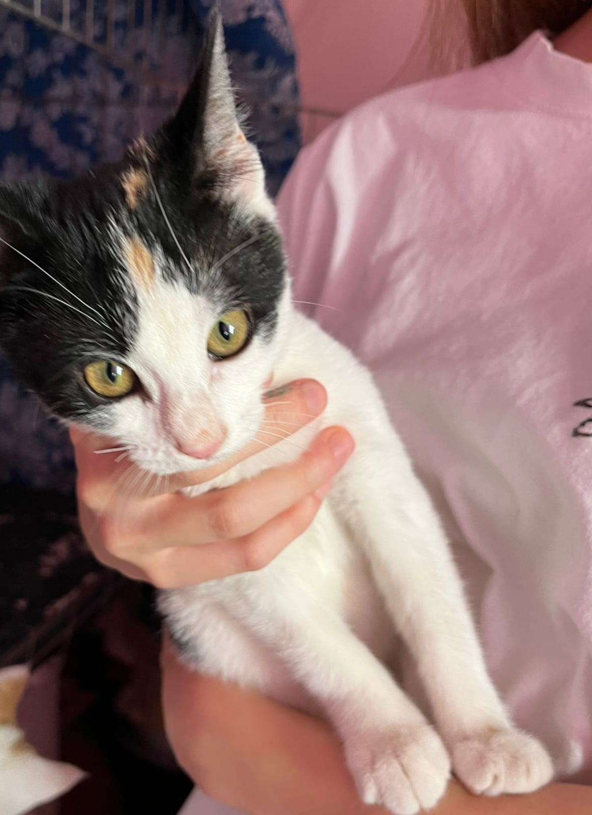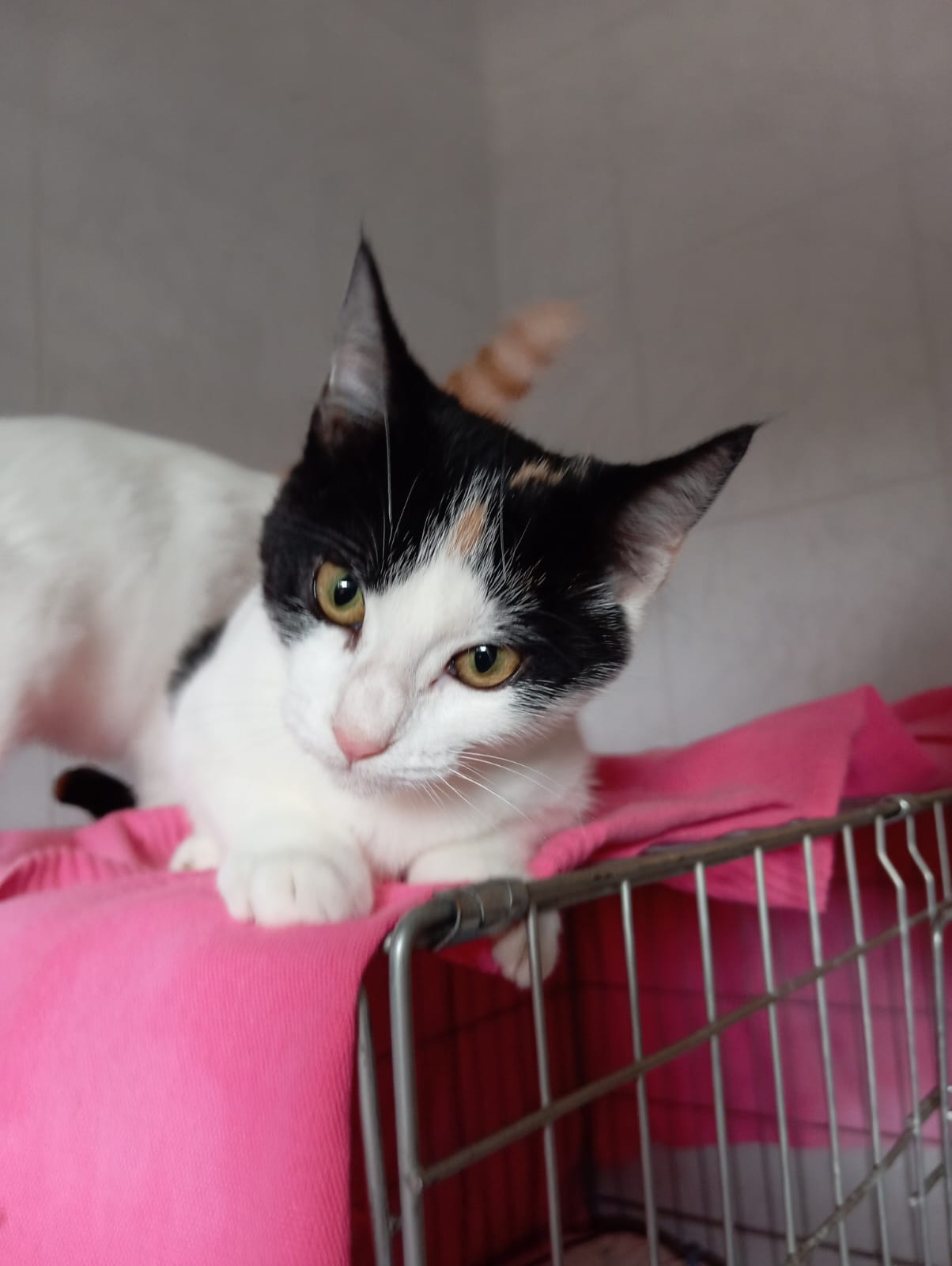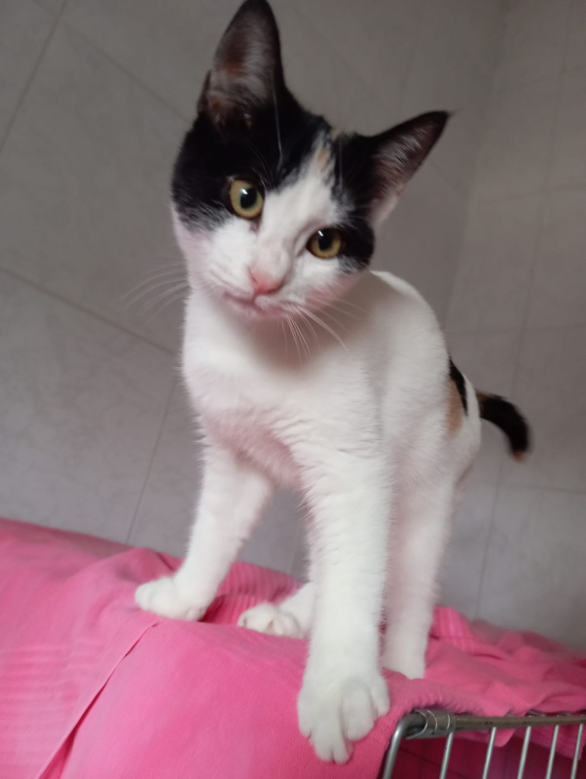 Preciosa tricolor súper simpática, mimosa y juguetona, acostumbrada a estar con gatos y personas, muy sociable y cariñosa