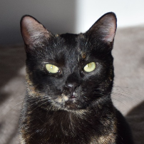 Preciosa gata carey. Tranquila, cariñosa. Ideal para convivir con una familia, incluso aunque haya niños. Compañera ideal, también, para una persona mayor que quiera tener un animal de compañía que pase tiempo junto a ella.