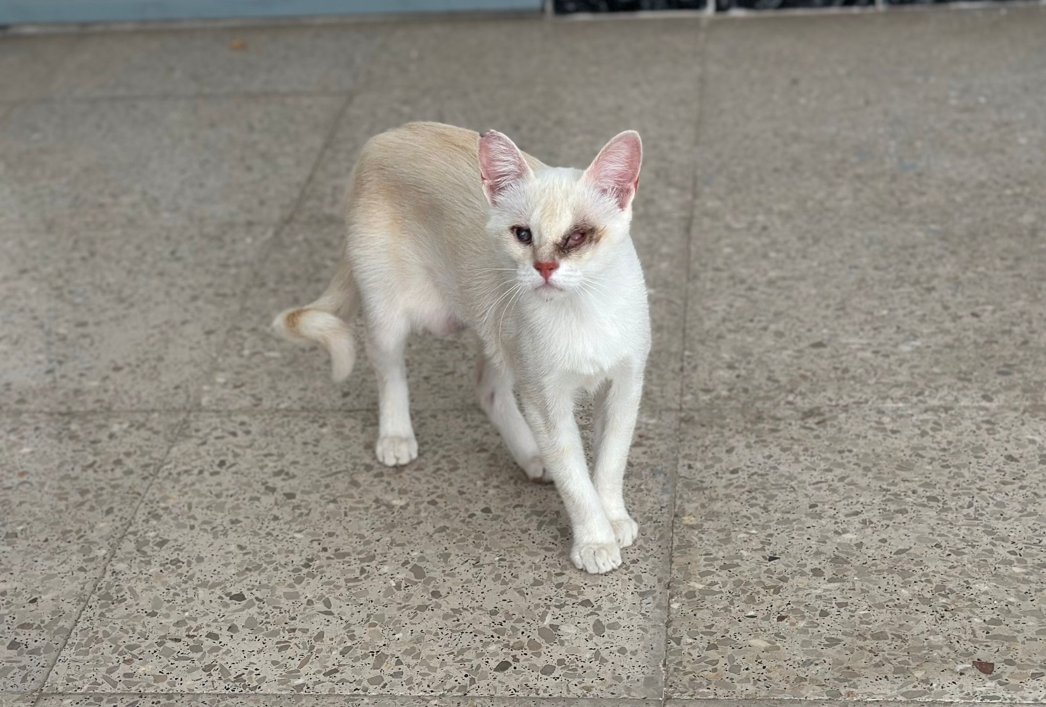 Preciosa gata ciega, super buena, tranquila y cariñosa. Busca una casita, junto con su hermana Taylor, donde las quieran y les compensen todo el sufrimiento vivido.