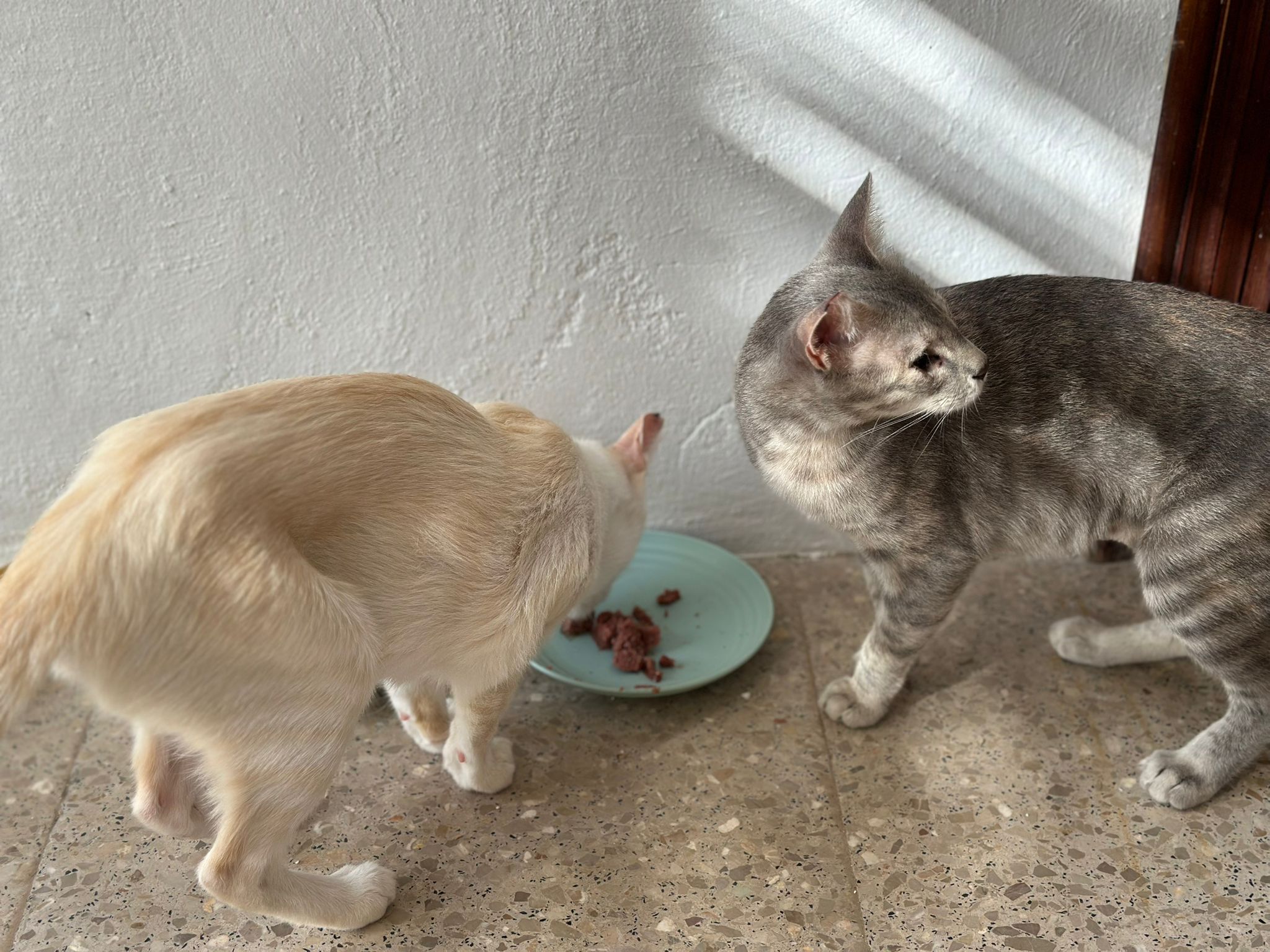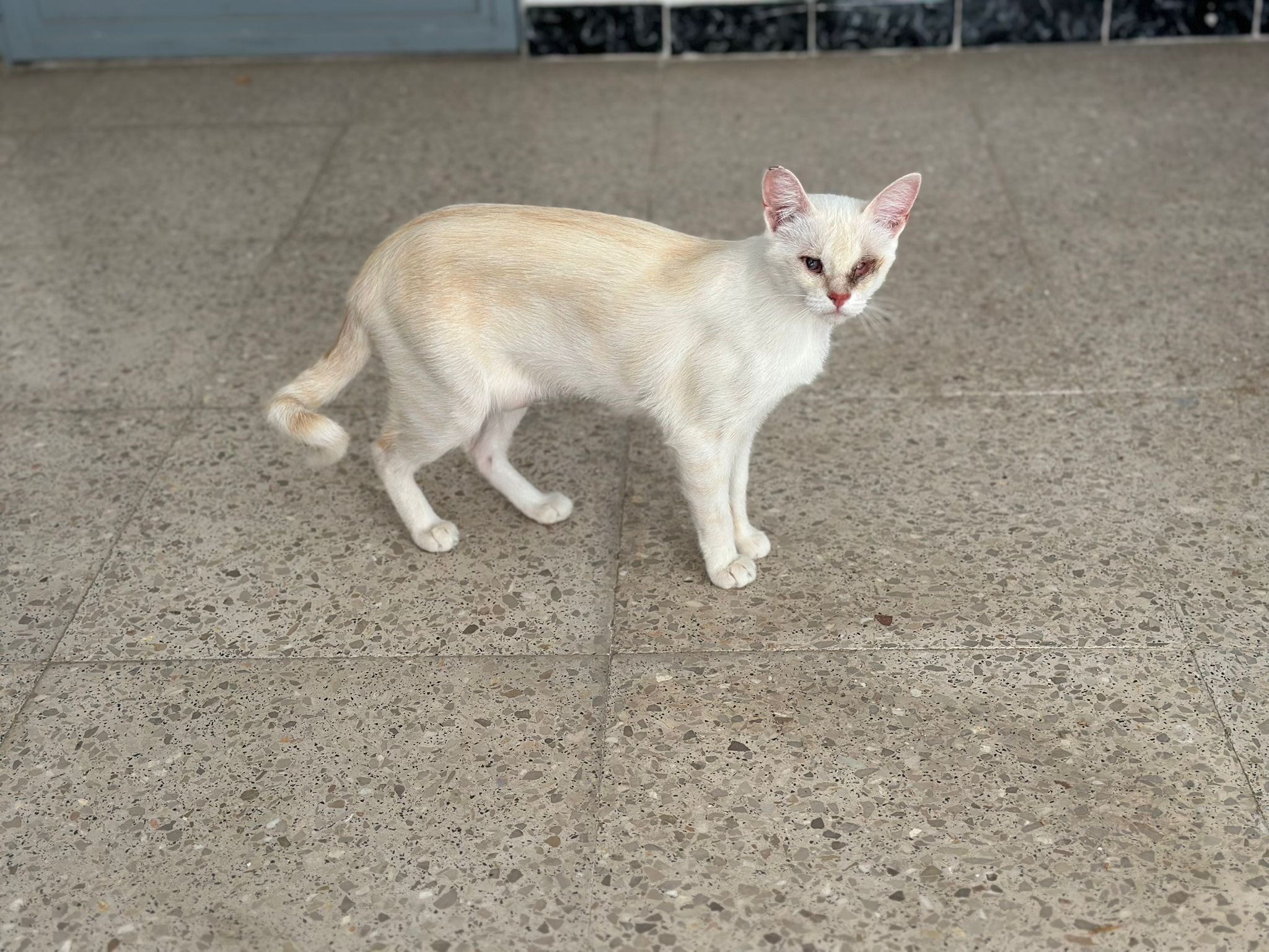 Gatita ciega abandona a su suerte junto con su hermana, también ciega, en un transportín en la calle. Tras varios horas, una chicas las recogieron, las llevaron a la policía y avisaron a la protectora, que las recogió en un estado lamentable, tras horas sin comer, sin beber y sin salir del transportín. Su hermana ejerce de lazarillo, cuando encuentra la comida, maúlla y ella va tras el sonido del maullido de su hermana y así van ellas solitas. Necesitamos urgentemente adopción conjunta para estas hermanas tan tiernas.