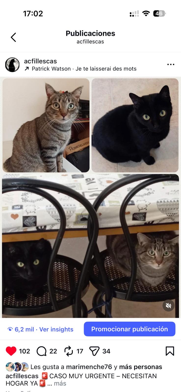 🚨 CASO MUY URGENTE – NECESITAN HOGAR YA 🚨 No sabemos ni por dónde empezar… 💔 Son dos gatitas de apenas 2-3 años. No tienen nombre. Sí, has leído bien: nunca tuvieron nombre. Él las llamaba “negra” y “gata”… como si fueran invisibles, como si no sintieran. Fueron un regalo. Un capricho. Y ahora… un estorbo. Estas son las graves consecuencias de regalar animales. Su “dueño” cambió de vida, … y a ellas las dejó atrás. Encerradas. Solas. Olvidadas. 📍 Llevan más de un año viviendo encerradas en un piso, completamente solas. 📍 Un familiar pasa alguna vez a la semana a echarles comida. Los vecinos dieron la voz de alarma porque no paraban de maullar… pidiendo ayuda, pidiendo compañía, pidiendo no sentirse solas en ese silencio interminable. Cuando contactamos con él, su respuesta fue clara: 👉 “O encuentran hogar o acabarán en la calle o en una perrera, por motivos personales ya no las puedo tener.” 💔 Son cariñosas, sociables, criadas desde bebés en contacto humano. 💔 Lo único que han hecho mal… es acabar con quien no debía. No podemos imaginar el miedo, la tristeza y el abandono que sienten cada día. Y aun así… siguen esperando. 🙏 NECESITAMOS AYUDA URGENTE Buscamos: 🐾 Adopción responsable 🐾 Casa de acogida Se entregan esterilizadas, chip, test y vacunas al día. Por favor, ayúdanos a sacarlas de ese infierno. No pueden esperar más. 📩 Contacto: acfillescas@gmail.com Ellas no tienen voz… pero nos tienen a nosotros. Y no vamos a fallarlas. 🐾