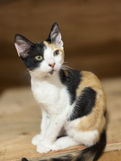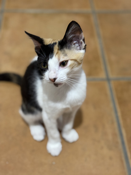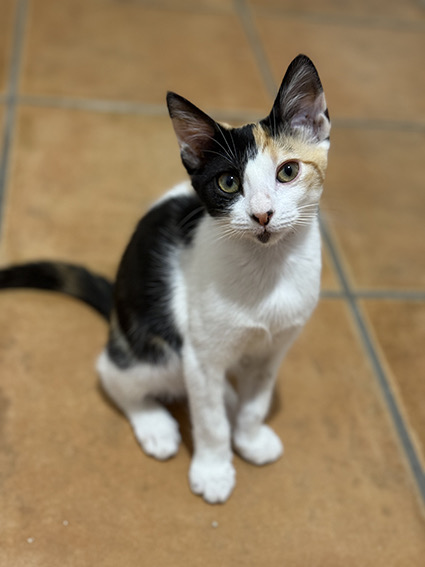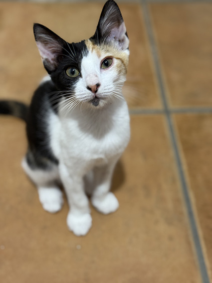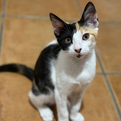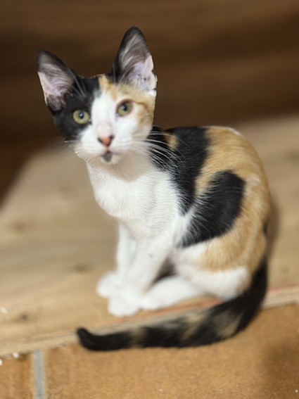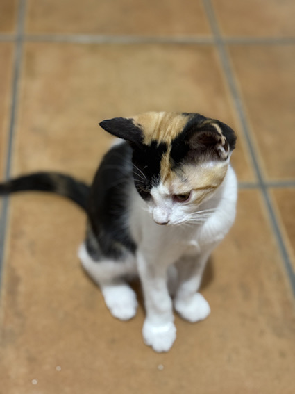 Mía es esta preciosa gatita tricolor de 5 meses que fue rescatada de la colonia junto con sus hermanos. Tan solo queda ella por salir adoptada Buscas una familia que le sepa dar todo el amor y cariño que ella es capaz de dar ya que es súper cariñosa. Muchas gracias.