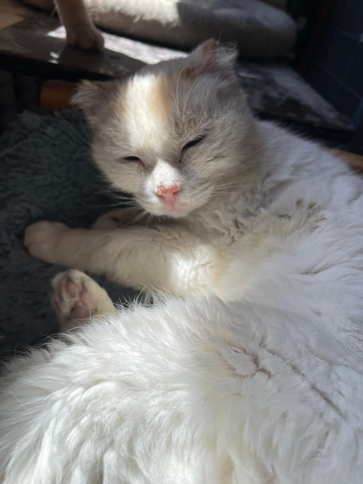 Nievi es una gatita de año y medio, fue recogida de la calle debido, a que por su color de pelaje, desarrolló un carcinoma de células escamosas en sus orejitas, fue intervenida y ahora está más que curada. Además, presenta inmunodeficiencia felina. En una frase: es un virus que destruye las defensas del gato, dejando su cuerpo sin “escudo” para combatir enfermedades que un gato sano superaría fácilmente. Por eso, lo que termina afectando al gato no es el virus en sí, sino las infecciones secundarias (en la boca, piel o pulmones) que aprovechan esa debilidad. Es por ello que es un gran riesgo para los gatos que viven en la calle que están mucho más expuestos a un gatito que vive en casa mucho más protegido. Además este virus no se transmite muy fácilmente, es a través de la sangre, es decir por mordiscos, arañazos, peleas… Por lo tanto con una buena adaptación podría convivir con un gato sano sin problema, u obviamente con otro con inmunodeficiencia 🐈⬛🐱 también existiendo la posibilidad de ser hija única🐈 Es una gatita taaaaan buena, noble y dulce... <3 Además, le encanta estar con otros gatitos, es muy sociable y simpática. Se encuentra esterilizada, vacunada, desparasitada, testada (Leucemia negativo) y se entrega con microchip y pasaporte ✅ Puede viajar 🚘