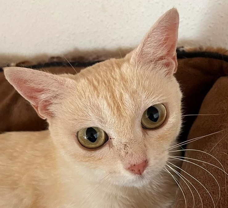 Una preciosa gatita anaranja, mix de persa y cómun europeo. Es cariñosa, sociable, simpática y juguetona, de tamaño pequeño.
