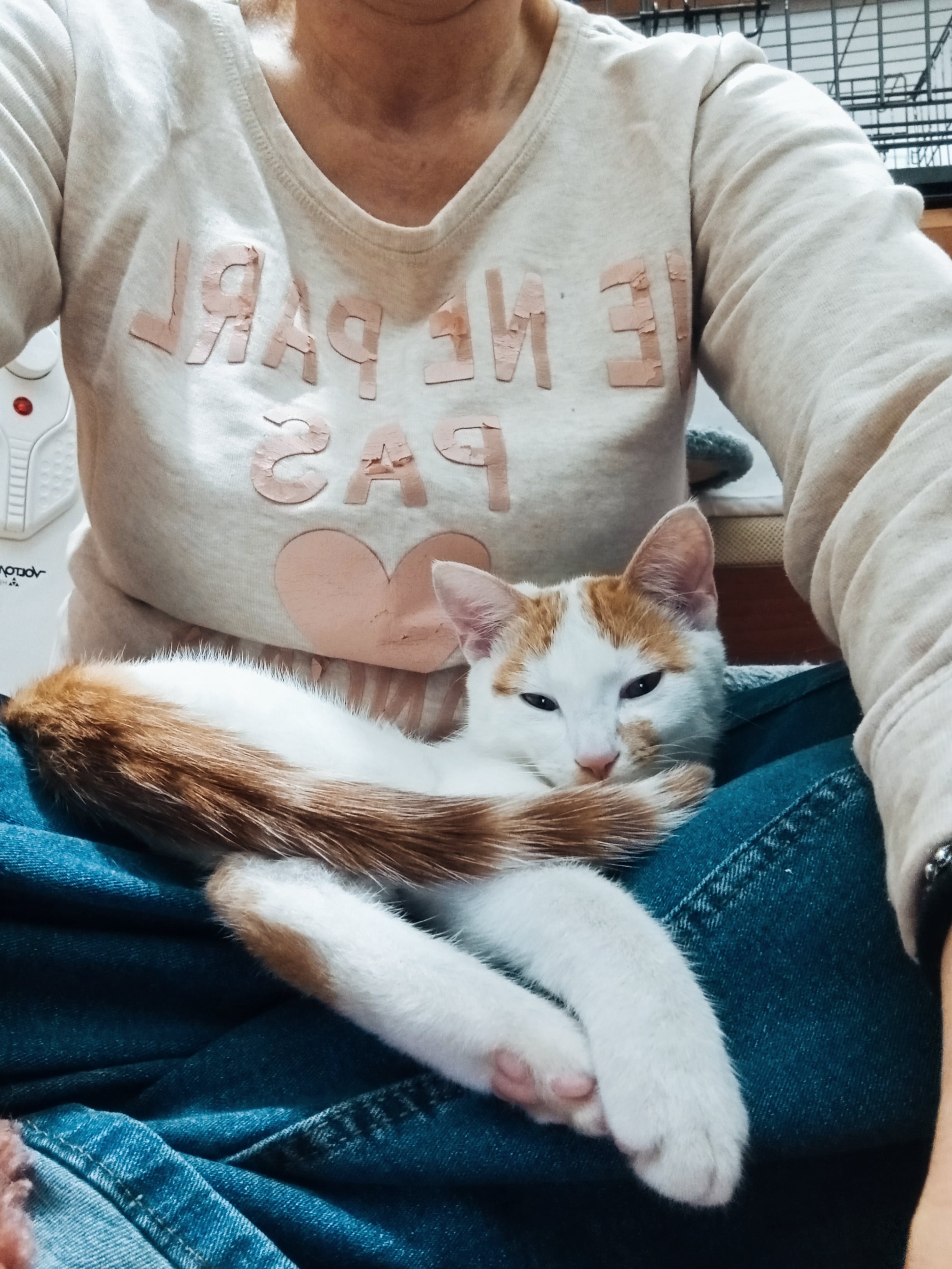 Es un peluche cariñoso,le encanta los mimos, sentarse en el regazo, pero también es muy juguetón y activo. Necesita una familia que tenga otro gato o que pueda adoptar dos .
