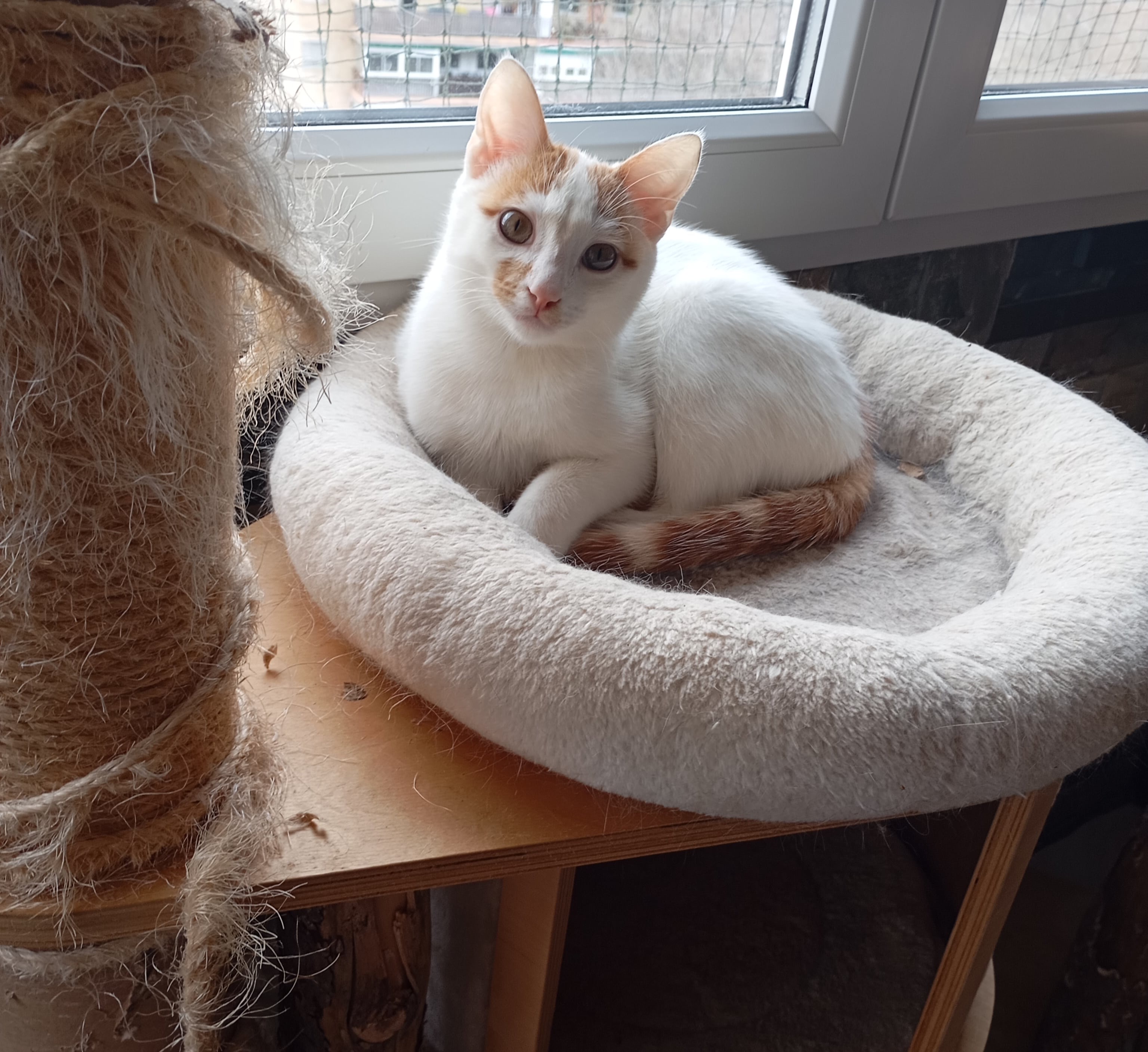Aiko es el gatito más cariñoso y simpático que tenemos. Le encanta dormir acurrucado ronroneando al lado nuestro. Es juguetón,confiado y preparado para encontrar una familia. Se lleva muy bien con otros gatos