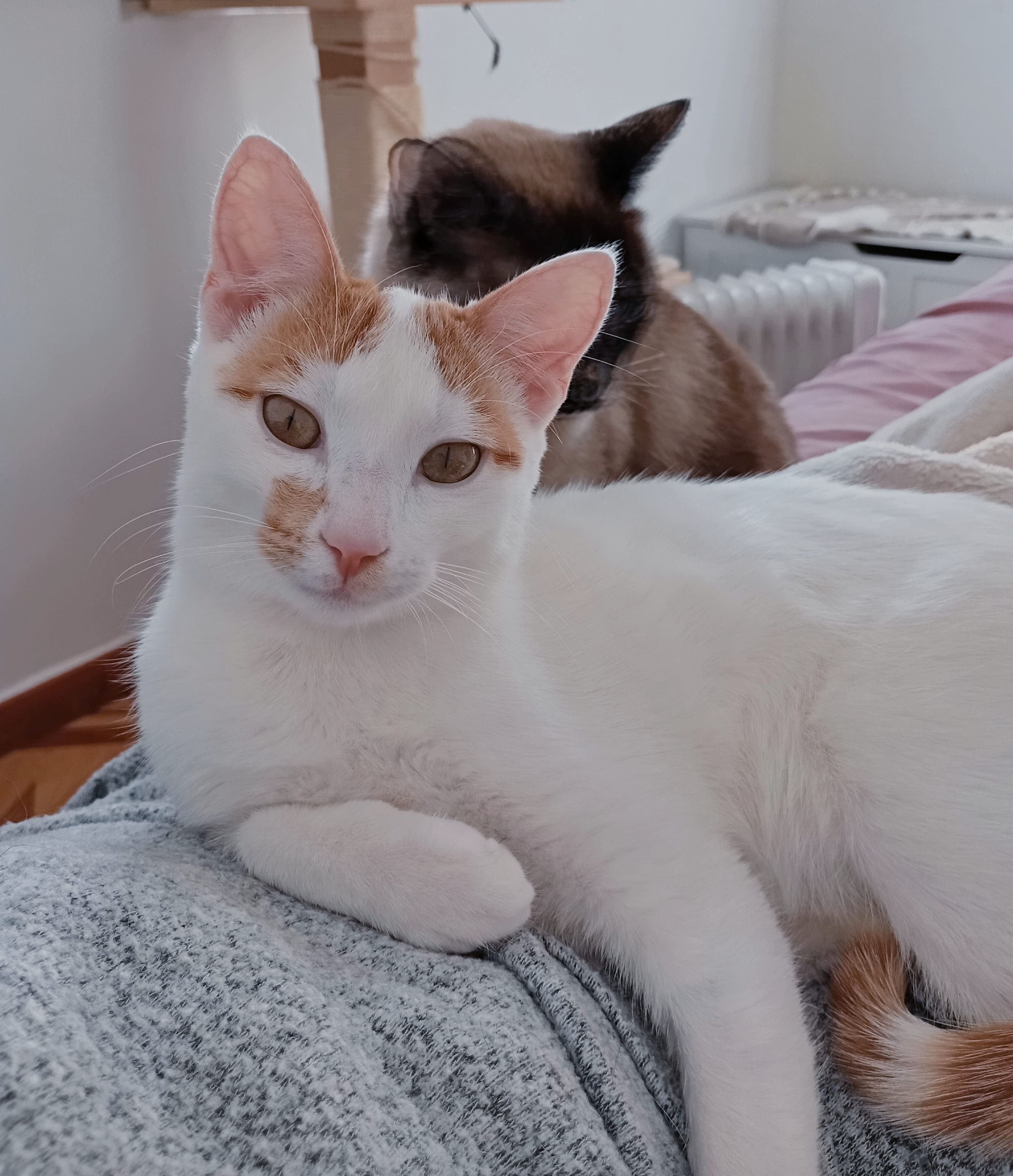 Aiko es el gatito más cariñoso y simpático que tenemos. Le encanta dormir acurrucado ronroneando al lado nuestro. Es juguetón, confiado y preparado para encontrar una familia